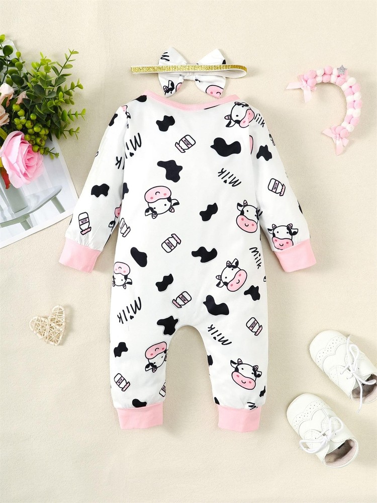 2pcs Newborn Baby Girl Fashion Jumpsuit Cute Cow Long Sleeve Bodysuit+headband Features: 1.Material:Polyester blend. 2.Color:as the pictures. 3.Sleeve Length: Long Sleeve. 4.Season:Autumn 5.Style: Cute and simple style 6.Great for Daily, Party, Photograph.  What You Get: 1 x Romper Shipping Fast Shipping Worldwide Returns We accept returns 30 days from the package received. Payments All payments are accepted via PayPal.