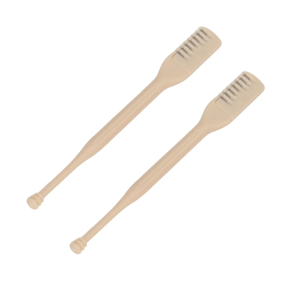 Feature: 1. Multifunction: Perfect for nose hair cutting and trimming, provide you with comfortable nose hair trimming experience. 2. Dual Heads: One head for your nose hair trimming, another for ear cleaning, provides a hygienic grooming experience. 3. Travel Size: With compact design, the hair trimmer can be taken virtually anywhere, whether it is for home use or for business trips, the trimmer will please you. 4. Comfortable To Grip: The ABS grip gives you the best hold, even when wet, for better control when operating your trimmer. 5. Easy To Use: The comb tooth design and incisive edge allows you to expertly trim and shape your nose hair to the desired length and create a clean, confident look. Specification: Item Type: Nose Hair Trimmer Material: ABS Package List: 2 x Nose Hair Trimmer