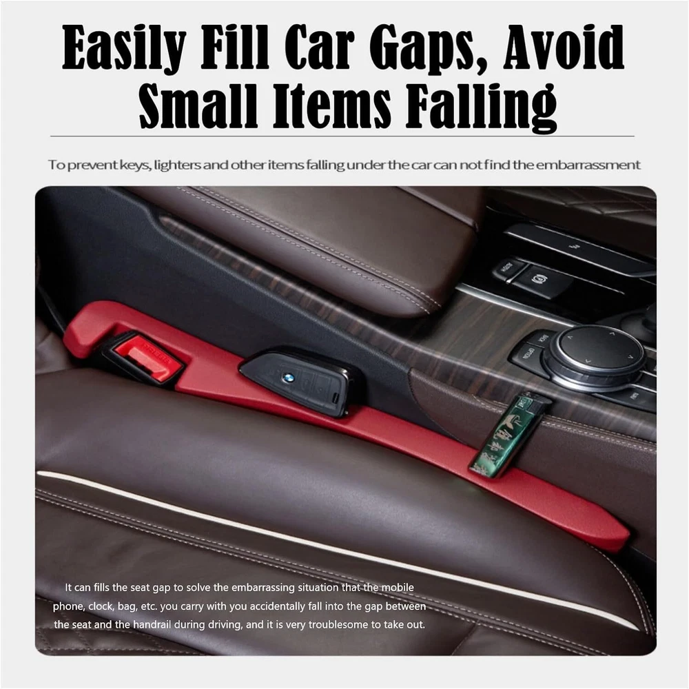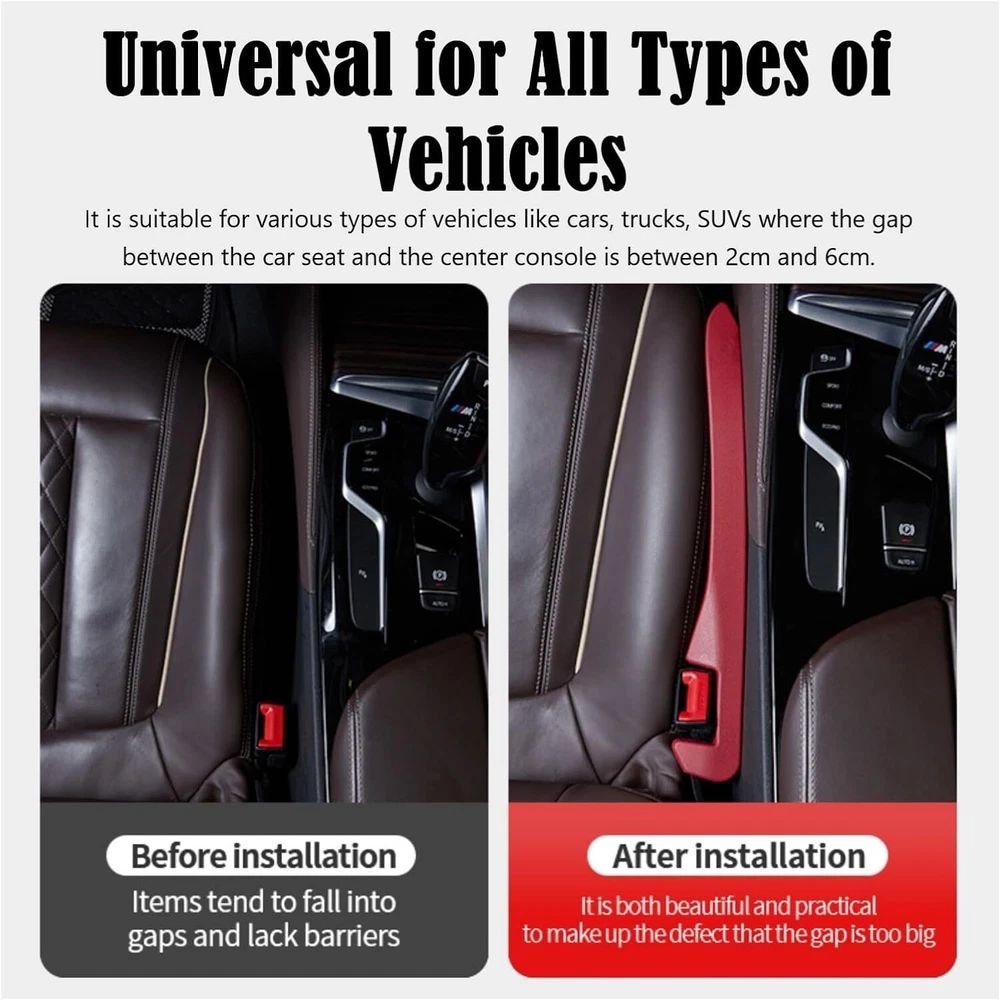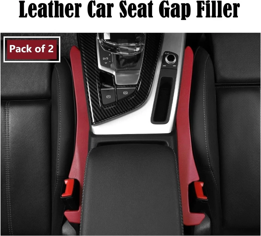 Car Seat Gap Filler 2 Pack, Universal Organizer for Car SUV Truck to Fill The Space Between Seat and Console, Car Seat Blocker and Catcher Prevent Things from Dropping, Easy to Install Specification: Material :PU Special Feature Portable Color :Red Package included:2pcs Feature: 1.【Fill the Car Seat Gap】This car seat spacer seat gap filler pad is designed to block the gap between your car, suv or truck seat and center console, preventing crumbs and small items like phone, glasses, key, card, and coin from falling into the void. 2.【Textured PU Leather Material】Leather upholstery, with a clear and textured surface, adds a different flair to a monotonous car interior. You don't have to worry about it getting dirty, just need a wet towel to clean it up. 3.【Reserved Space for Belt Buckle】Reserve space for the seat belt buckle, allowing the seat to move dynamically back and forth, without affecting the normal use of the seat belt buckle. At the same time, it can reduce the abnormal noise caused by the shaking friction of the left and right seats. 4.【Practical Sword-shaped Design】Slight curve can help the filler match the edge of the seat. It fills the gaps well and stop things into the gaps for goods. No longer lose your phone or anything else down in that abyss between the seat and center console. 5.【Universal for All Types of Vehicles】This car between seat blocker or catcher is suitable for various types of vehicles like cars, trucks, SUVs where the gap between the car seat and the center console is between 2cm and 6cm.