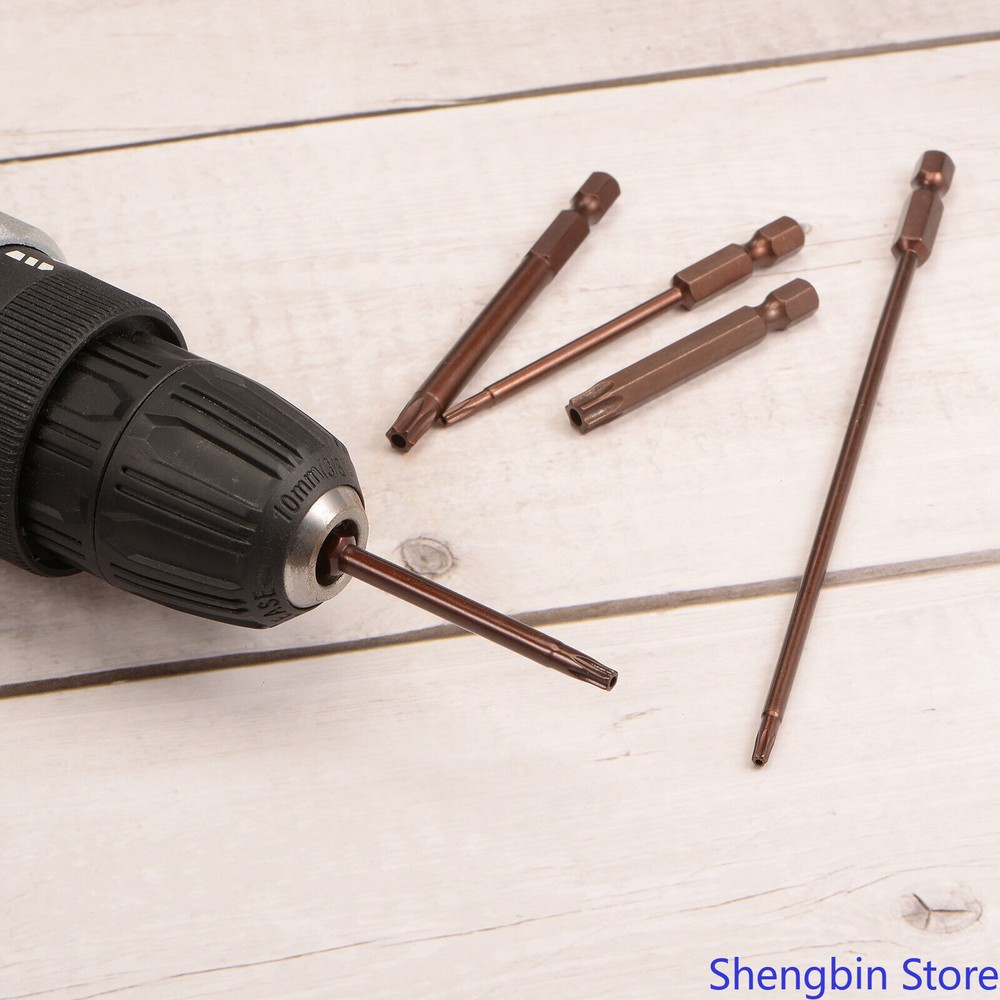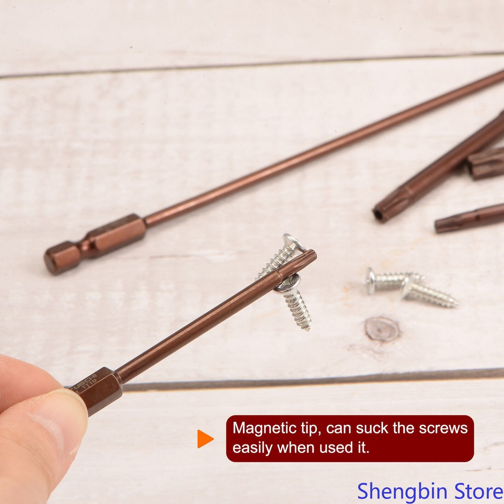 2pcs T20 Magnetic Security Torx Screwdriver Bit 1/4" Hex Shank 2" Length, Red 1. An excellent replacement for lost, bent or broken Torx tamper-resistant screwdriver bits. 2. Made of S2 alloy steel (heat-treated to HRC60°), which is a high-hardness material commonly used in hardware. Copper paint finish prevents rust and corrosion. 3. The magnetic tip can easily hold the screw when in use. 4. Exquisite workmanship, each edge can accurately lock the screws without damaging the screws and the screwdriver bit. The hole in the center of each bit is tamper-proof. 5. Widely used in DIY hand-making, automotive, household appliances, precision instruments and most general repairs. 6. Can be used for electric screwdrivers, manual screwdrivers, electric drills, air drills, etc. 7. Notice: Do not turn the screws with mismatched size to avoid damage to both the screw and the drill.