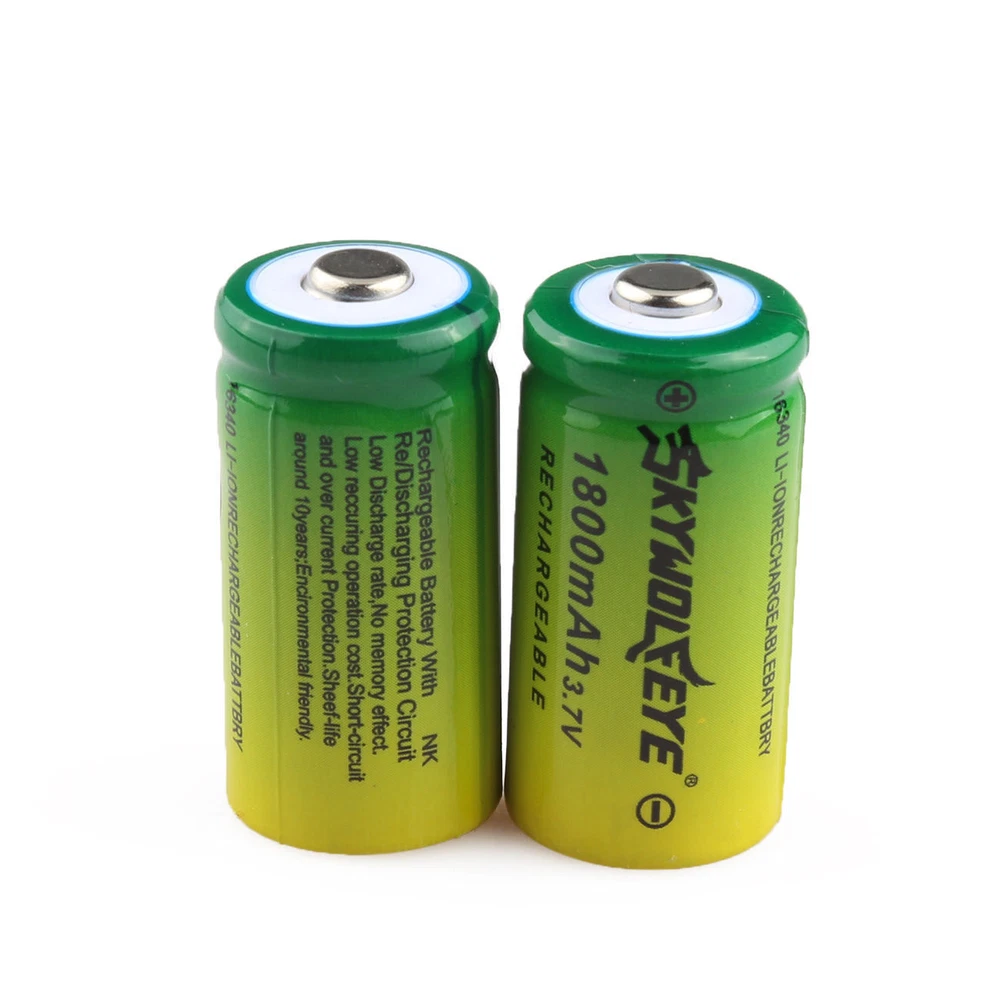 Features: Brand New and high quality Battery Type: 16340 Rechargeable Battery Model : 16340( Replace for CR123A, , K123A, VL123A, DL123A, SF123A 123A ) Voltage: 3.7V Capacity: 1800mAh Material: Li-ion Battery For appliances like Camera,Flashlight, toys etc. Specifications: Size:about 34*16*16mm Color:yellow-green Packing Content: 2 x 16340 Rechargeable Battery Please note that these are not the 3.0 volt batteries. Make sure your flashlight will handle these. WARNING: 1.New battery must first charge and then use , or the battery is most likely over-discharge , lead scrap. 2.The voltage of full charge and cut-off discharge is 4.2V and 2.75V. 3.Don't heat,incinerate or reverse polarity. 4.Please do not make the battery over discharge, over-discharge of lithium is not a failure but scrapped. Shipping 1. We ship your orders within 1-2 business days after the payment cleared. 2. with the tracking number, most reach USA about 2-8 working days. 3. Delivery time depends on destination and other factors, it may takes up to 20 days. If you don't receive the item after 25 days,please contact us, we'll investigate and solve the delivery problem.