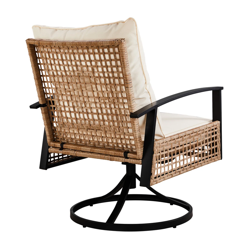 2pcs Swivel Chairs with Light Yellow Rattan Beige Cushion
