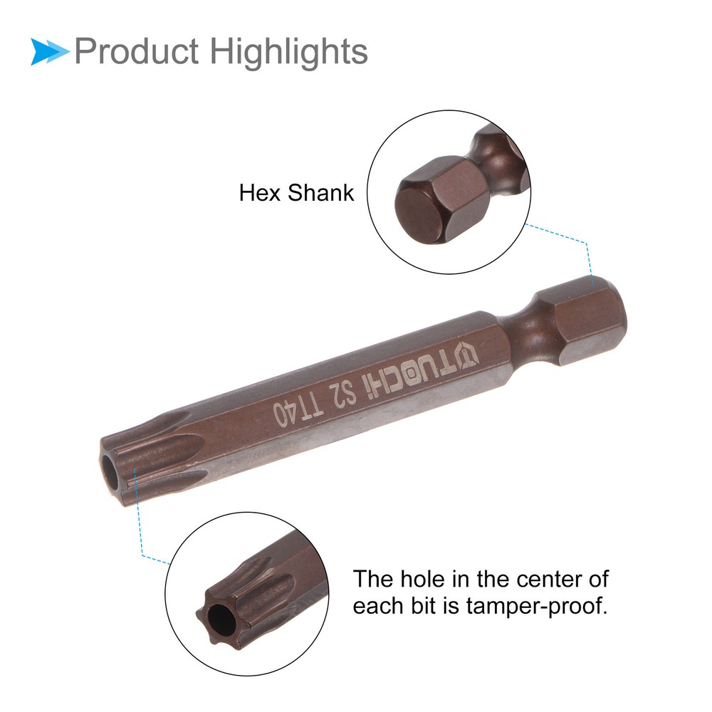 Document Attributes:*Size: T40*Shank Diameter: 6.35mm / 1/4"*Total Length: 50mm / 2"* Shank Type: Hex ShankWhat Is Included:* 2 Pieces x Screwdriver BitApplications & Features:--- Suitable for industrial use and comes with a manual electric screwdriver, electric screwdriver, electric drill, and pneumatic drill.--- It is a commonly used tool in furniture installation, car repair, and other general tools. It is a commonly used tool in furniture installation, car repair, electronics factory, office installation, kitchen installation, and other projects.These screwdriver bits feature a magnetic design that allows them to easily attract and hold screws. This feature ensures convenient installation by securely holding the screw in place before and after fastening, preventing accidental drops or misalignment.The screwdriver bit is made of S2 steel, which is wear-resistant and impact-resistant, with a hardness of up to 58HRC.Useful Tips:Do not turn the screws with mismatched sizes to avoid damage to both the screw and the drill. 2pcs T40 Magnetic Torx Screwdriver Bit 2" Long Magnet 6 Point Tamper Proof Attributes: *Size: T40 *Shank Diameter: 6.35mm / 1/4" *Total Length: 50mm / 2" * Shank Type: Hex Shank What Is Included: * 2 Pieces x Screwdriver Bit Applications & Features: --- Suitable for industrial use and comes with a manual electric screwdriver, electric screwdriver, electric drill, and pneumatic drill. --- It is a commonly used tool in furniture installation, car repair, and other general tools. It is a commonly used tool in furniture installation, car repair, electronics factory, office installation, kitchen installation, and other projects.These screwdriver bits feature a magnetic design that allows them to easily attract and hold screws. This feature ensures convenient installation by securely holding the screw in place before and after fastening, preventing accidental drops or misalignment. The screwdriver bit is made of S2 steel, which is wear-resistant and impact-resistant, with a hardness of up to 58HRC. Useful Tips: Do not turn the screws with mismatched sizes to avoid damage to both the screw and the drill. Hot Item Payment 1.We accept eBay payment . 2.Payment must be received within 7 business days of auction closing. Shipping 1.We ship to your eBay or Paypal address. Please make sure your eBay and Paypal address is correct before you pay. 2.Items will be shipped within 1-3 business day when we received payment. 3.Delivery time depends on destination and other factors. Description Policy 2pcs T40 Magnetic Torx Screwdriver Bit 2" Long Magnet 6 Point Tamper Proof Attributes: *Size: T40 *Shank Diameter: 6.35mm / 1/4" *Total Length: 50mm / 2" * Shank Type: Hex Shank What Is Included: * 2 Pieces x Screwdriver Bit Applications & Features: --- Suitable for industrial use and comes with a manual electric screwdriver, electric screwdriver, electric drill, and pneumatic drill. --- It is a commonly used tool in furniture installation, car repair, and other general tools. It is a commonly used tool in furniture installation, car repair, electronics factory, office installation, kitchen installation, and other projects.These screwdriver bits feature a magnetic design that allows them to easily attract and hold screws. This feature ensures convenient installation by securely holding the screw in place before and after fastening, preventing accidental drops or misalignment. The screwdriver bit is made of S2 steel, which is wear-resistant and impact-resistant, with a hardness of up to 58HRC. Useful Tips: Do not turn the screws with mismatched sizes to avoid damage to both the screw and the drill. Hot Item Payment 1.We accept eBay payment . 2.Payment must be received within 7 business days of auction closing. Shipping 1.We ship to your eBay or Paypal address. Please make sure your eBay and Paypal address is correct before you pay. 2.Items will be shipped within 1-3 business day when we received payment. 3.Delivery time depends on destination and other factors.