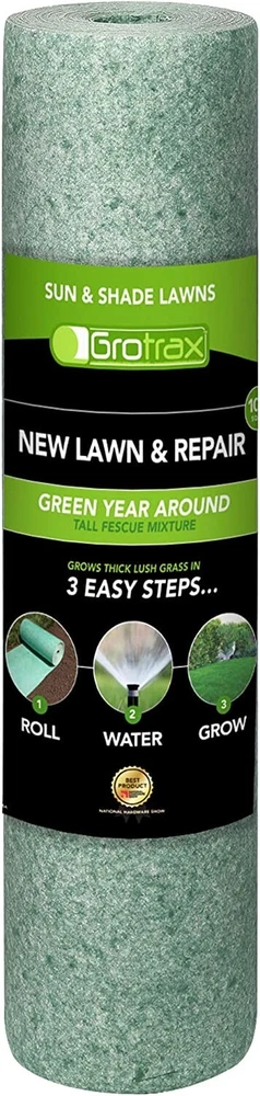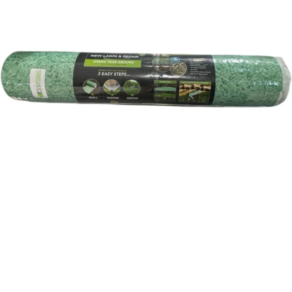 Grotrax Biodegradable Grass Seed Mat, Year Round Green - 100 Sq Ft Big Roll, 2pk.. (2 rolls @ 100sqft each = 200sqft total) These rolls were considered "bad cuts" by manufacturer - unable to sell at retailer level. Product itself is perfect, seed + fertilizer all the way through - just not the "best looking". If you can get over the dings, cones, and appearance this is for you. If you're looking for a great deal on patching and repairing your lawn, or redoing it - this is for you! Happy to answer any questions you have, I got a lot so will ship same day majority of the time - thanks!