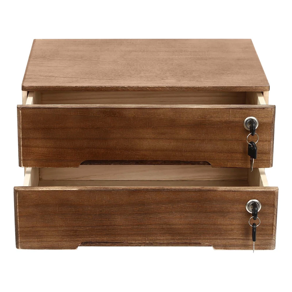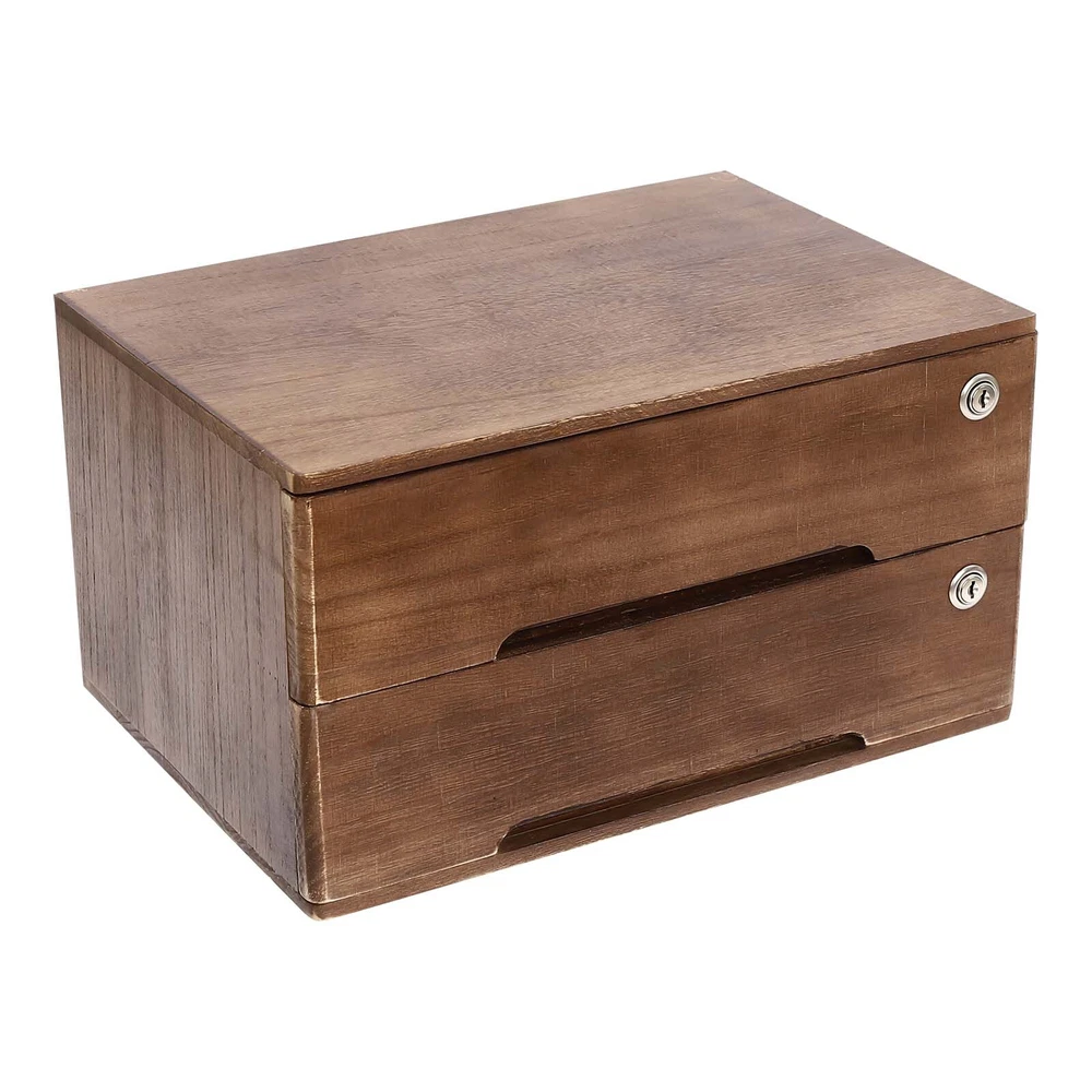 2-tiers Lockable Wooden Desktop Storage Box With Curved Handle+4 Keys For Office Description Cleanness and tidiness are a good attitude towards life and will put you and your family in a good mood, our desktop storage cabinet is made of high-quality material, has sufficient storage space, and has a beautiful and practical design, allowing you to neatly and efficiently organize your belongings and making you feel organized and relaxed. Say goodbye to a cluttered desk and enjoy a neater, more efficient life! Key Features Sturdy and Durable: It is made of high-quality wood with a painting treatment, which is eco-friendly, odorless, anti-corrosion, and rust-resistant , ensuring its beauty and long-time use. Excellent Organizer: This set of 2 drawers can sort and store data cables, kinds of files, and other daily essentials to create a cleaner, tidier office and home environment. Meanwhile, the top platform allows you to place some keys, plants, and chargers to make full use of your space. Minimalist Style: The walnut color scheme combines a rectangular shape and simple lines to create a minimalist aesthetic and reveal a strong rustic charm, adding a touch of refinement to your room. Thoughtful Design: The locking design ensures the security of your stored documents and comes with two pairs of keys for your convenience. Stable Construction: The thickened material and rectangular structure give it excellent stability, meeting your needs for storing various items without tipping o ver. Effortless Clean: Thanks to its smooth surface, simple construction, and clear texture, you can wipe it clean with a damp rag. Installation-free : What you receive will be an already assembled product, so you can use it directly, which is very convenient and time-saving. Ideal Gift: Thanks to its practicality, it will make a fine gift for family, friends, and loved ones on Christmas, Father's Day, Mother's Day, birthdays, anniversaries, and holidays. Details Rounded Edges: The rounded edges are burr-free , which is comfortable to touch a nd can care for your skin. Curved Handle: It helps you open and close the drawer conveniently while conforming to the design of the cabinet. Wood Rail: It is durable while ensuring smooth switching. Application It can be placed in the office, study, dresser, and more to store stamps, sticky notes, paper clips, scissors, bills, pens, pencils, business cards, notepads, cosmetic collections, toiletries, jewelry, hair accessories, crafts, etc. Specification Color: Walnut Material: Wood Finish: Painting Style: Compact Shape: Rectangular Assembly Required: No Product Care Instructions: Wipe with a Soft Cloth Recommended Uses For Product: Files Special Feature: Lockable Installation Type: Countertop Room Type: Home Office Door Style: Drawer, Lock Number of Tiers: 2 Each Drawer Size: 36*22*8cm/14.17*8.66*3.15in Product Size: 40*28*22cm/15.75*11*8.66in Package Size: 63*44.5*36.5cm/24.8*17.52*14.37in Gross Weight: 2.55kg/5.62lbs Net Weight: 2.3kg/5.07lbs Package Included 1* Desktop Storage Cabinet 4* Keys Notes Please note that the log product is subject to wood knots, scabs, mineral threads, etc., but it's normal. Please make sure that you do not mind before purchasing. Please note that this product does not include files and other storage items. Please place the product flat and try to avoid direct sunlight, and please do not put the furniture directly on the air conditioning or warm side, to avoid deformation and cracking of the furniture by moisture. Please allow the slight color difference caused by the shooting light and 1-3cm error due to manual measurement and make sure you do not mind before ordering. Payment Delivery details Terms of sales About us Contact us Payment We accept ebay payment 。 Fees such as import duties, taxes are not included in the item price or shipping costs. These charges are the buyer's responsibility. Delivery details Shipping: 2-9 working days to: USA Terms of sales We maintain high standards of excellence and strive for hundred percent customer satisfaction. Feedback is very important to us. We hope that you contact us immediately before you give neutral or negative feedback, so that we can address your concerns. It is impossible to address issues if we do not know about them! About us Your satis faction is our ultimate goal. We work hard to earn your trust and future business. Our certified technicians have tested each item before shipping. The unit comes with 1 year limited warranty on all manufacturing defects. a) If you receive a defective item, you may return it or ask for a discount. Please contact us within 14 days after you receive the package. b) What you returned must be intact and in its original packaging as re? u. Customer is responsible for shipping costs of the returned item. c) We will cover the cost of shipping back t with the shipping rate indicated in the registration page. We will send you a new unit or refund the full payment you paid. Thank you. Contact us Business Hour Business Hour: Monday To Friday: 8:30 AM to 5:00 PM (Beijing China time) Due to time zones, our reply to your questions may not be immediately. But within above working time, we will reply your email within 24 hours. If it's non-workdays, please kindly be patient and wait till Monday. Please contact us with ebay message. Please feel free to contact us if you have any questions. Monday To Friday: 8:30 AM to 5:00 PM (Beijing China time) Due to time zones, our reply to your questions may not be immediately. But within above working time, we will reply your email within 24 hours. If it's non-workdays, please kindly be patient and wait till Monday. Please contact us with ebay message. Please feel free to contact us if you have any questions. Brand Unbranded MPN N/A Type N/A Material Wood Assembly Required No Color Walnut Shape Rectangular Gross Weight 2.55kg/5.62lbs Net Weight 2.3kg/5.07lbs Package Size 63*44.5*36.5cm/24.8*17.52*14.37in Item Height 8.66in Item Length 15.7