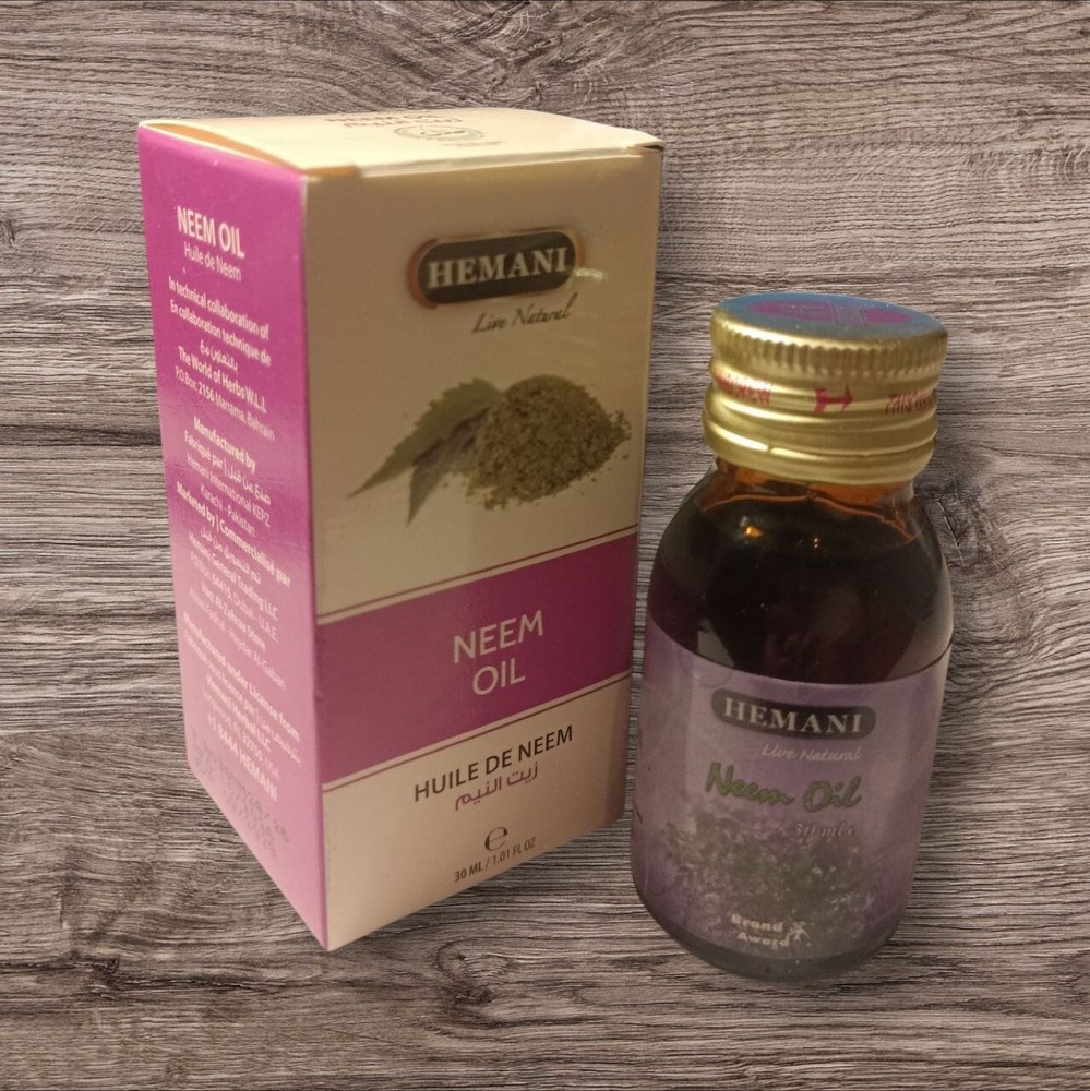 2x Hemani Neem Oil 30ml (Total 60ml / 2.03 fl oz) – 100% Natural Pure Neem Oil for skin and scalp care. Known for its antibacterial and antifungal properties. Helps with acne, dandruff, and inflammation. Made in Pakistan. For external use only