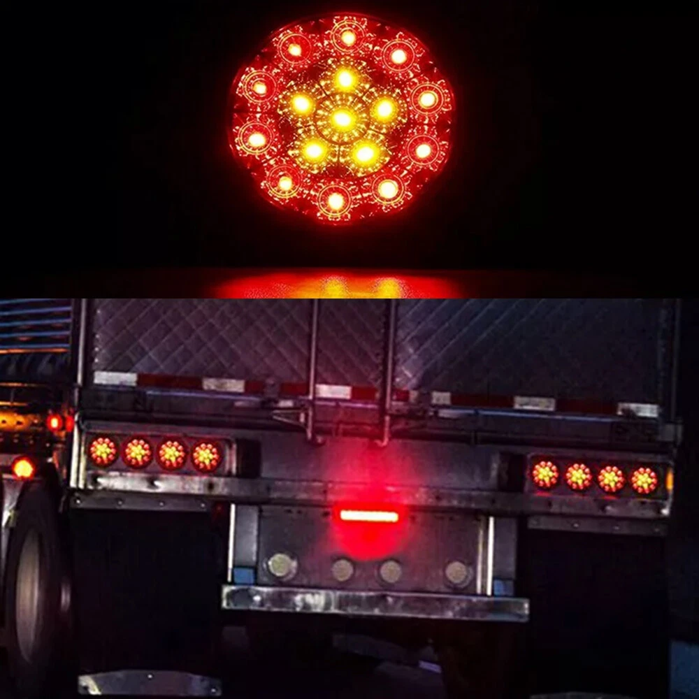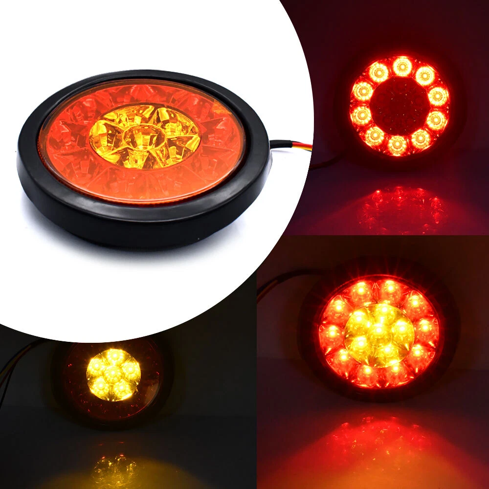 Universal 2X 4inch Round LED Truck Trailer Brake Stop Turn Tail Lights Amber+Red Fitment Universal Fits any vehicles with 12V power supply,such as trailers, trucks, dump trucks, buses, semi-trailers,snowmobiles, golf carts, UTEs,camper, RV etc. Specification Type: Tail light Material: ABS & Rubber Voltage: 12V-24V (DC) Light color: Red(10 leds), Amber (6 leds) LED quantity: 16 LEDs per unit Service life: 50000H+ Universal for: Trucks, trailers, tractors, semi-trailer, Dump Truck, bus, boat, special vehicle, and etc. Features High brightness: Adopts 16 pieces of advanced LED lamp beads glowing brightly but not dazzlingly. 100% Brighter than bulbs and more Energy-saving. Waterproof: The tail light is highly sealed with an IP67 waterproof rating, which works even under extreme conditions such as rain and snow. Multi-Functions: Tail Light, Running Light, Stop Light, Turn Signal Light, etc Wide application: Universal Fits All vehicles with 12V Power Supply such as car, truck, trailer, Semi Trailer, Semi Trucks, boat, flatbed, bus, lorry, van, caravan, camper, RV Jeep etc. Easy to install: Easy installation with direct replacement, other modifications are not required. Connection Black wire connects to negative. Red wire:Braking light (Red light with high brightness), Blue wire:Driving light(Red light with low brightness). Yellow wire:Reversing light(Amber light) Package Included 2x Tail light Payment We can accept payment of Paypal only. Payment should be made within 7 days after purchasing. (No payment orders eBay system will automatically open unpaid dispute, and this is not good to your account.) Shipping Item will be shipped out within 48 hours upon receipt of your cleared payment. We can not ship on Sundays and other public holidays. International Buyers Please Note: 1, Import duties, taxes and charges are not included in the item price or shipping charges. These charges are the buyer's responsibility. 2, Please check with your countrys customs office to determine what these additional costs will be prior to bidding/buying. Please make sure your address in paypal is correct. we will only follow your address listed in the Paypal payment for the shipment. Combine shipment is not allowed. If you want to combine all the items together, you should still pay for all of the shipping, insurance and handling fee! Returns We offer you 30 days return. The buyer is responsible for return shipping including a result of customer error or wrong item bought: 1) If you received an incorrect, damaged, defective, or item not as described, contact us for a partial/full refund or replacement on our cost. 2) If you want to return the item, please contact us within 60 days after package received. Return products must also be in its original condition: including box, packaging and all other accessories. Feedback 1.We are appreciated your business and to improve our customer service and our commitment to quality. 2.We will leave a positive feedback immediately after payment is received. We appreciate a positive feedback as much as you do. 3.If for some reason there is any issue with the purchase, please contact us prior to leaving feedback, and we will be glad to work with you to have it resolved. Contact Us We do appreciate your purchase from our store. If you are satisfied with the item as well as our service, please kindly leave us a Positive Feedback to help develop our business. Thank you in advance. Our office hours are MONDAY - FRIDAY 9:00PM - 18:00PM PST , we do not answer any E-mails or eBay messages on weekend. All E-mail or eBay message take us around 24 hours to respond. Thanks a lot. Universal 2X 4inch Round LED Truck Trailer Brake Stop Turn Tail Lights Amber+Red Fitment Universal Fits any vehicles with 12V power supply,such as trailers, trucks, dump trucks, buses, semi-trailers,snowmobiles, golf carts, UTEs,camper, RV etc. Specification Type: Tail light Material: ABS & Rubber Voltage: 12V-24V (DC) Light color: Red(10 leds), Amber (6 leds) LED quantity: 16 LEDs per unit Service life: 50000H+ Universal for: Trucks, trailers, tractors, semi-trailer, Dump Truck, bus, boat, special vehicle, and etc. Features High brightness: Adopts 16 pieces of advanced LED lamp beads glowing brightly but not dazzlingly. 100% Brighter than bulbs and more Energy-saving. Waterproof: The tail light is highly sealed with an IP67 waterproof rating, which works even under extreme conditions such as rain and snow. Multi-Functions: Tail Light, Running Light, Stop Light, Turn Signal Light, etc Wide application: Universal Fits All vehicles with 12V Power Supply such as car, truck, trailer, Semi Trailer, Semi Trucks, boat, flatbed, bus, lorry, van, caravan, camper, RV Jeep etc. Easy to install: Easy installation with direct replacement, other modifications are not required. Connection Black wire connects to negative. Red wire:Braking light (Red light with high brightness), Blue wire:Driving light(Red light with low brightness). Yellow wire:Reversing light(Amber light) Package Included 2x Tail light On Jan 14, 2025 at 01:09:51 PST, seller added the following information: