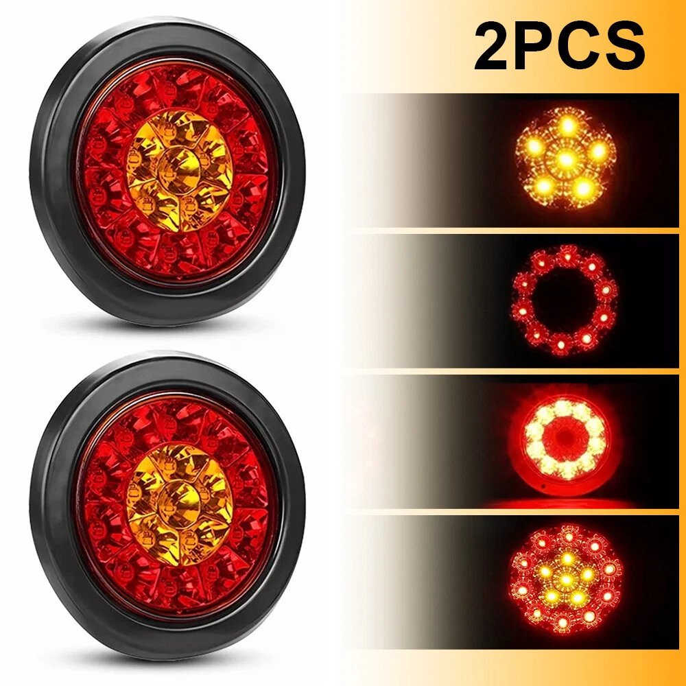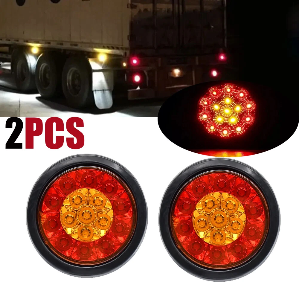 2x 4inch Red Amber Round 16-LED Truck Trailer Stop Turn Signal Tail Brake Lights