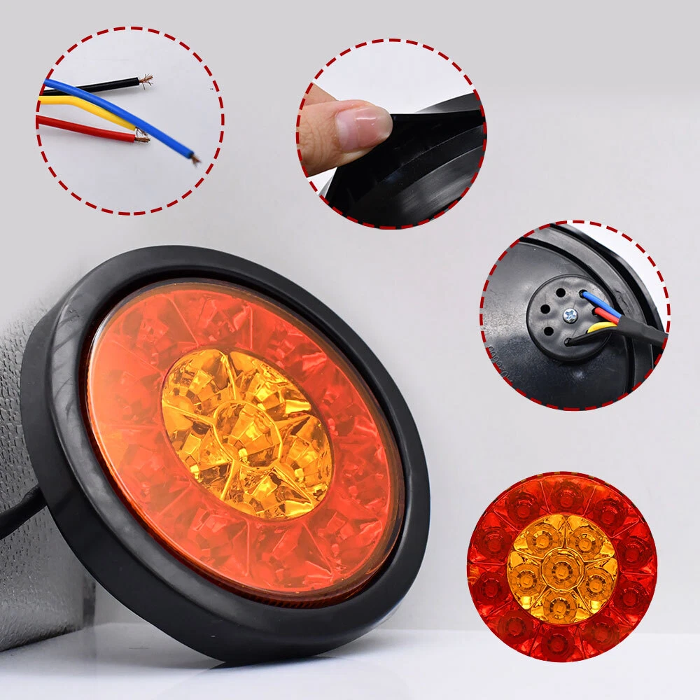 2X 4inch Round Red Amber 16-LED Truck Trailer Brake Stop Turn Signal Tail Lights Fitment Universal Fits any vehicles with 12V power supply,such as trailers, trucks, dump trucks, buses, semi-trailers,snowmobiles, golf carts, UTEs,camper, RV etc. Specification Type: Tail light Material: ABS & Rubber Voltage: 12V-24V (DC) Light color: Red(10 leds),white(6 leds) LED quantity: 16 LEDs per unit Service life: 50000H+ Universal for: Trucks, trailers, tractors, semi-trailer, Dump Truck, bus, boat, special vehicle, and etc. Features High brightness: Adopts 16 pieces of advanced LED lamp beads glowing brightly but not dazzlingly. 100% Brighter than bulbs and more Energy-saving. Waterproof: The tail light is highly sealed with an IP67 waterproof rating, which works even under extreme conditions such as rain and snow. Multi-Functions: Tail Light, Running Light, Stop Light, Turn Signal Light, etc Wide application: Universal Fits All vehicles with 12V Power Supply such as car, truck, trailer, Semi Trailer, Semi Trucks, boat, flatbed, bus, lorry, van, caravan, camper, RV Jeep etc. Easy to install: Easy installation with direct replacement, other modifications are not required. Connection Black wire connects to negative. Red wire:Braking light (Red light with high brightness), Blue wire:Driving light(Red light with low brightness). Yellow wire:Reversing light(Amber light) Package Included 2x Tail light Payment We can accept payment of Paypal only. Payment should be made within 7 days after purchasing. (No payment orders eBay system will automatically open unpaid dispute, and this is not good to your account.) Shipping Item will be shipped out within 48 hours upon receipt of your cleared payment. We can not ship on Sundays and other public holidays. International Buyers Please Note: 1, Import duties, taxes and charges are not included in the item price or shipping charges. These charges are the buyer's responsibility. 2, Please check with your countrys customs office to determine what these additional costs will be prior to bidding/buying. Please make sure your address in paypal is correct. we will only follow your address listed in the Paypal payment for the shipment. Combine shipment is not allowed. If you want to combine all the items together, you should still pay for all of the shipping, insurance and handling fee! Returns We offer you 30 days return. The buyer is responsible for return shipping including a result of customer error or wrong item bought: 1) If you received an incorrect, damaged, defective, or item not as described, contact us for a partial/full refund or replacement on our cost. 2) If you want to return the item, please contact us within 60 days after package received. Return products must also be in its original condition: including box, packaging and all other accessories. Feedback 1.We are appreciated your business and to improve our customer service and our commitment to quality. 2.We will leave a positive feedback immediately after payment is received. We appreciate a positive feedback as much as you do. 3.If for some reason there is any issue with the purchase, please contact us prior to leaving feedback, and we will be glad to work with you to have it resolved. Contact Us We do appreciate your purchase from our store. If you are satisfied with the item as well as our service, please kindly leave us a Positive Feedback to help develop our business. Thank you in advance. Our office hours are MONDAY - FRIDAY 9:00PM - 18:00PM PST , we do not answer any E-mails or eBay messages on weekend. All E-mail or eBay message take us around 24 hours to respond. Thanks a lot. 2X 4inch Round Red Amber 16-LED Truck Trailer Brake Stop Turn Signal Tail Lights Fitment Universal Fits any vehicles with 12V power supply,such as trailers, trucks, dump trucks, buses, semi-trailers,snowmobiles, golf carts, UTEs,camper, RV etc. Specification Type: Tail light Material: ABS & Rubber Voltage: 12V-24V (DC) Light color: Red(10 leds),white(6 leds) LED quantity: 16 LEDs per unit Service life: 50000H+ Universal for: Trucks, trailers, tractors, semi-trailer, Dump Truck, bus, boat, special vehicle, and etc. Features High brightness: Adopts 16 pieces of advanced LED lamp beads glowing brightly but not dazzlingly. 100% Brighter than bulbs and more Energy-saving. Waterproof: The tail light is highly sealed with an IP67 waterproof rating, which works even under extreme conditions such as rain and snow. Multi-Functions: Tail Light, Running Light, Stop Light, Turn Signal Light, etc Wide application: Universal Fits All vehicles with 12V Power Supply such as car, truck, trailer, Semi Trailer, Semi Trucks, boat, flatbed, bus, lorry, van, caravan, camper, RV Jeep etc. Easy to install: Easy installation with direct replacement, other modifications are not required. Connection Black wire connects to negative. Red wire:Braking light (Red light with high brightness), Blue wire:Driving light(Red light with low brightness). Yellow wire:Reversing light(Amber light) Package Included 2x Tail light On Jan 14, 2025 at 00:06:55 PST, seller added the following information:
