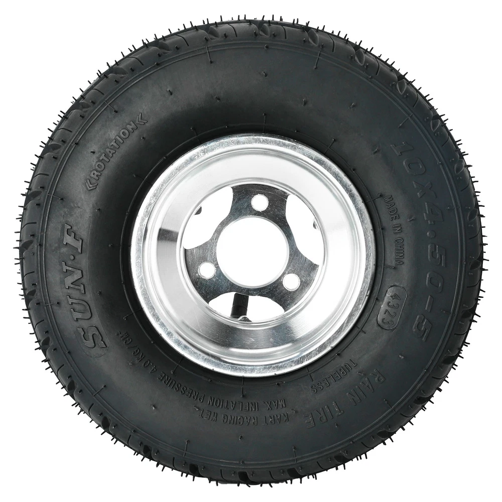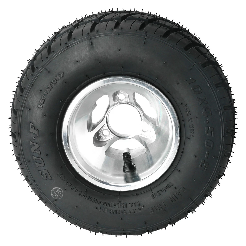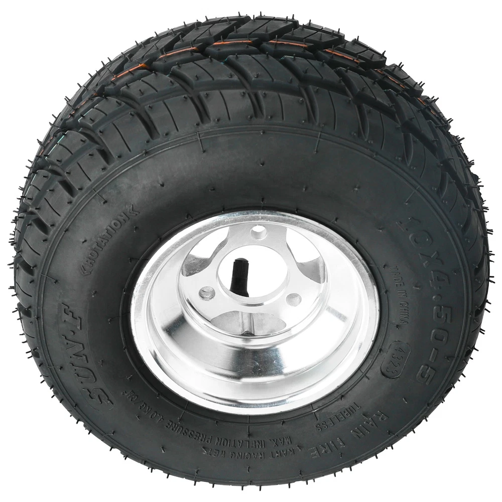 Fitment: For Racing Go Kart Drift Trike Karting Product Specification: Product Type: Front Wheel (Tyre & Rim) Condition:100% Brand New Color:Black Size:10*4.50-5 Rim M aterial:Aluminum Stud:3PCS Studs Packing List: 2 * 10x4.50-5 Front Wheel Note: ü Please check these picture s and the size specifications & bolt pattern for compatibility before purchasing . Also,please be aware that if an item doesn't fit due to a failure in pre-purchase checking, we are not be able to take responsibility for the return shipping cost. Model is just for reference , not definitely correct. Any question s ,welcome to contact us . ü If you have any problems with the received items, we kindly request that you reach out to us directly before considering leaving a neutral or negative feedback. We will strive to provide you with the best service. Thank you for your understanding and cooperation.Sincerely.