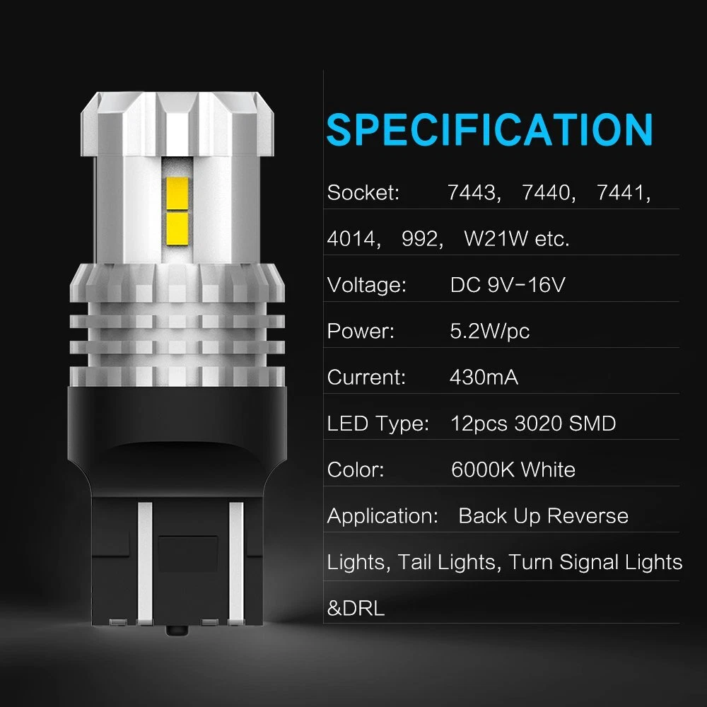 This item is AUXITO Newest design 7443 pair 3020 high power SMD bulbs Pure bulbs Constant Currency LED Driver Transforer With overload protection Short circuit protection and over temperature protection Technical details: Voltage: 9-16V DC Color: Xenon white Led bulb: 12pcs 3020SMD per bulb. Brightness: 1400LM/per BULB. Total 2800LM. Liftspan: 65000 hours Socket type: 7443,7440,etc. Usage: backup light, reverse light, side light, tail light, parking light, and parking Note: For some vehicles like VW which have on board computer (OBC), you may need to add load resistors (one resistor to one LED bulb) in order to avoid the error message showing up on dashboard or bulb malfunction problem. 2x 6000K 7443 W21W 7440 LED Reverse Backup Bulb Light for Toyota Prius 2004-2015 This item is AUXITO Newest design 7443 pair 3020 high power SMD bulbs Pure bulbs Constant Currency LED Driver Transforer With overload protection Short circuit protection and over temperature protection Technical details: Voltage: 9-16V DC Color: Xenon white Led bulb: 12pcs 3020SMD per bulb. Brightness: 1400LM/per BULB. Total 2800LM. Liftspan: 65000 hours Socket type: 7443,7440,etc. Usage: backup light, reverse light, side light, tail light, parking light, and parking Note: For some vehicles like VW which have on board computer (OBC), you may need to add load resistors (one resistor to one LED bulb) in order to avoid the error message showing up on dashboard or bulb malfunction problem. Feature: Low power consumption. Easy installation, just plug & play. Light weight, long lasting. Direct replace old filament bulbs (no wiring) Package includes: 2 piece of 7443 high power 12-3020smd LED bulbs Item Specifics Manufacturer Part Number 7443 50W fog bulbs pair Brand AUXITO To Fit Reverse Light Voltage 12-24v Payment We only accept PayPal payment, should be received within 3 days from the date of purchase. Please keep the consistency of Paypal address and ebay address. Payment should be made within 4 days once you won a item ,or ebay will launch Unpaid Reminder agaist you and there will be bad record on your ebay account . Buyers are responsible for import duties, custom fees and taxes.Please check with your country's custom office to determine the additional costs before you finally make the purchase Shipping All items will be shipped in 48 hours after receiving your payment . We ship this item to US only via USPS first class mail. It usually takes 3-6 working days to deliver. Returns We offer 30 days return policy. Please contact us within 30 days t from the date you receive your order if you have any issues with the product or want return .Refund will be send after we got your resend package. All returned items should be in the original packaging , return tracking information should be provided .. Buyer is responsible for return shipping cost due to the problem not caused by item quality itself . Contact Us Our office hours are MONDAY - FRIDAY 9:00PM - 6:00PM PST, but we will response you once we get your message .There will be some delay on response if you send message or E-Mail on weekend. FAQ Q1: Will this bulb fit my vehicle? A: We can match almost any vehicle to one of our bulb sizes. eBay only lets us include partial vehicle fitments per listing, but if your vehicle does not show up on the compatibility table at the top of our listings, welcome you to contact us for free consulation before purchasing a product. Q2: My item has not arrived, what's taking so long? A: Sometimes items take longer than expected, especially if it’s going far or to rural area. Check with your post office to see if your item has been held up. Sometimes USPS will not update a tracking number until it has arrived at its destination. If your item still has not arrived after a few days, let us know so we can double check for you and help solve it asap. Q3: Do I need to mention the Year, Make and Model in the notes when place order? A: YES. Please include the Year, Make, and Model in the notes section during checkout to ensure you receive everything needed for your kit! Q4: My bulbs won't fit, help! A: Special bulb holder may be required. See if you can take the holder from the stock bulb. If not, let us know. The bulb size may be wrong, double check the item you received with the item you ordered. Do you have an aftermarket lighting housing? These may not be perfectly fitted for aftermarket bulbs and will require some manual modifications. Q5: Neither side lighting up? Both sides flicker, flash, or work inconsistantly. A:Check the headlight fuses, and then check the ballast plugs to insure correct installation. If this doesn't work, there may be a voltage problem with the vehicle. You probably just need a relay or capacitor. Q6: WARNING ABOUT POLARITY Unlike halogen bulbs, LED are polarity sensitive. BEFORE you start your LED kit installation, verify the polarity on your vehicle by simply plugging the LED bulb into your vehicle socket. - if your light turns on, please proceed to install both bulbs onto your vehicle. - if your light DOES NOT turn on, disconnect the bulb and flip the socket in order to reverse the polarity (this will not damage your vehicle electrical system in any way). Once you made sure the LED bulb turns on, please proceed to install both bulbs onto your vehicle. Note: There is no convention when it comes to polarity. Different car manufactures have different polarity setup, even within the car model the polarity setup on your low beams and high beams might be different. DESCRIPTION PAYMENT SHIPPING RETURN POLICY CONTACT US Shop Category Store Home B3 FANLESS SERIE LED HEADLIGHT Other Y13 CANBUS SERIE LED HEADLIGHT Z1 SERIE CSP LED HEADLIGHT Hot Item AUXITO LED Headlight Bulb H4 9003 HB2 Combo Kit High Low Beam Super White CANBUS USD 36.09 AUXITO H11 LED Headlight Kit Low Beam Bulb Super Bright 6500K CANBUS Free Return USD 40.84 LED Backup Reverse Light Bulbs Back Up Super Bright White 7440 7443 7444 W21W US USD 10.44 AUXITO H11 LE