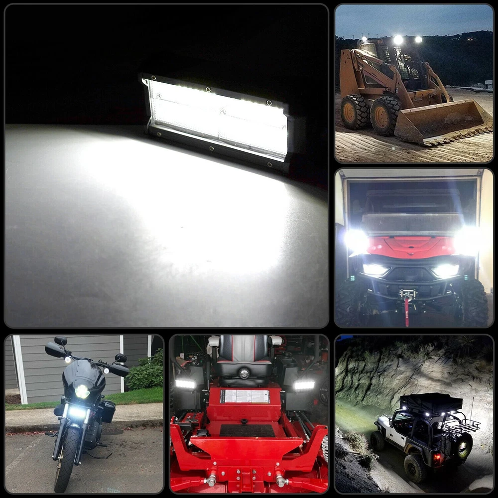 Feature: 100% brand new With the most exclusive Double row design, these LED pods emit 6000k-6500K bright white light, delivering 240w &20,000lm effectively light up entire forward dark road, turn night into day. IP68 waterproof rate and exclusive military breather can effectively resist water and moisture. Rustproof, dustproof, shockproof and quick cooling aluminum alloy heat sinks effectively extend the lifespan over 50,000 hours! Apply to all 10-30V vehicles and devices, can fit different types of Off Road, Truck, Jeep, Heavy Duty, SUV, ATV, UTV, Car, Boat, Motorcycle etc. Superior lighting efficiency to make sure these lights are 40% brighter than others in the market. Tir-row design provides standard tir-row bars, offering a big, bold look with unparalleled off-road illumination. With adjustable mounting bracket, these led pods can be adjusted to about 45 degrees, which makes changing direction of light beam easier. Specification: Dimension: 7INCH Light Color: 6000K Pure White Beam Pattern: flood Beam Fitment Type: Direct Replacement Beam Type: Combo Beam Operating Voltage: 10-30V DC Mounting Bracket: Aluminum ally with Stainless Steel brackets Material: Aluminum Housing Lifespan: About 50000 hours Placement on Vehicle: Front,Right,Left Lens Material: PC Waterproof Rate: IP68 Operation temperature: -40~60℃ Certified by CE & RoHs Models compatible: Universal fitment,included Trucks, forklifts, SUV off-road, engineering vehicles, cars, steamship, motorcycles, etc. Application: For Ford Ranger/Focus/F150/250/350/450/550/650/750 For JEEP Wrangler/Grand Cherokee/Rubicon/Compass For Chevrolet Colorado/Silverado 1500/2500/3500HD For RAM 1500/2500/3500/REBEL/PROMASTER/CHASSIS CAB For Polaris RZR XP/ACE/GENERAL/RANGER/Sportsman For Toyota Tundra/Tacoma/FJ Cruiser/Hilux/Prado For GMC SIERRA 1500/AMG G/Hummer H1/NISSAN TITAN For Pickup/Cab/ATV/SUV/UTV/Truck/Bus/4X4WD/UTE/Van BUY WITH CONFIDENCE : Your satisfaction is backed by our Risk-free 60 Day Money Back Guarantee. 3YEAR Warranty and Good after-sales. Package includes: 2 x 7inch LED LIGHT BAR Adjustable Mounting Brackets On Nov 12, 2024 at 00:22:24 PST, seller added the following information: