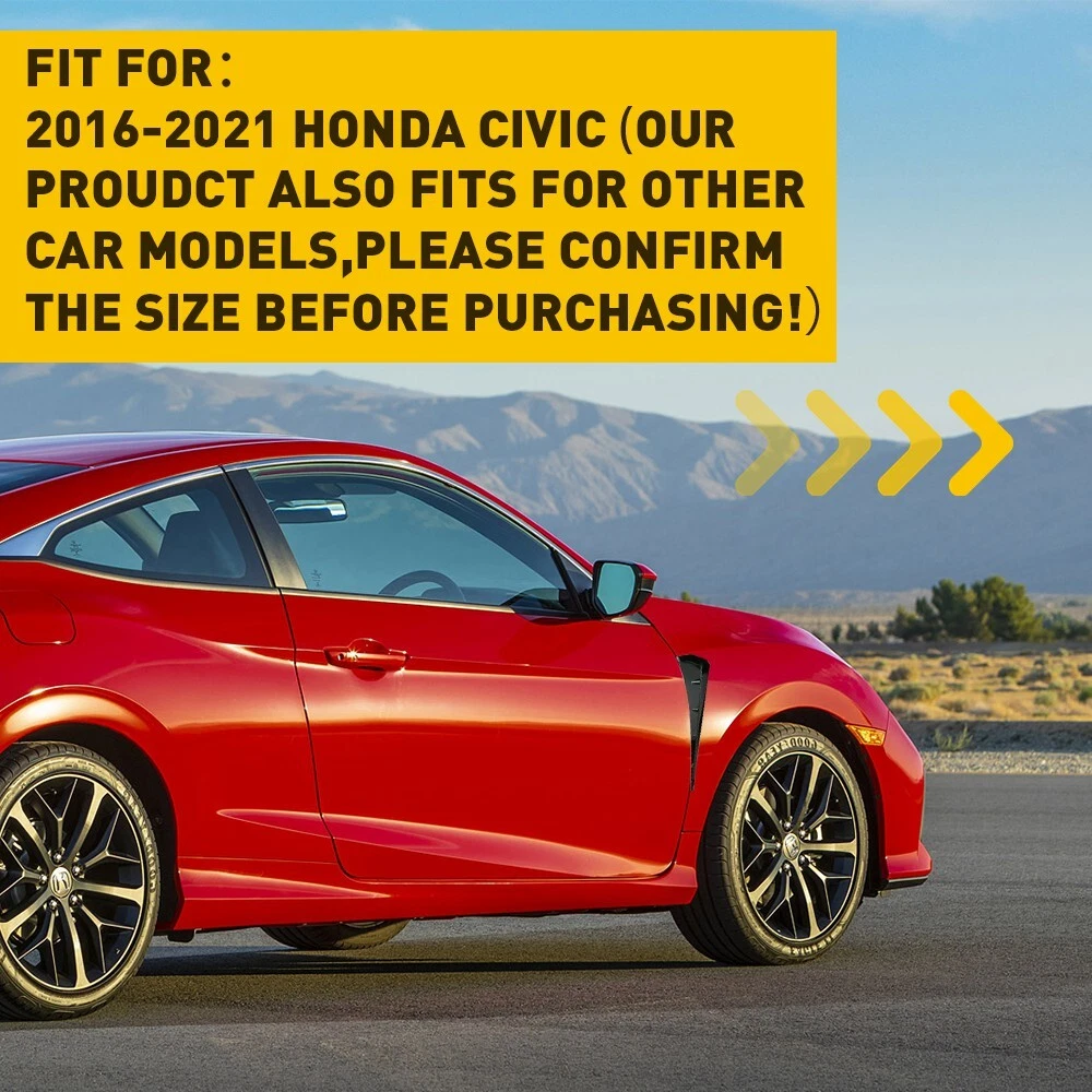Fit for : 2016-2021 honda civic (Our proudct also fits for other car models,please confirm the size before purchasing!???/span> Specifications: Product color: Black Product material:ABS Product function: decorating the car Packaging include: 2 x Air Fender Side Vent Trim ( 1 x Driver's Side , 1 x Passenger's Side ) Features: *Material: ABS material with durable and hard-wearing functions. *Come with adhesive tape at the back, it can directly stick onto your side fender *Unique design to decorate your vehicle, improve the appearance of your car. Note: 2x Black Glossy Side ABS Vent Fender Air Wing Cover Body Moldings Trim Universal Fit for : 2016-2021 honda civic (Our proudct also fits for other car models,please confirm the size before purchasing!???/span> Specifications: Product color: Black Product material:ABS Product function: decorating the car Packaging include: 2 x Air Fender Side Vent Trim ( 1 x Driver's Side , 1 x Passenger's Side ) Features: *Material: ABS material with durable and hard-wearing functions. *Come with adhesive tape at the back, it can directly stick onto your side fender *Unique design to decorate your vehicle, improve the appearance of your car. Note: Please allow 1-5cm difference due to manual measurement. Due to light and screen difference, the item's color may be slightly different from the pictures Item Specifics Brand Unbranded Vintage Car Part No Country/Region of Manufacture China Material ABS Plastic Type Car Decoration Fitment Type Direct Replacement Color Black Manufacturer Part Number CYZS-B Placement on Vehicle Front Left Rear Right Brand Unbranded Finish Matte Features Self-Adhesive OE/OEM Part Number Does Not Apply Manufacturer Warranty 2 Years Payment We can accept payment by credit, debit, and gift cards; Apple Pay, Google Pay, PayPal, and PayPal Credit. Shipping 1. All items will be shipped in 24 hours after receiving your payment . 2. We ship this item to US only via USPS first class mail. It usually takes 3-5 working days to deliver. Returns 1. We offer 60 days return policy. 2. Please contact us within 60 days from the date you receive your package if you have any questions with the products . 3. Refund will be sent after we got your returned package. 4. All returned items should be in the original packaging with tracking number. Contact Us We work from Monday - Saturday 9:00AM - 6:00PM PST, but we will reply you once we get your message .There will be some delay on response if you send message or E-Mail on Sunday. DESCRIPTION PAYMENT SHIPPING RETURN POLICY CONTACT US Hot item AUXITO 3157 3156 LED Flashing Brake Stop Stobe Tail Light Bulb Blinker Bulb 2F23 USD 12.91 AUXITO 3157 4157 Amber LED Turn Signal Side Marker Indicator Corner Light 2F23 USD 12.91 Help & Info Payment Policy Shipping Policy Return Policy FAQ About Us 2x Black Glossy Side ABS Vent Fender Air Wing Cover Body Moldings Trim Universal Fit for : 2016-2021 honda civic (Our proudct also fits for other car models,please confirm the size before purchasing!???/span> Specifications: Product color: Black Product material:ABS Product function: decorating the car Packaging include: 2 x Air Fender Side Vent Trim ( 1 x Driver's Side , 1 x Passenger's Side ) Features: *Material: ABS material with durable and hard-wearing functions. *Come with adhesive tape at the back, it can directly stick onto your side fender *Unique design to decorate your vehicle, improve the appearance of your car. Note: Please allow 1-5cm difference due to manual measurement. Due to light and screen difference, the item's color may be slightly different from the pictures Payment Shipping Returns Contact Us We can accept payment by credit, debit, and gift cards; Apple Pay, Google Pay, PayPal, and PayPal Credit. 1. All items will be shipped in 24 hours after receiving your payment . 2. We ship this item to US only via USPS first class mail. It usually takes 3-5 working days to deliver. 1. We offer 60 days return policy. 2. Please contact us within 60 days from the date you receive your package if you have any questions with the products . 3. Refund will be sent after we got your returned package. 4. All returned items should be in the original packaging with tracking number. We work from Monday - Saturday 9:00AM - 6:00PM PST, but we will reply you once we get your message .There will be some delay on response if you send message or E-Mail on Sunday. All rights reserved. On Nov 18, 2024 at 11:52:06 PST, seller added the following information: