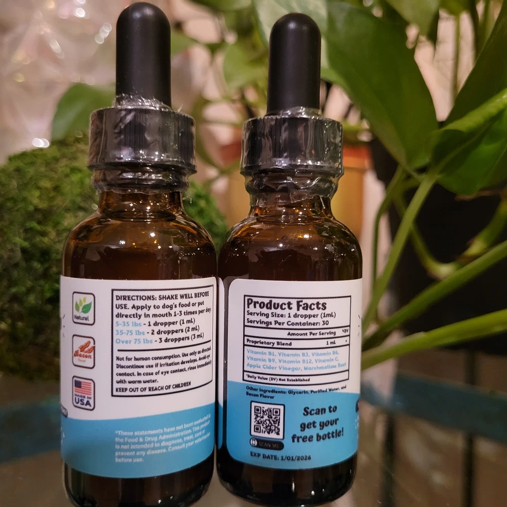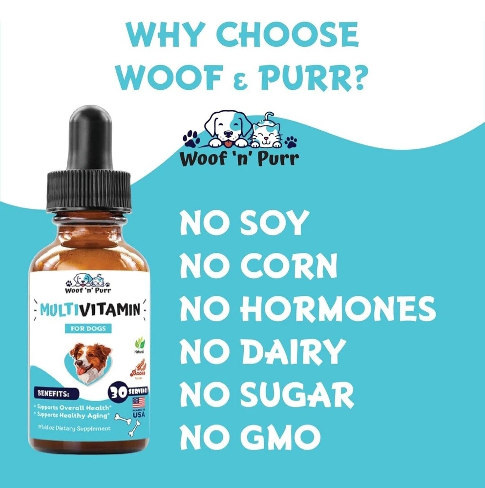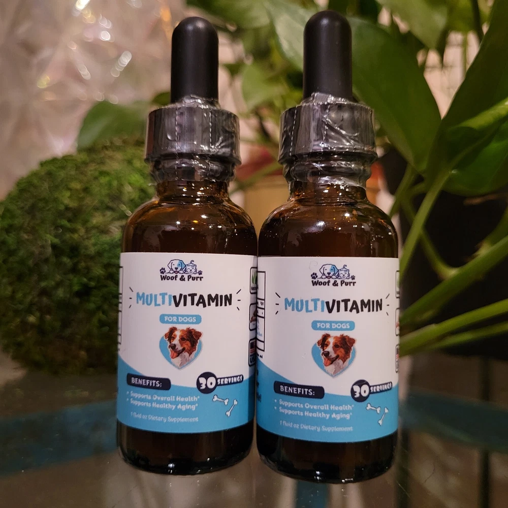 2 new and sealed 1oz bottles 30 days per bottle About this item MULTIVITAMIN FOR DOGS: This powerful liquid multivitamin includes B-complex vitamins, calcium, potassium, folic acid, vitamin D3, and more for multifunctional benefits. VETERINARIAN RECOMMENDED: a veterinarian formulated blend of vitamins and minerals, this safe and effective liquid daily supplement for pets supports their skin and coat, hip and joints, digestive health, and more. POWERED BY PROVITAE DEFENSE: 100% natural antioxidant longevity blend is formulated with clinically supported natural ingredients to help eliminate free radicals and block oxidative stress. More huggs. More life. SIMPLY ADD TO FOOD: This liquid daily supplement is easy to serve and can be mixed into your pet’s food or dropped directly in their mouth, delivering fast absorption of the nutrients.