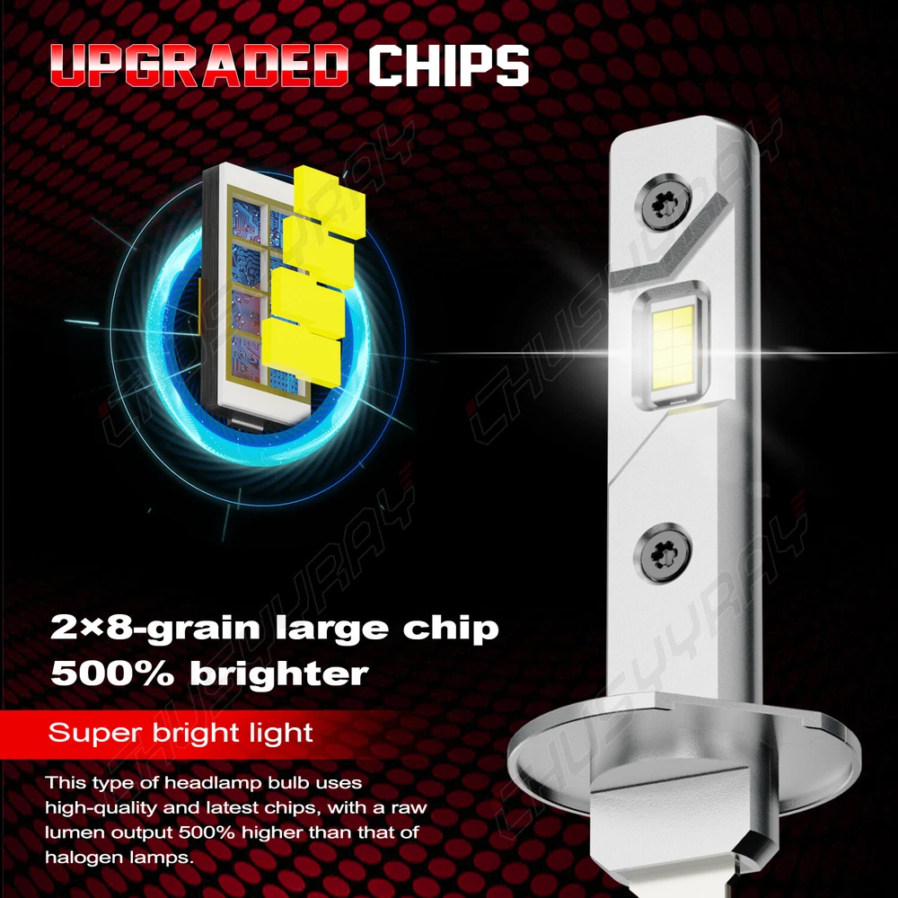 2x H1 Headlight Bulbs Conversion Kit High / Low Beam Super Bright 6500K White Headlight Bulbs Conversion Kit High Low Beam 6500K Super White Specifications: Model: H1 Power: 20W/Bulb Color:6500K WHITE Lamp bead: CSP Uses: only for car headlights (headlight bulb) Lifespan: 50,000 hrs Features: *Small size 1:1 mini size as original halogen bulbs for higher compatibility and simple installation. *Superior light type The light distribution distance is 1mm, and the position of the luminescent point is the same as the original halogen lamp, which does not affect the sight of the incoming car. *High brightness headlight features a better performance on brightness, providing further and wider visibility for you to see the deer, wild animals, falling rocks, or other obstacles in advance to ensure safer driving at night.( 50% more than the original car halogen lamp) *Long service life headlight bulb efficiently speeds up heat dissipation to prevent bulbs from overheating to ensure superior performance, prolonging their lifespan up to 50,000 hours,freeing you from the trouble of frequent replacements. *Energy-saving Brighter light output with much less power consumption. *Simple installation Our headlight bulbs with compact size can make you install them in minutes.Other modifications are not required. Packaging include: Headlight Bulbs*2