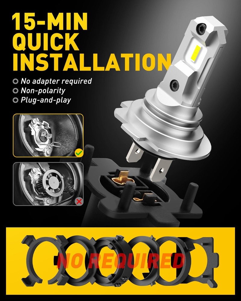 Feature 100% brand new Special powerful two ball fan which accelerate the cooling rate Imported COB LEDs make high brightness lighting Low voltage protection, high precision constant current driver chip Waterproof, shockproof and long lifespan up to 100,000hrs Easy installation: Plug & play 5 Years Warranty Specifications Light type: H7 Light Source: For Bridgelux COB LED Chips Color temperature: 6500K White Lumen: 18000LM/Set(9000LM/Each Bulb) LED Quantity: 2PCS LED/each bulb Work Voltage(V): DC9V-32V Waterproof Rate: IP68 Viewing Angle(θ):360 degree Operating temperature: -40~80℃ Certificates: CE, RoHs 2x H7 LED Headlight Bulb Kit High Low Beam 100W 40000LM Super Bright 6500K White Feature 100% brand new Special powerful two ball fan which accelerate the cooling rate Imported COB LEDs make high brightness lighting Low voltage protection, high precision constant current driver chip Waterproof, shockproof and long lifespan up to 100,000hrs Easy installation: Plug & play 5 Years Warranty Specifications Light type: H7 Light Source: For Bridgelux COB LED Chips Color temperature: 6500K White Lumen: 18000LM/Set(9000LM/Each Bulb) LED Quantity: 2PCS LED/each bulb Work Voltage(V): DC9V-32V Waterproof Rate: IP68 Viewing Angle(θ):360 degree Operating temperature: -40~80℃ Certificates: CE, RoHs Package Included 2x LED Headlight Bulbs 1x Product Manual 1x Warranty Card Point: 1. Good light type. The light distribution distance is 1.5mm, and the position of the light-emitting point is the same as the original halogen lamp, which does not affect the line of sight of the oncoming car. 2. High brightness. 50% increase than the original car halogen lamp 3. Long life, no light decay. Full-color 6063# aluminum parts, concave-convex appearance, enlarged heat dissipation surface, perfect heat dissipation. 4. Energy saving. 5. Easy to install, no special chuck is needed, plug and play. Attention Please check the LED light base type and size of your vehicle to confirm if the item will fit it. As a safety precaution, make sure the car has had time to cool down properly before starting the installation process Make sure the ignition turned off and the keys removed Fully examine the connection of the contact points, ports and the wires as faulty connections can cause lighting problems If can-bus wiring system show signs of problems warning error on the dash board: bulbs failure,flickering, customers may require one warning/error canceling load resistor/decoder to bypass the error message Important Note: 1.Please check the LED light base type and size of your vehicle to confirm if the item will fit it 2.As a safety precaution, make sure the car has had time to cool down properly before starting the installation process 3.Make sure the ignition turned off and the keys removed 4.Fully examine the connection of the contact points, ports and the wires as faulty connections can cause lighting problems 5.If can-bus wiring system show signs of problems warning error on the dash board: bulbs failure,flickering, customers may require one warning/error canceling load resistor/decoder to bypass the error message 6.These car models may cause the error issue, like BMW, Benz, Audi, and some European cars. 7.By the way, the error decoder can not 100% slove error warning problem. If you the problem, please contact with our customer service. Item Specifics Features CANbus Compatible Bulb Fitment Code H7 Manufacturer Warranty 5 Years Light Colour Cold White Colour Temperature 6500K Sub-Type Fog Light Kit Voltage 12V Performance Part Yes Lighting Technology LED Reference OE/OEM Number High Quality LED Suitable For Accessory Light Lumens 1800 lm Country/Region of Manufacture United Kingdom To Fit Headlight Bulb Type Headlight Headlight Bulb Type H7 Colour White Universal Fitment Yes Color Temperature 6000K Number of Bulbs 2 Placement on Vehicle Front Rear Left Right Wattage 80W Classic Part Yes Manufacturer Part Number HIGH QUALITY UK STOCK Brand AUXITO Technology LED Bulb Life Hours Up to 30,000 Hours Type Headlight Kit Store auxito_official_store Payment 1. We only accept PayPal payment. 2. Please keep the consistency of Paypal address and ebay address. 3. Payment should be made within 4 days once you won a item, or ebay will launch Unpaid Reminder to you and there will be bad record on your ebay account . Shipping All items will be shipped in 24 hours after receiving your payment . All items are sent via Royal Mail 2nd class standard or myHermes courier unless otherwise stated in the listing. We reserve the right to change the delivery company used at any time, we base this on 'order value' & 'weight'. Delivery is estimated with both these companies to be around 2-4 working days, please allow up to 7 working days for your order to arrive. * Remember weekends and bank holidays are not classed as working days. Returns 1. We offer 60 days return policy. Please contact us within 60 days t from the date you receive your order if you have any issues with the product or want return .Refund will be send after we got your resend package. 2. All returned items should be in the original packaging , return tracking information should be provided . Please contact us via the eBay message system & one of our friendly team will give you our simple return details. Contact Us 1. Negative feedback will not help resolve any problems you have, please contact us via eBay messages before leaving negative feedback, our customer service will make best effort to help you with the issues. 2. We maintain high standards of excellenceand strive for 100% customer satisfaction! Feedback is very important to us. We request that you contact us immediately BEFORE you give us neutral or negative feedback, so that we can satisfactorily address your concerns. 3. Our office hours are Monday - Saturday 9:00AM - 6:00PM PST, but we will reply once we get your message. There will be some delay of response if you send message or E-Mail on Sunday. About us We offer a 2