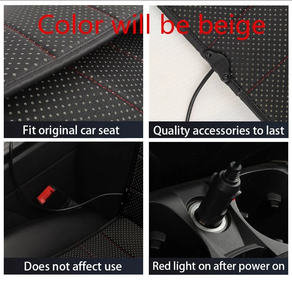 Product Description 2Pcs Beige Car Heating Seat Cover Winter Front Seat Heated Cushion Fast Heating Keep Warm Car Interior Accessories Universal Add our listing to Watchlist Or Add to Cart , you will get more discount Specification: Product name: Car heated seat cover Material: PU Season: Heating seat cushion for winter Color: Beige Input: DC 12V-24V Temperature: 38-65 degrees Celsius Timing: 30-90 mins Function: Precise temperature control Quantity: 2PCS Features: 1. Adjustable temperature range from 38 degrees to 65 degrees, every 3 degrees is a gear, accurately adjust the temperature that suits you 2. Adopts premium pu that offers a comfortable and great feeling for body touch in winter. 3. Heated seat cushion increase the temperature in short time within 30s, providing cozy warmth for your full back, hips and thighs. The highest temperature is able to be adjusted to 65°C.The seat warmer is a great companion in cold winter days. 4. This warm seat cushion is designed with no-slip back and adjustable dual straps that can keep it in place perfectly. 5. Simple to instal-equipped with elastic bands to fasten the cushion to the seat within 2 mins Payment Returns Contact Us Shipping We accept payment by PayPal only ! Payment should be completed within 5 days after buyer places the order,or else an unpaid case will be opened in order to cancel the transaction. If you can not pay in time, please contact us. e-check from PayPal will only be processed once the payment clears. All of the items will be shipped to buyer's EBAY address,please confirm your address on Ebay before you buy.Your order will be usually shipped out the same or next business days once the payment is made and cleared. 30-day Warranty with Exchange for defective, malfunctioned, incorrect or parts-missing items. Please notify us and return the item with all parts and accessories packed and marked "FOR EXCHANGE" within 14 days of receipt. If defective, malfunctioned or parts-missing items are no longer available, a refund may be issued. All returning postage costs will be the responsibility of the buyers under all circumstances. If you encounter any problems about anything, please feel free to contact us and we will do our best to assist you solve the issue. If you are not satisfied in anyway, please feel free to let us know and give us a second chance to correct it before you decide to leave any neutral or negative feedback. Please contact us through eBay link if you have any questions. We will reply you within 24- 48 hours. Please check you spam mail if no response for 48 hours. All items will be checked before packing. All items are new and of high quality. Item will be shipped within 1 business days upon receipt of payment, excluding weekends and public holidays. If to USA,we will ship your order by USPS,it will take about 8-12 working days to you,and you can track it on line. If to other country,we will ship your order by China Post or Singapore Registered Air Mail,it will take about 14-21 working days to you,you aslo can track it on line. Delivery time is about 14-28 business days and it may take up to 8 weeks . Payment We accept payment by PayPal only ! Payment should be completed within 7 days after buyer places the order,or else an unpaid case will be opened in order to cancel the transaction. If you can not pay in time, please contact us. eCHECK from PayPal will only be processed once the payment clears. All of the items will be shipped to buyer's EBAY address,please confirm your address on Ebay before you buy.Your order will be usually shipped out the same or next business days once the payment is made and cleared. Returns 30-day Warranty with Exchange for defective, malfunctioned, incorrect or parts-missing items. Please notify us and return the item with all parts and accessories packed and marked "FOR EXCHANGE" within 14 days of receipt. If defective, malfunctioned or parts-missing items are no longer available, a refund may be issued. All returning postage costs will be the responsibility of the buyers under all circumstances. Contact Us If you encounter any problems about anything, please feel free to contact us and we will do our best to assist you solve the issue. If you are not satisfied in anyway, please feel free to let us know and give us a second chance to correct it before you decide to leave any neutral or negative feedback. Please contact us through eBay link if you have any questions. We will reply you within 24- 48 hours. Please check you spam mail if no response for 48 hours. Shipping All items will be checked before packing. All items are new and of high quality. Item will be shipped within 1 business days upon receipt of payment, excluding weekends and public holidays. If to USA,we will ship your order by USPS,it will take about 7-10 working days to you,and you can track it on line. If to other country,we will ship your order by China Post or Singapore Registered Air Mail,it will take about 14-21 working days to you,you aslo can track it on line. Delivery time is about 14-28 business days and it may take up to 8 weeks . Welcome to our Store ~