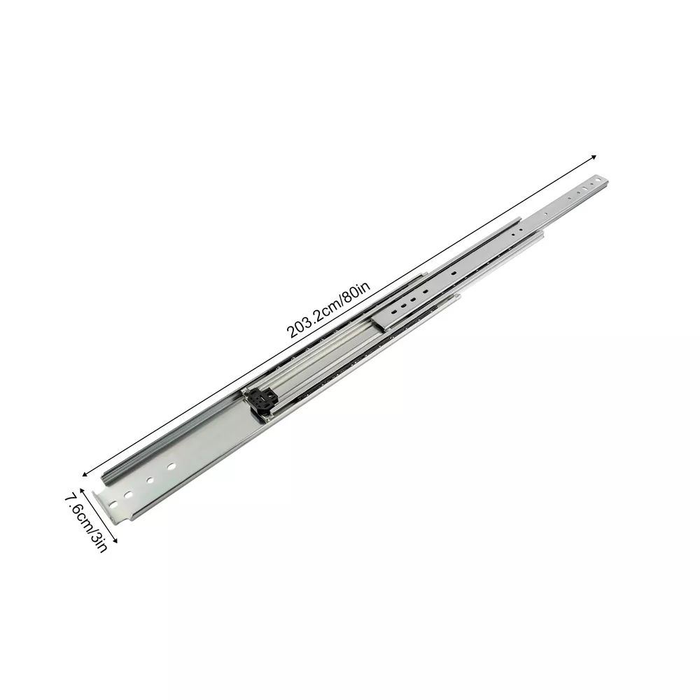 2x Heavy Duty Drawer Slides Ball Bearing 12"-56" Full Extension 500LB Track Rail Installation Steps. 1. Find two horizontal lines in the installation position on both sides of the cabinet, and fix the outer fixed slides to the horizontal lines on both sides with screws; (Note: the positioning of both sides must be parallel). 2. Completely pull the slide rail, and fix the drawer to the inner fixed rail with screws according to the horizontal line. 3. The installation is finished. Specification Style: Simple, Modern Material: Cold Rolled Steel Q235 Color: Silver Quantity: 2 Surface Treatment: Galvanized Finish Load-Bearing Capacity: 226.8kg/500lbs Slide Length: 35.56cm/14in 45.72cm/18in 55.88cm/22in 86.36cm/34in 96.52cm/38in 101.6cm/40in 142.24cm/56in Slide Width: 7.6cm/3in Gross Weight: 3.7kg/8.22lbs 4.3kg/9.5lbs 5.8kg/12.89lbs 7.7kg/17.11lbs 9.7kg/21.56lbs 10.2kg/22.67lbs 14kg/30.11lbs Package Included 1 Pair of Heavy-Duty Drawer Slides Notes Please note that in order to ensure the safety of users, the heavy-duty slide rails cannot be disassembled. Please note that screws are not included in the package, you need to purchase your own M4 and M6 half-round head screws. Please note that the installation gap on both sides should be more than 20mm/0.79in. Please allow the slight color difference caused by the shooting light and 1-3 cm error due to manual measurement, and make sure you do not mind before ordering. Payment Delivery details Terms of sales About us Contact us Payment We accept ebay payment 。 Fees such as import duties, taxes are not included in the item price or shipping costs. These charges are the buyer's responsibility. Delivery details Shipping: 2-9 working days to: USA Terms of sales We maintain high standards of excellence and strive for hundred percent customer satisfaction. Feedback is very important to us. We hope that you contact us immediately before you give neutral or negative feedback, so that we can address your concerns. It is impossible to address issues if we do not know about them! About us Your satis faction is our ultimate goal. We work hard to earn your trust and future business. Our certified technicians have tested each item before shipping. The unit comes with 1 year limited warranty on all manufacturing defects. a) If you receive a defective item, you may return it or ask for a discount. Please contact us within 14 days after you receive the package. b) What you returned must be intact and in its original packaging as re? u. Customer is responsible for shipping costs of the returned item. c) We will cover the cost of shipping back t with the shipping rate indicated in the registration page. We will send you a new unit or refund the full payment you paid. Thank you. Contact us Business Hour Business Hour: Monday To Friday: 8:30 AM to 5:00 PM (Beijing China time) Due to time zones, our reply to your questions may not be immediately. But within above working time, we will reply your email within 24 hours. If it's non-workdays, please kindly be patient and wait till Monday. Please contact us with ebay message. Please feel free to contact us if you have any questions. Monday To Friday: 8:30 AM to 5:00 PM (Beijing China time) Due to time zones, our reply to your questions may not be immediately. But within above working time, we will reply your email within 24 hours. If it's non-workdays, please kindly be patient and wait till Monday. Please contact us with ebay message. Please feel free to contact us if you have any questions. Feature💖 FAST SHIPPING FROM US LOCAL WAREHOUSE! Feature 1* Easy installation,Convenient Use,Easy Operation Type Ball Bearing Brand Unbranded Style Modern Material Cold Rolled Steel Q235 Color Silver Quantity 2 Surface Treatment Galvanized Finish Load-Bearing Capacity 226.8kg/500lbs Item Width 7.6cm/3in Manufacturer Warranty 2 Years Closing Type N/A Item Height N/A Item Length N/A MPN N/A