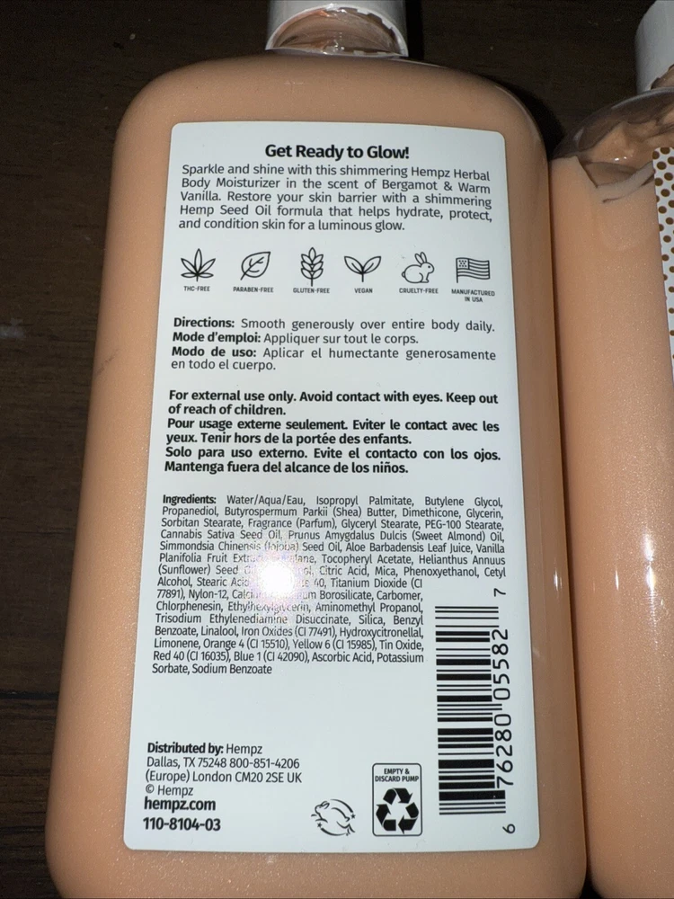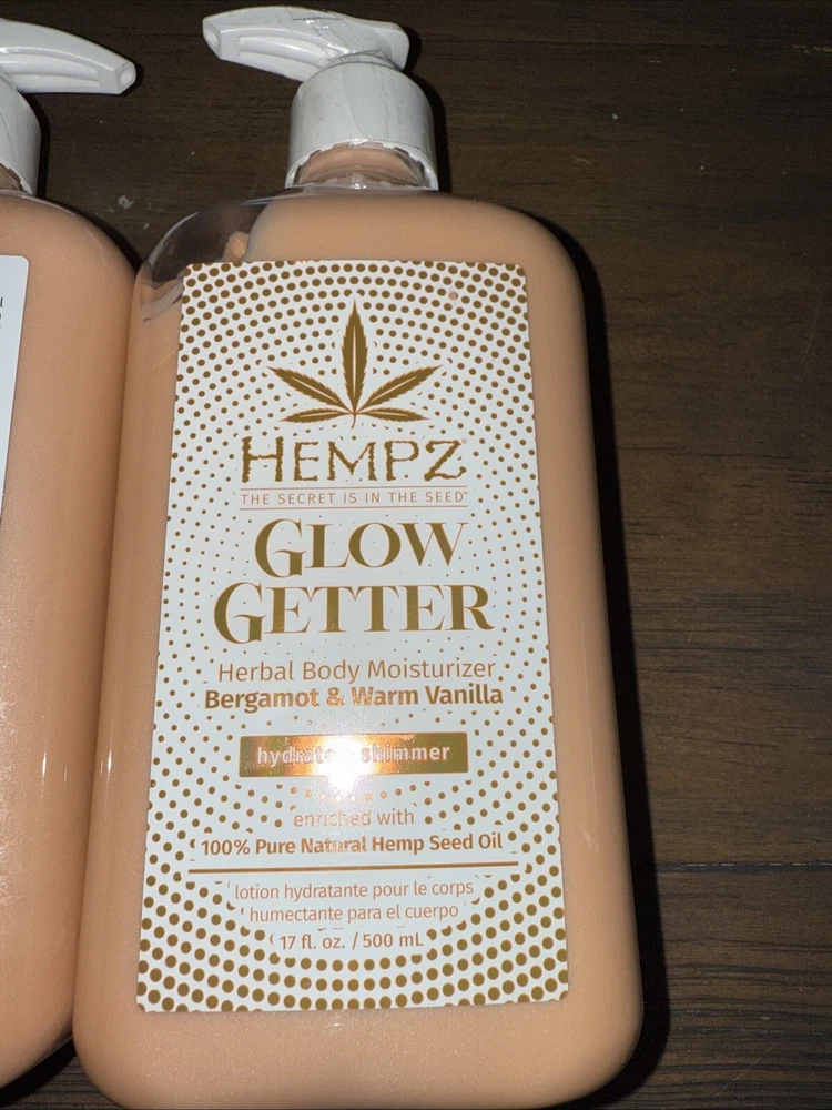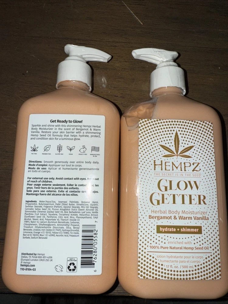 2x Hempz Glow Getter Herbal Body Moisturizer with Shimmer Bergamot & Vanilla. 17 oz each bottle