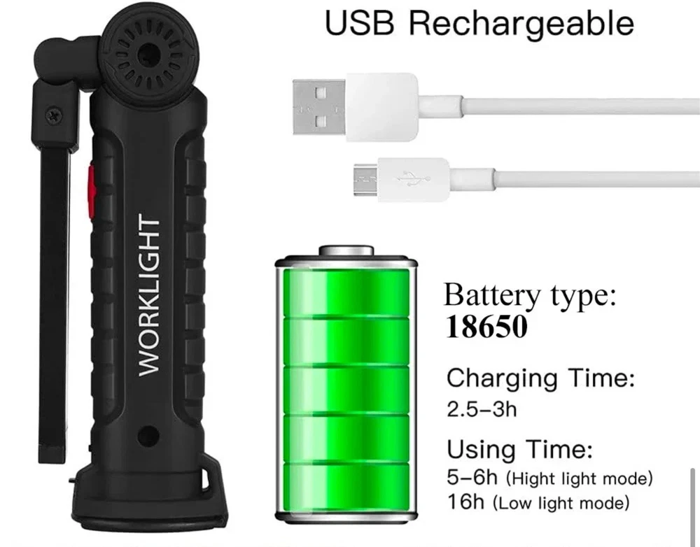 The Charles Jacobs COB LED Folding Flashlight is a portable work light and lantern designed with innovative features. It has a powerful 20000 lumens output with three LEDs and a rechargeable Li-Ion battery that can be charged via USB. The light is constructed from durable materials like ABS, aluminium, and metal in a sleek black design. It features a magnetic base for hands-free use and an operating range of 25 meters, making it ideal for camping, hiking, or any outdoor activities. Made in the United Kingdom, this versatile torch is a practical and reliable lighting solution.