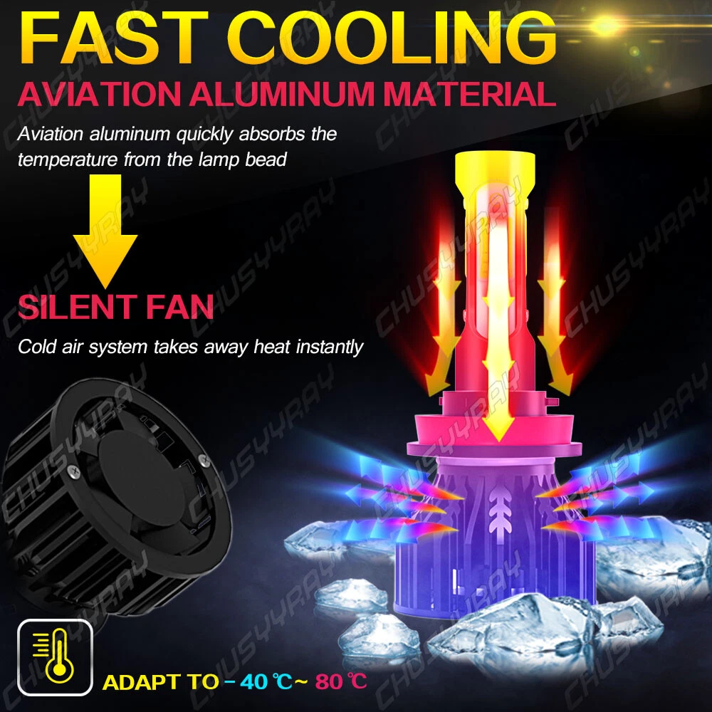 If the product is not suitable or there is a quality problem, please contact our customer service directly to solve the problem. We will give you a satisfactory solution. Spesification: Plug Type: H11/H9,Hi/Low Beam LED Quantity(each bulb): 4-sides Operating Voltage: DC fit 12V,24V vehicles Color Temperature: Pure White 6000K - 6500K IP67 rated water and dust seal,over 50000hrs lifetime Material: Aviation 6063 aluminum profile Operating Temperature: -40-80 degree Celsius Usage: Headlight, Foglight (2pcs/set)H11 COB Hi-Lo Beam LED headlight conversion kit Latest COB chip light source,4 luminous faces no blind zone Engineering beam pattern design throw more light on road evenly at appropriate angle without foggy light Xenon white light reflect road paint/signs better to show clearer road situation during night driving All-in-one heat conduction+high speed mute fan system keep the light bulb in appropriate working temperature Built-in constant current CPU, instant full brightness without start-up relay Two-way heat dissipation channel: 1.All-in-one aluminum profile as heat conduction system, 360 degree heat radiating 2.High speed mute fan (12000R/Min),high Air flow for faster cooling rate Compatible Models and Years: - Universal for most vehicles on the market like SUV, bus, truck, sedan, pickup, sport utility etc. Specifications: * Brand: CHUSYYRAY * Condition: 100% Brand New * Light Source:4 Sides COB LEDs * Material: Aviation Aluminum + ABS * Color Temperature: 6000K White * Working Voltage: 12V * Output Power (Each): 100W * Number of Bulbs: 2 * Waterproof Rate: IP67 * Luminous Flux: 10000lm/ Bulb * Working Temperature: -40℃ - +80℃ * Bulb Type: H11 * Beam Type: High Beam/ Low Beam * Beam Angle: 360 Degrees * Lifespan: Over 50,000 hours * Heat Dissipation Principle: Heat Pipe Technology + Aluminum Radiator * Fitment Type: Direct Replacement * Placement on Vehicle: Front, Left, Right * Color: Black * Net Weight: 112g Parcel Content: - 2 * 4-side H11 LED Headlight Bulbs - 1 * Packaging Box Information: a)Compatible List can not show up all Car model. Please check the Correct item size of your vechicle. it will work and fit.Thank you! b)If you are unsure the item fit or not , please do remember send message to tell us your car make, model, year and other information which is helpful to check the item fit or not.For example: For 2004 Ford F 150, high/low beam For 2015 RAM 1500 with projector-type, high beam For 2019 Ford F 150 ,XL Crew Cab Pickup 4-Door 2.7L On Nov 22, 2024 at 02:14:28 PST, seller added the following information: