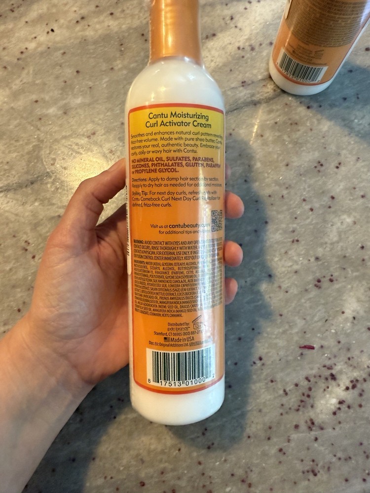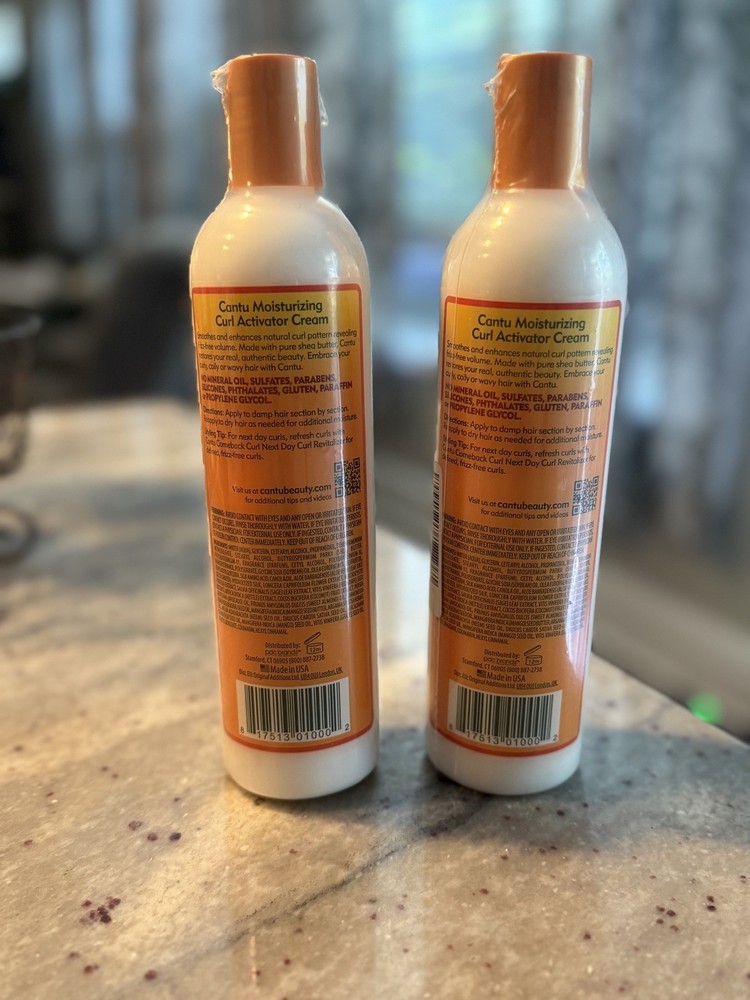 The product is a 2-pack of Cantu Shea Butter for Natural Hair Moisturizing Curl Activator Cream, each bottle containing 12 fl oz of the cream formula. Specifically designed for curly hair, the curl-enhancing cream is formulated with shea butter as its main ingredient, providing deep moisture and nourishment for natural hair. Ideal for those looking to activate and enhance curls while maintaining softness and hydration.