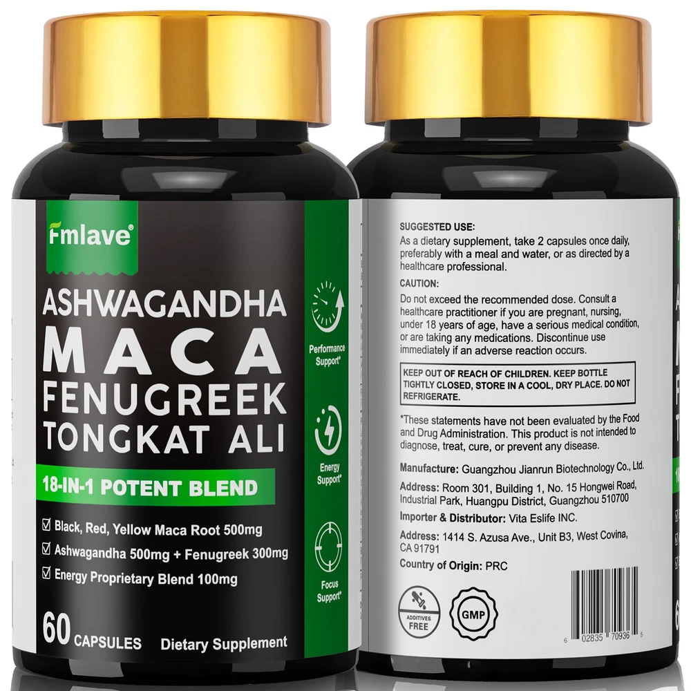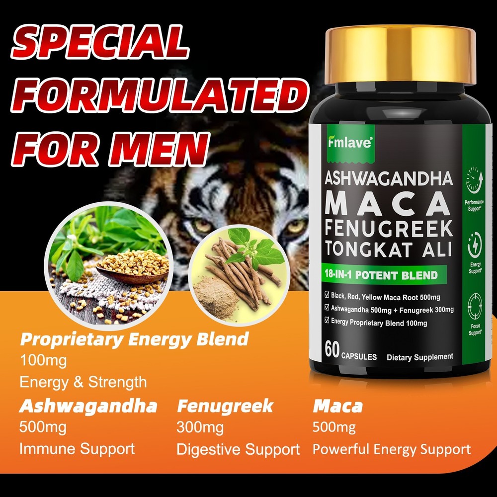 Item Weight: 6 oz Brand: Fmlave Features: All Natural, Easy to Swallow, Eco-Friendly, Non-GMO, Gluten Free Type of Diet: Vegan, Herbal UPC: 602835709365 Country of Origin: United States Flavor: Netural Production Date: 2025 Volume: 6 fl oz gtin13: 602835709365 Active Ingredients: Black Pepper (Piper nigrum), Maca Root, Ginseng Root, Ashwagandha, Fenugreek, Hypoallergenic, Tongkat Ali Ingredients: Ashwagandha, Fenugreek (Trigonella foenum-graecum), Ginseng, Tongkat Ali (Eurycoma longifolia), Black Pepper, Maca Root, Hypoallergenic When to Take: Night, After Meal Department: Men Expiration Date: 04/2027 Dosage: 1400 mg Type: Supplement Number of Pills: 120 Supply: 2 Month and Longer Storage: Keep in a cool, dry place and please sealing California Prop 65 Warning: N/A Main Purpose: Men's Health, Sexual Health, Enhance Performance & Energy, Muscle Growth, Sport & Fitness MPN: N/A Formulation: Capsule