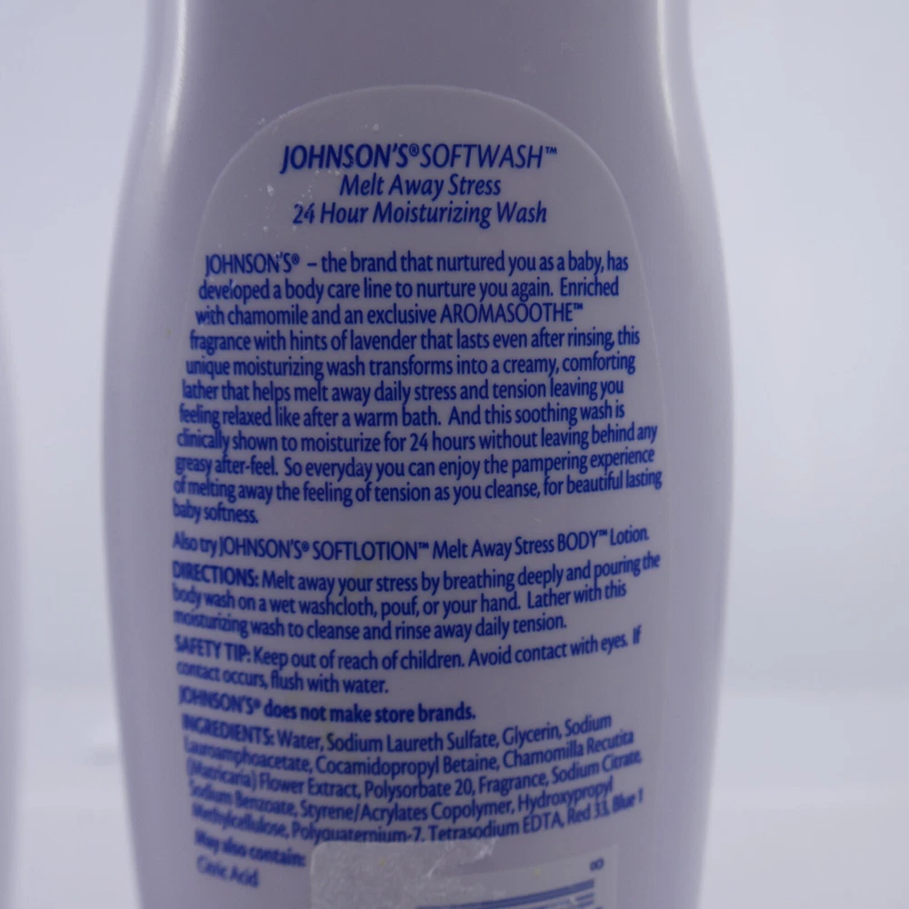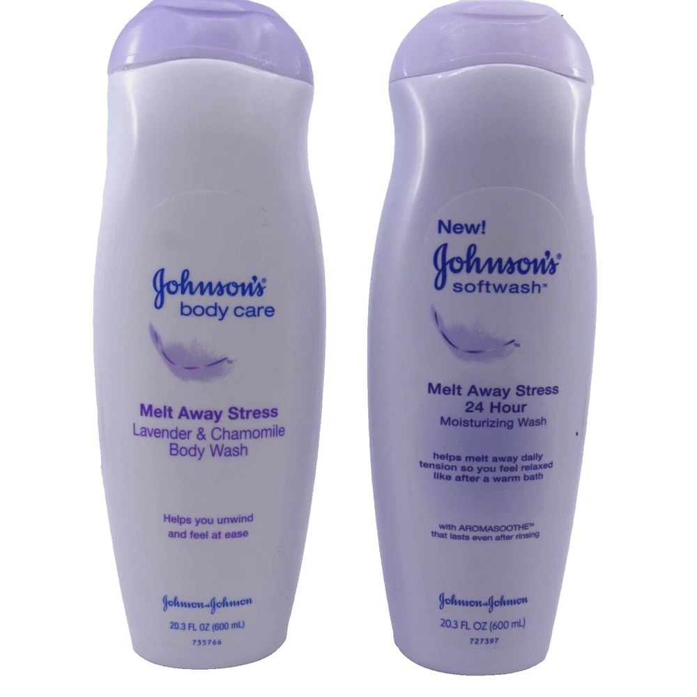 2 bottles Melt Away Stress LAVENDER & CHAMOMILE Johnson’s Body Wash 20.3 oz softwash New/unused but may show fair amount of shelfwear due to age. Bottles are two different styles but same product