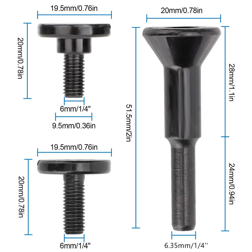 Product Description Features: Material: Crafted from durable carbon steel with a black plated finish, the cut-off wheel arbor offers long-lasting performance and excellent rust resistance for extended use. Two Thread Heads: The die grinder's mounting mandrel features a handle with two different thread head types. It's designed for attaching small-diameter cut-off wheels or circular saw blades with 3/8-inch or 1/4-inch core holes, suitable for cutting discs from 0.035 to 0.16 inches thick. Versatile Application: This mandrel also supports various grinding wheels, including grinding, sanding, cleaning, descaling, polishing wheels, and hss saw blades, making it suitable for a wide range of tasks. Wide Compatibility: With a 1/4-inch (6.35mm) shank, it fits most die grinders and drill rotary tools. Easy to install and remove, making it an essential grinder accessory. Specifications: Type: Metal Cut Off Wheel Disc Mandrel Material: Carbon Steel Shank Diameter: 1/4” Package includes: 2 x Mounting Mandrel 4 x Screws Shipping Returns Contact Us Payment 1. Items sent from US warehouse. 2. Receiving time = Processing time + Shipping time. 3. Pro cessing Time: Around 1-2 business Days. 4. Shipping Time: 3-5 business day. it may have a little delay during some holiday (such as Christmas), any problem, please feel free to contact. 1. 30 days warranty from the purchased date. Please contact us via email before returning the defective item. 2. Our warranty does not extended to any product that are physically damaged or that are not under normal operating conditions as result of misuse or improper installation on the buyer/user's part. 3. Return items should include the original packaging and all accessories. buyers MUST contact us for the returning address. 4. In all cases, buyers pay shipping fees at their own cost to return products for exchange or refund. We will be responsible for the postage of replacements. Refund will be made upon receipt of the returned item. If you have any question, please e-mail us immediately, we will reply you as quickly as possible. We care about our valued customers, and will always try to help you. We accept all verified payment from eBay. Shipping 1. Items sent from US warehouse. 2. Receiving time = Processing time + Shipping time. 3. Pro cessing Time: Around 1-2 business Days. 4. Shipping Time: 3-5 business day. it may have a little delay during some holiday (such as Christmas), any problem, please feel free to contact. Returns 1. 30 days warranty from the purchased date. Please contact us via email before returning the defective item. 2. Our warranty does not extended to any product that are physically damaged or that are not under normal operating conditions as result of misuse or improper installation on the buyer/user's part. 3. Return items should include the original packaging and all accessories. buyers MUST contact us for the returning address. 4. In all cases, buyers pay shipping fees at their own cost to return products for exchange or refund. We will be responsible for the postage of replacements. Refund will be made upon receipt of the returned item. Contact Us If you have any question, please e-mail us immediately, we will reply you as quickly as possible. We care about our valued customers, and will always try to help you. Payment We accept all verified payment from eBay. You may also like 5/16" Line Fuel Filter Replace Part For Mercury For Quicksilver Marine Engine 12.33 USD Housing Case Kit 5-Cell 18650 Replace For DeWalt 20V DCB201/203 Li-Ion Battery 17.63 USD 1.99 USD Wireless Remote Control DC 6V 12V 24V 2CH RF Relay Transmitter 433MHz Universal 15.06 USD New Laser Lens Deck Repair Part For Sony PlayStation 2 PS2 Slim PVR-802W 20.67 USD Gas Fireplace Thermocouple Universal Stove Thermocouple 600mm Grill Fireplace 11.89 USD Hi-Speed USB Port Socket Connector Without Wings For Xbox Series S Console 11.65 USD powered by