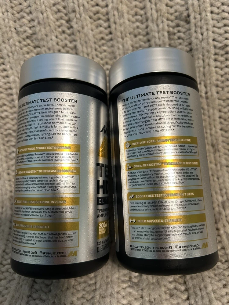 2x MuscleTech Test HD Elite Test Booster - 240 Capsules (120 each bottle) Exp 11/2025. Brand new, sealed and stored at room temperature. Let me know if you have any questions. Priced to sell!! Thanks so much for stopping by.