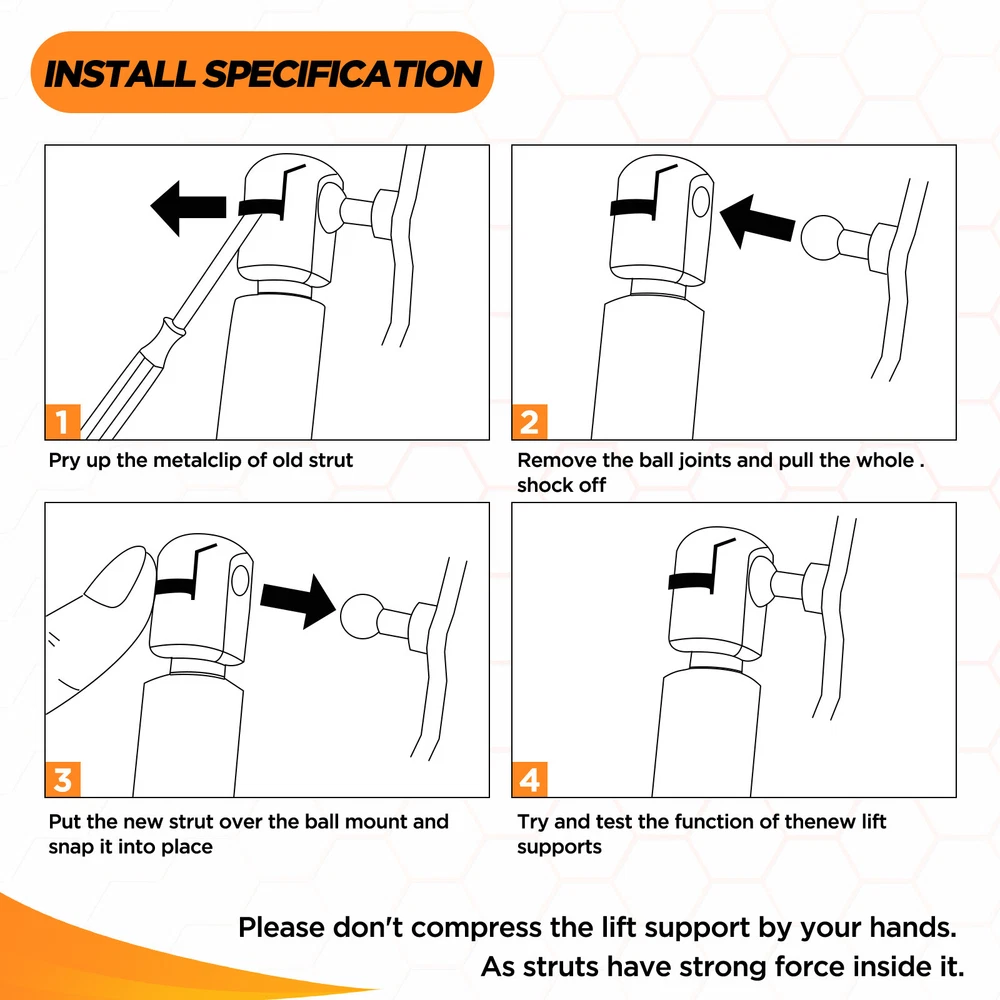 3. I received the original shipment quickly. Unfortunately one of the two struts was missing a piece. After messages with the seller, he made it right and shipped out 2 new ones. Thanks to the seller for making it right. Frank