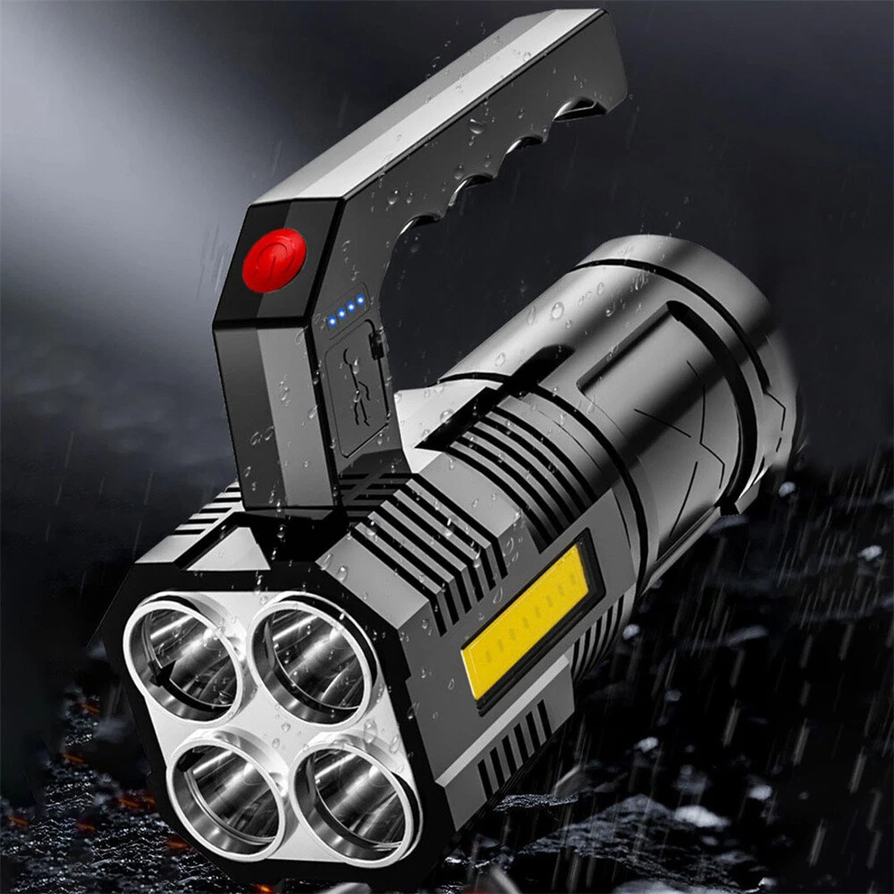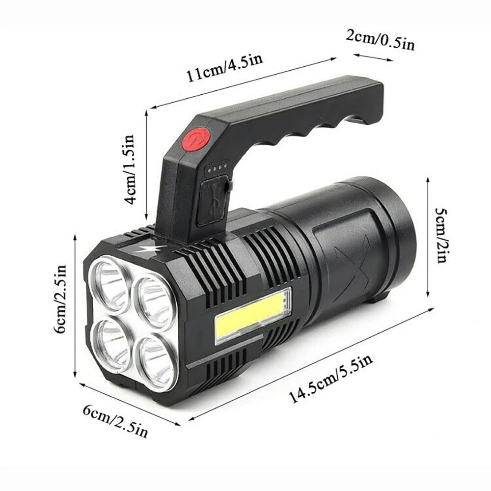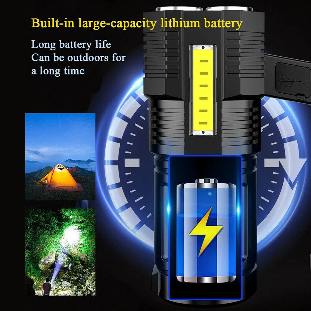 2x Super Bright 4 LED Torch Tactical Flashlight Power USB Rechargeable Spotlight
