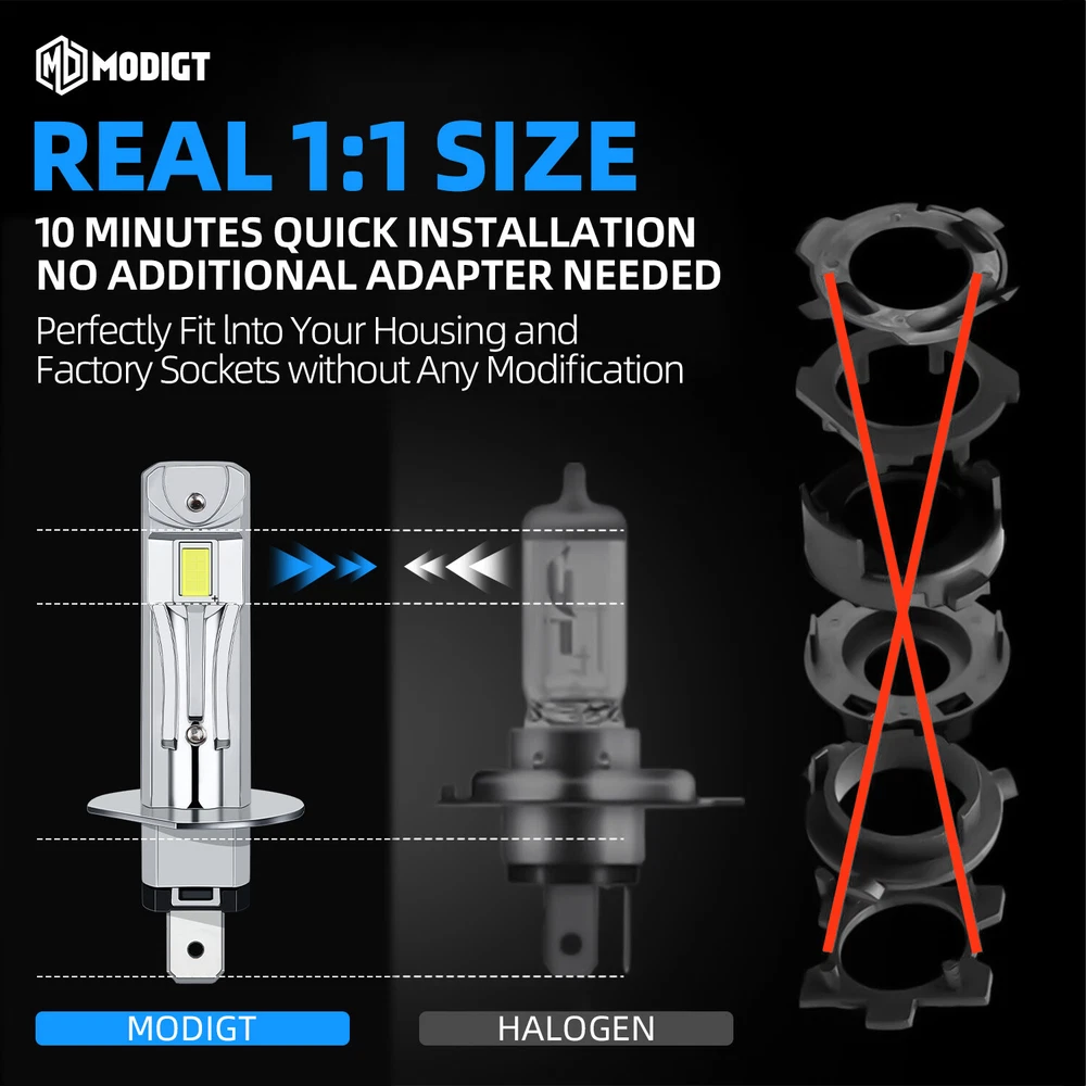 Feature: 【600% Brighter】MODIGT H1 LED headlight bulbs are designed with double-sided CSP LED chips, 6000K cool white, 36,000Lumen per set, 600% brighter than stock halogen bulbs, a perfect upgrade for halogen headlights. Allows driver get a farther, brighter, and clearer vision when driving at night 【30,000+hrs Lifespan】The advanced CSP LED technology effectively reduces the energy consumption of H1 Led headlight during operation. Premium aviation aluminum effectively pull the heat away from the LED chips, which ensures long service life of up more than 30,000 hours Breezesew Best choice of motor parts 2x Super Bright H1 LED Headlight Kit High Low Beam Fog Driving Bulbs 6000K White Feature: 【600% Brighter】MODIGT H1 LED headlight bulbs are designed with double-sided CSP LED chips, 6000K cool white, 36,000Lumen per set, 600% brighter than stock halogen bulbs, a perfect upgrade for halogen headlights. Allows driver get a farther, brighter, and clearer vision when driving at night 【30,000+hrs Lifespan】The advanced CSP LED technology effectively reduces the energy consumption of H1 Led headlight during operation. Premium aviation aluminum effectively pull the heat away from the LED chips, which ensures long service life of up more than 30,000 hours 【1:1 Beam Pattern】MODIGT H1 LED headlights 1:1 simulate the beam pattern of halogen bulbs, use ultra-thin 0.03in baseboard to ensure 360° lighting without black spots. And the emitted light beam is focused on the ground, will not cause glare to oncoming drivers 【5min Installation】Unlike other LED lights, MODIGT H1 headlight bulbs have no external driver and connector, fully all in one. That makes the bulbs almost the same size as the halogen bulb. Due to the wireless design, installation is a breeze, just plug and play Specification: Compatible With:H1 Power:20W/per bulb Lumens:36000lm Color Temperature:6000K White LED Chips: CSP Waterproof Level:Dustproof & Waterproof IP67 Operating Temperature: -40 - +80°C Lifetime:More than 30000 hours Work Voltage(V):DC 9V-32V(Fit 12V/24V vehicle) Applications:Headlight / fog driving light / daytime running light DRL Package Included: 2 x H1 LED Light Bulb Install Caution: 1. As a safety precaution, make sure that the car has had time to cool down properly before starting the installation process. 2. Put the vehicle into park or make sure it is securely in gear. 3. Make sure to have the ignition turned off and the keys removed. 4. Be careful to avoid burns, especially when turning on or off the vehicles lighting. 5. Be careful to avoid crushing or cutting the bulbs. Also make sure to not touch the bulbs with your fingers, as this will cause blotting. 6. Fully examine the connection of the contact points, ports and the wires as faulty connections can cause lighting problems. 7. Make certain that the end of the bulb does not come in contact with the interior light shield of the headlight when adjusting the bulb. Note: Please make sure it is suitable for your car before purchase. Please feel free to contact us if you have any questions. Item Specifics Brand MODIGT Lighting Technology LED To Fit Headlight, High or Low Beam Bulb Fitment Code H1 Number of Bulbs 2 Light Color Cold White Type H1 White LED Light Bulb Features Easy Installation Fitment Type Direct Replacement Material Aluminum Color Temperature 6000K Wattage 40 W Voltage DC 9V-32V(Fit 12V/24V vehicle) Lumens 36000LM Application headlight / fog driving light / daytime running light DRL Ballast Included No Operating Temperature -40℃~ 80℃ Bulb Life Hours Up to 30,000 Hours Manufacturer Warranty 2 Years Note Replace Halogen ONLY Payment 1. It will be much appreciated that you finish your payment asap or it will make UPI (unpaid item case) on your account leading to be suspended or restricted by eBay when those UPI cases carry over to certain amount. 2. Any problems please contact us for more details. Shipping 1. All items will be shipped to buyer's ebay address. 2. All items will be shipped within 24-48 working hours upon receipt of payment, and multiple items will be combined shipping. 3. In most cases, delivery takes around 3-5 business days, it's highly depended on the efficiency of the shpping carrier. If your item doesn't arrive on time, please contact us immediately for further assistance. Please note there is no local pickup service available. Returns If you are not 100% satisfied with your purchase, you can return the product and get a full refund or exchange the product for another one. Please Note: Please write us a message before your return, otherwise we will not accept the package. Any product you return must be in the same condition you received it and in the original packaging. Contact Us 1. We care about our valued buyers, if you have any questions, our Customer Service staff will be very glad to help you. We try our best to reply your ebay message as soon as possible, please kindly allow 24 hours for us to response. 2. Our goal is to make sure you are a happy buyer and pleasant shopping with us. Please contact us before leaving any 1 or 2 star ratings, negative feedback or open any dispute. We understand the concerns and frustrations you might have, and will do our endeavor to resolve the issues. Breezesew Best choice of motor parts 2x Super Bright H1 LED Headlight Kit High Low Beam Fog Driving Bulbs 6000K White Feature: 【600% Brighter】MODIGT H1 LED headlight bulbs are designed with double-sided CSP LED chips, 6000K cool white, 36,000Lumen per set, 600% brighter than stock halogen bulbs, a perfect upgrade for halogen headlights. Allows driver get a farther, brighter, and clearer vision when driving at night 【30,000+hrs Lifespan】The advanced CSP LED technology effectively reduces the energy consumption of H1 Led headlight during operation. Premium aviation aluminum effectively pull the heat away from the LED chips, which ensures long service life of up more than 30,000 hours 【1:1 Beam Pattern】MODIGT H