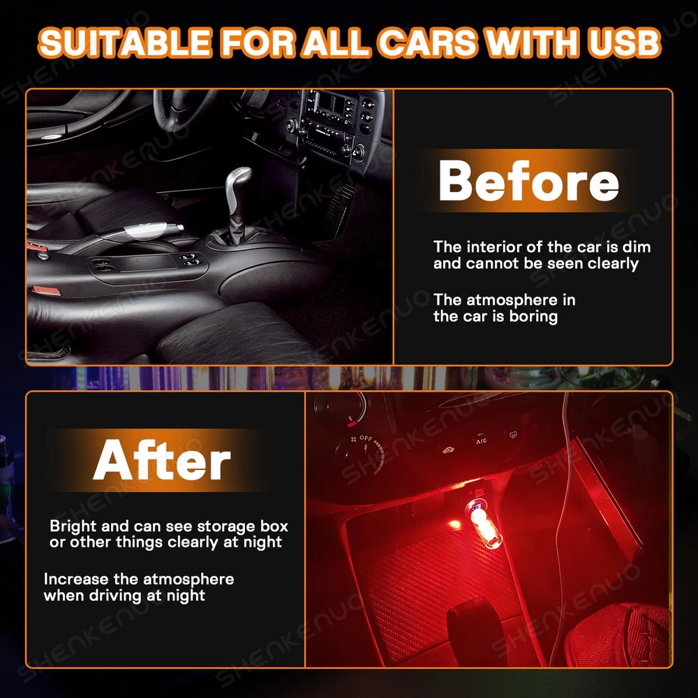 Car USB Ambient Light — Touch Control, Stepless Dimming Product Features: Interface: USB Powered (5V 1A–2A) Color:Red /Blue/ Warm white Control: Top Touch Switch (Tap to turn on/off, long press to adjust brightness) Lens: High-Quality Low-Borosilicate Glass Housing: ABS Plastic with Spring Sleeve Transparent Design Certifications: CE, ROHS,EMC,FCC Package include: 2PCS * USB night light Why Choose Our Car Ambient Light? ✅ Universal Convenience — Plugs into any car USB port, power bank, laptop, or USB charger. Compatible with all vehicles equipped with USB ports. ✅ Smart Touch Control — Light tap activates switch, long press enables stepless brightness adjustment ✅ Premium Materials — Durable borosilicate glass, corrosion-resistant USB port (passed 24-hour salt spray test), and streamlined ABS housing ✅ Portable and Convenient — This USB LED car interior mood light is lightweight and portable, making it perfect for travel. The portable design ensures that you can enjoy comfortable lighting wherever you are, and it is an ideal companion for people who pursue a comfortable experience. ✅ Wide Application — Suitable for various occasions, such as home decoration, parties, camping, in the car, etc. Retro Inspired Interior Mood Lamps can be used as room decorations or as reliable camping lights. Soft lighting creates a cozy atmosphere in a tent or any space. Note: Compatible only with standard 5V 1A–2A power sources. Do not connect to fast-charging adapters or high-current power banks to avoid damaging the device. On Feb 18, 2026 at 16:02:35 PST, seller added the following information: