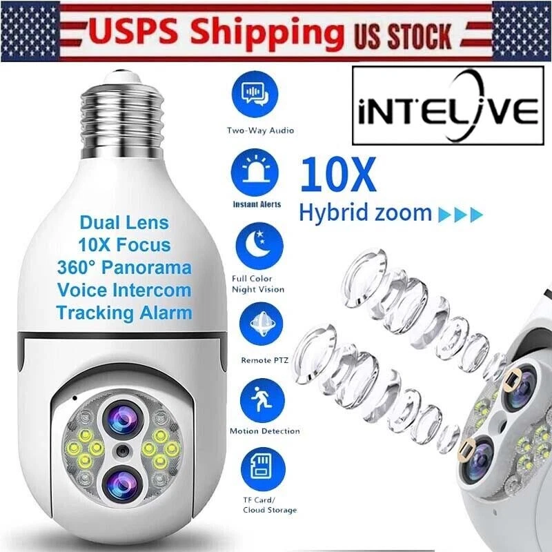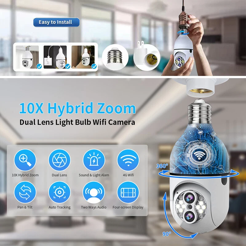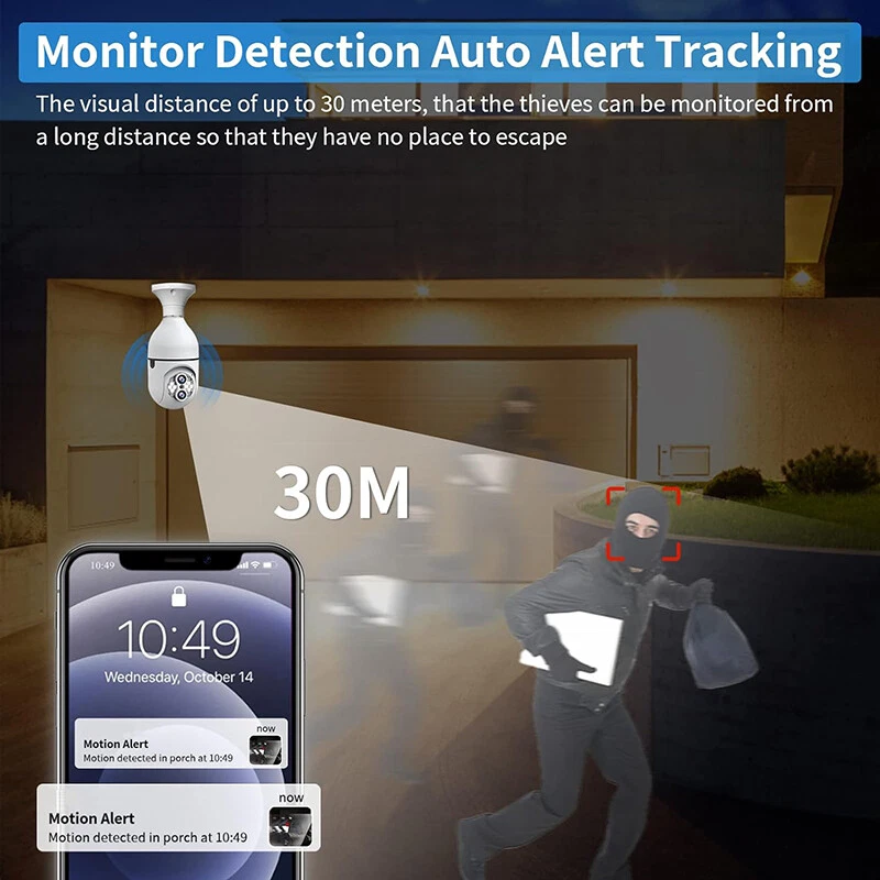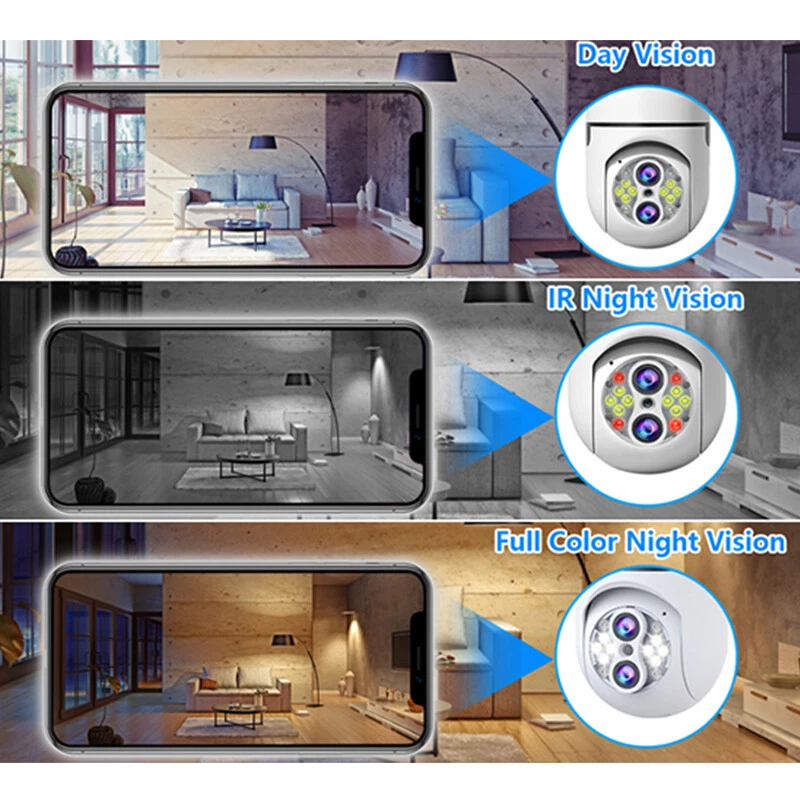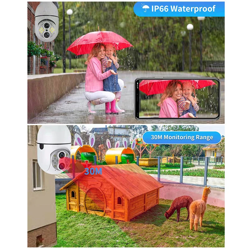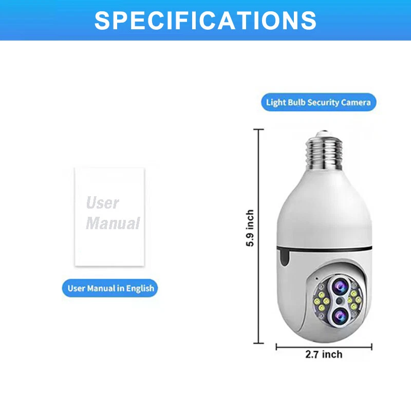 SAFE & SECURE SHOPPING SATISFACTION GUARANTEED FAST SHIPPING Store Categories Store Categories Other Phone Charger & Cable Security Cameras Headsets Promotion You may also like 2x Wireless Security 1080P IP E27 Light Bulb Camera Wi-Fi IR Night Smart Home Product Description Precautions for camera network distribution: 1. Please keep the camera and cellphone next to the router. It is recommended that the distance would be within 1 meter. 2. Press and hold the camera reset button for 5 seconds, and wait for the voice reset. 3. The cellphone should be connected with 2.4G WiFi (not 5G). Most of the configurations fail as the cellphone is connected with 5G wifi. 4. Download the IPC360 HOME app and grant app permissions during installation. 5. Follow the APP operation steps and enter the password for the router 2.4G WIFI. (Password is case sensitive)! 6. Check whether the anti-WiFi freeloader function is enabled on the router. Please enable that function first. F eatures: DUAL LENS + 10X HYBRID ZOOM : Our upgraded version security camera light bulb outdoor with IP66 waterproof and the most advanced dual lenses and 10X hybrid zoom technology. The focal lengths of the two lenses of the binocular camera are 4mm and 8mm respectively. The larger the focal length value, the farther you can see and the smaller the field of view which has less pixel loss and fast zoom speed, ensuring precise zoom-in or zoom-out for the finest details or wide viewing angle. 2MP COLOR NIGHT VISION AND VISIBLE DISTANCE UP TO 30 METERS : The pixel is up to 2MP (1920×1080P). This security cameras wireless outdoor/indoor built with 4 pcs IR LEDs and 8 pcs flood-light LEDs, captures better vision at day than others, visible distance up to 30 meters. With two modes of night vision: infrared night vision and full-color night vision, security camera outdoor captures clear videos and images even at night or in foggy or rainy weather. 360°PAN 90°TILT & TWO-WAY AUDIO: T his home bulb camera supports 360°Pan/Tilt/Zoom and 90°up&down Viewing Angle, you can easily access the App control from your Phone/Tablet to change the viewing angle without blind spots, so that you can monitor every corner of the house. Besides, security camera light bulb allows you to keep in touch with your family or pets anywhere anytime with a built-in microphone and speaker. WIFI & EASY INSTALLATION : T his wifi light security camera can be installed easily using a normal e27 bulb base (110v~240v). Light bulb camera compatible 2.4ghz wifi, scan the QR code on the manual or search for "IPC360 HOME"app to download it from app store or google market. The maximum wifi signal reception range of the bulb camera is 35 feet. Light security camera please install it as close to the wifi router as possible. MOTION DETECTION & RELIABLE AFTER-SALES GUARANTEE : The light bulb camera will record moving objects and push real-time alerts to your phone. Wireless security camera outdoor can also share surveillance images with family members. Wireless outdoor security camera support cloud storage and TF card storage(up to 128GB TF card, CARD NOT INCLUDED). Professional technical team 24 sales online Q & A, we support 30-day return. Specifications: Item Name: L ight B ulb C amera Color: White App: IPC 360 Home Pixel: 2MP Power Supply :E27 Light (110-220V) Lighting :With 8pcs White l eds a nd 4 p cs Infrared l ed Storage: Maximum Loca l 128G TF Card Storage (CARD NOT INCLUDED) & Cloud Storage (NEED TO PAY) Connection Method: Wireless 2.4G Wifi. Supported Mobile Systems: Android/IOS Working Voltage: E27 Interface (Ac110-240V) Gimbal Rotation: Horizontal 0°-360°, Vertical 0°-90° Day & Night Conversion Mode: IR/ Full Color Motion Tracking: Support Alarm: APP Push/Device Alarm Sound/White Light Alarm 2-way Audio: Support Digital Zoom: 10x Digital Zoom Operating Temperature: -10℃ to 50℃ Package Weight: 25 0g Package Included: 2 x L ight B ulb C amera 2 x Use r M anual Notes : Due to the light and screen setting difference, the item's color may be slightly different from the pictures. Please allow slight dimension difference due to different manual measurement. Payment Shipping Returns Contact Us Payment 1. This is the payment method we can accept: Paypal 2. You can checkout and pay immediately after the auction ends or you complete the purchases. If you need an eBay invoice sent to you by Email, please contact us before making payments. 3. Once the checkout is completed, you will not be able to include any additional purchases. We start to process and fulfill your order once payment is received. New purchases after the checkout will be processed separately. 4. Payments are expected within 4 days after the order is confirmed. Unpaid item (UPI) strike may be filed with eBay upon non-receipt of payment. Shipping 1. How much is the shipping & handling (S&H)? Our shipping and handling charges are clearly stated in the Shipping and Payments section of the item page, and we provide Free Shipping for most items. 2. For multiple purchases, the combine shipping discount will be automatically calculated when you check out and pay all of your purchases together. Items checked out separately may not be combined and the combine shipping discount will not be offered automatically. 3. Please make sure the correct Ship-To address is entered before checking out. Once the payment is completed, you may not be able to change the shipping address. We shall not be held responsible for any wrong or undeliverable addresses. 4. We usually ship within 1-2 business days of receiving cleared payment. Returns 1. We put buyer's satisfaction at top priority. If you're not pleased with your purchases, we'll be happy to make an exchange or refund the item total price less Shipping and Handling (S&H) charges within 30 days of your purchases. 2. For any Exchange, Refund or Return, the item must be in its original condition, including the box, packaging, and all the accessories or gifts. 3. We'll provide pre