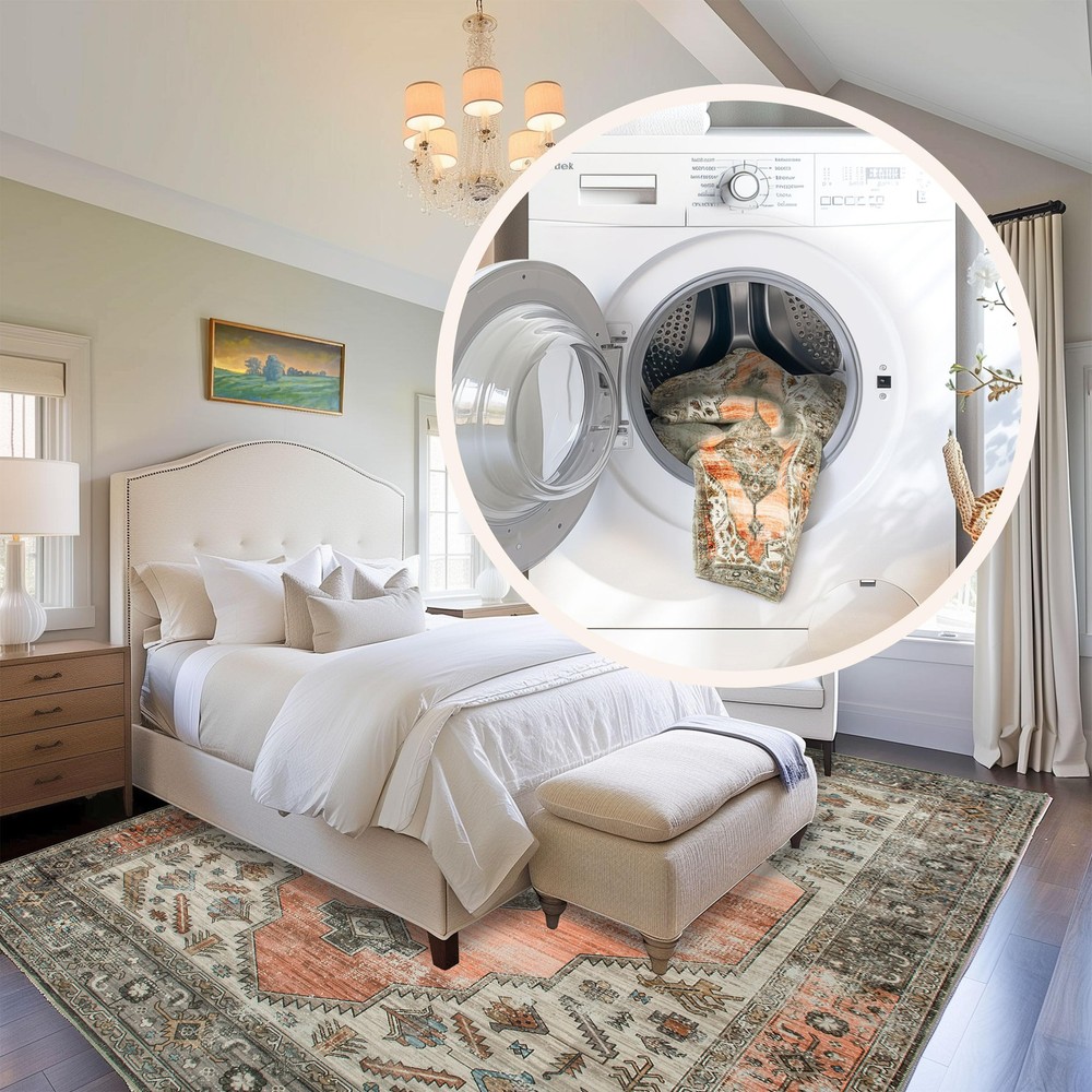 Introducing our SpinClean Machine Washable Collection, the ultimate blend of style, convenience, and practicality for any home. Designed with today's busy lifestyles in mind, this rug is more than just a beautiful addition to your space—it's a game-changer in home maintenance and comfort. SpinClean washable rugs are fully machine washable, making this a -safe and pet-safe rug as well as the perfect high-traffic area rug. Gone are the days of worrying about spills and stains; simply place your rug in the washing machine, and it will come out looking as good as new. The ease of cleaning not only saves you time but also extends the life of your rug, ensuring that it remains a stylish feature in your home for years to come. Whether you're looking to add a pop of color with a living room rug, a touch of warmth to your bedroom, an inviting front door rug, or a functional runner for your kitchen, our collection has you covered. It’s machine washable and stain-resistant features, combined with a non-slip backing, make it an ideal choice for any home. Need a hall rug to enhance your hallway's look? Or perhaps a grey and white area rug to elevate your modern decor, these rugs offer versatility in any space. The SpinClean collection is proof that you don't have to break the bank to achieve a stylish, comfortable, and low-maintenance home environment. Stylish and Practical: The SpinClean Machine Washable Collection offers an affordable, low-maintenance solution without compromising on style. This collection features a wide array of designs, from vintage to southwestern, boho, abstract, and modern geometric. Machine Washable for Easy Care: Maintaining this rug is a breeze with regular vacuuming and spot cleaning to preserve its beauty. For tougher stains, just toss your rug in the washing machine on a gentle cycle with cold water. We recommend line drying or using the air-only drying cycle without heat. Designed for Every Room: This area rug is kid and pet-friendly, making it ideal for any space in your home that needs an elevated touch. It ensures lasting style in your living room, bedroom, dining room, kitchen, bathroom, home office, dorm room, as a hall runner or entrance rug. Sleek and Functional Pile Height: The low pile of this area rug brings a sleek, sophisticated touch while being easy to clean and maintain. Designed to be placed conveniently under furniture and doorways or as an indoor entrance rug, this is the perfect high traffic rug for your home. Stain-Resistant Material: Our machine washable rugs are crafted from synthetic materials that are stain-resistant, lightweight, and easy to clean. The stain-resistant properties ensure that the rug maintains its vibrant colors and patterns, even after enduring the demands of everyday use. If your rug is located in an area that receives direct sunlight, regularly rotate your rug to maintain its appearance. Durable Design with Non-Slip Backing: This rug’s power-loomed design is made to endure everyday wear and tear, ensuring long-lasting durability. The integrated non-slip backing keeps the rug securely in place while the reinforced, quality-stitched edges enhance its resilience. For added comfort, pair it with of our rug pads for an extra cushioned feel underfoot.