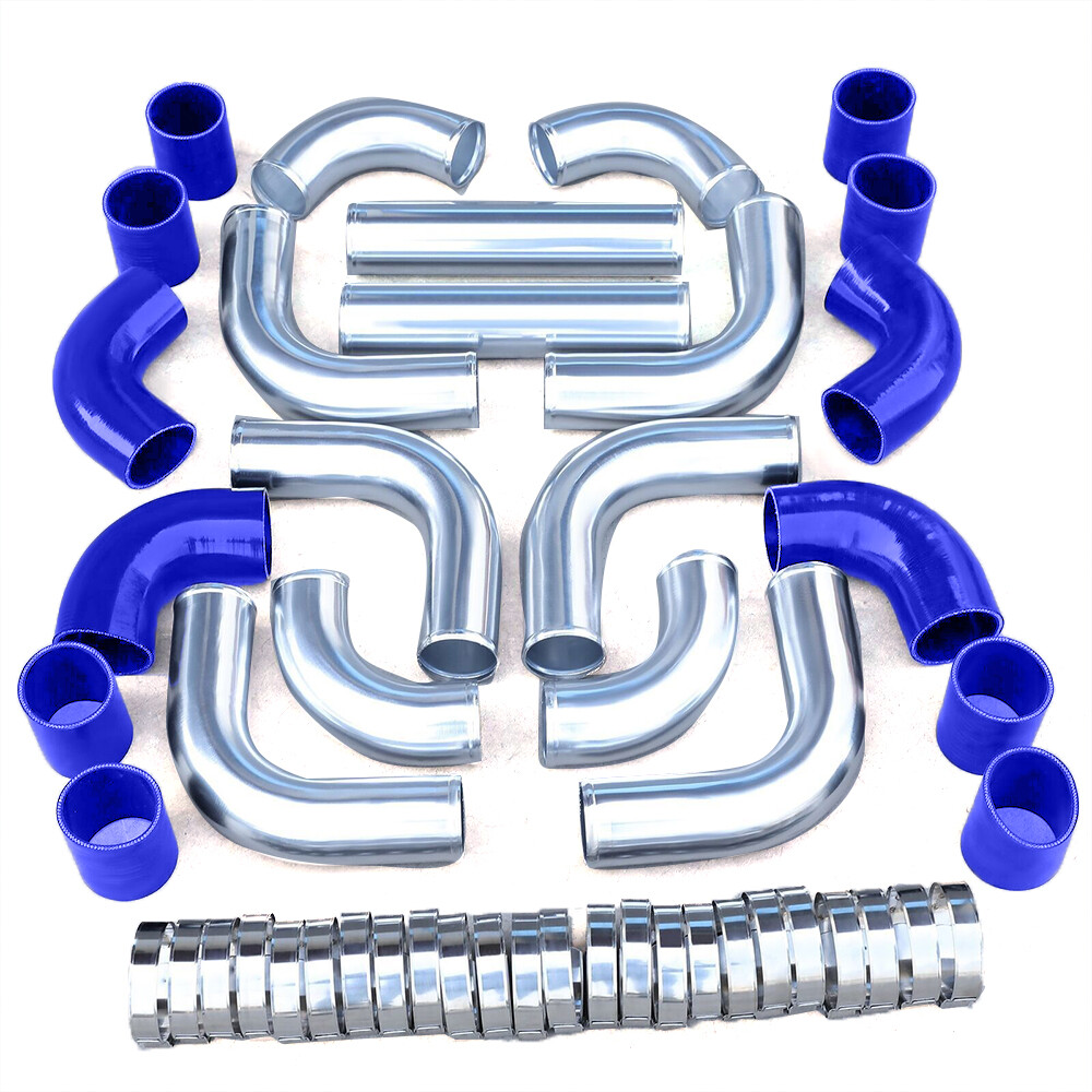 3" 12Pcs Turbo Aluminum Universal Intercooler Piping Kit + T-Bolt Clamps Blue Description: Higher Corrosion Resistance: The chrome plating effectively protects the base material from oxidation and corrosion, especially suitable for humid or chemically aggressive environments. Stronger Wear Resistance: The hardness of the chrome plating makes it more resistant to scratches and wear. Lustrous Appearance: Chrome surfaces are usually brighter and more reflective, offering a very striking and attractive look. Better Durability: Due to its resistance to corrosion and wear, chrome-plated items generally have a longer lifespan. Wide Applicability: Chrome plating can be applied to a variety of base materials, not limited to aluminum, offering greater material selection flexibility. Features: Made of High quality Aluminum 3" inch Piping Diameter Increase 65% Air Flow Comparing with other Standard Piping Triple reinforced silicone able to withstand high heat and pressure Will reduce vibration transfer due to hard impact shifting or engine movement Specifications: 100% Brand New Warranty :90 Day Free Reurn:30 Day Color: Chrome / Black as pics shown Surface finish: Oxidation Material: High quality T-6061 Lightweight Aluminum Piping 3" inch Piping Diameter Increase 65% Air Flow Comparing with other Standard Piping Triple reinforced silicone able to withstand high heat and pressure Will reduce vibration transfer due to hard impact shifting or engine movement Fitment: Universal Fitment,Upgrades for turbo car (modification require) Packing List: 2x Straight Aluminum Pipe 6x 90 Degree Mandrel Bent Long Aluminum Pipe 4x 90 Degree Mandrel Bent Short Aluminum Pipe 8x Straight Silicone Couplers 4x Elbow Silicone Couplers 24x Stainless Steel T Bolt Clamps(as shown in the picture).