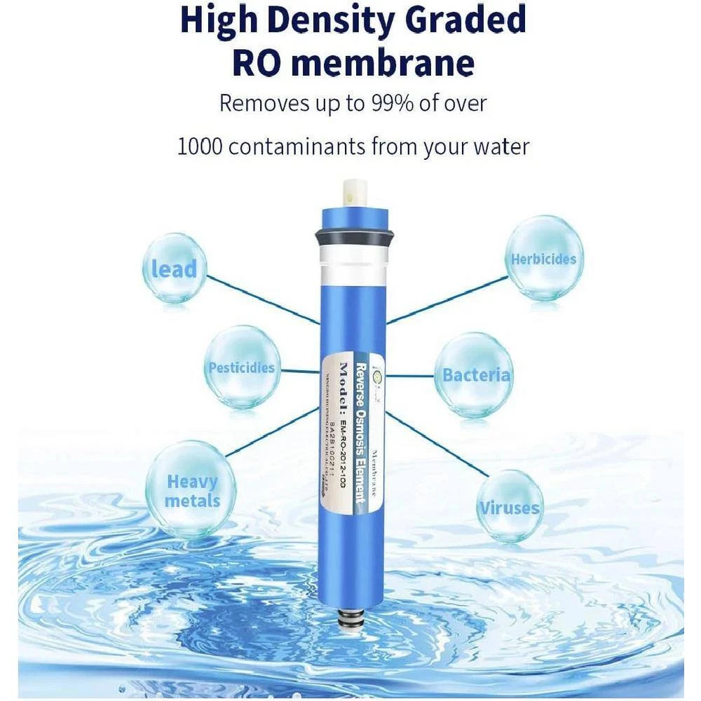 Revolutionize Your Water Filtration with the Reverse Osmosis Membrane 50GPD and RO Membrane Housing Kit Upgrade your water filtration system with our state-of-the-art Reverse Osmosis (RO) Membrane 50GPD and RO Membrane Housing Kit. Engineered for durability, efficiency and superior performance, this kit is a game-changer for residential, household and hospital water filtration systems. Say goodbye to impurities, contaminants and compromises-embrace a new era of clean and purified water. Upgrade to the Reverse Osmosis Membrane 50GPD and RO Membrane Housing Kit-where durability meets efficiency and water quality is never compromised. Invest in your health and well-being-order now for the purest water experience. Durable construction for lasting performanc... Fj-us-plc Your best online business partner 3, 4, 5, 6 and 7 Stage Reverse Osmosis Water Filtration System with 50 GPD Membrane with Quick Connector Check Valve Revolutionize Your Water Filtration with the Reverse Osmosis Membrane 50GPD and RO Membrane Housing Kit Upgrade your water filtration system with our state-of-the-art Reverse Osmosis (RO) Membrane 50GPD and RO Membrane Housing Kit. Engineered for durability, efficiency and superior performance, this kit is a game-changer for residential, household and hospital water filtration systems. Say goodbye to impurities, contaminants and compromises-embrace a new era of clean and purified water. Upgrade to the Reverse Osmosis Membrane 50GPD and RO Membrane Housing Kit-where durability meets efficiency and water quality is never compromised. Invest in your health and well-being-order now for the purest water experience. Durable construction for lasting performance: membrane housing: crafted with fiber reinforced polypropylene (FRP) and ABS, the membrane housing boasts exceptional pressure resistance and anti-explosion capabilities, its thicker construction ensures longevity and it is resistant to corrosive chemicals, making it ideal for various water environments Advanced RO membrane technology: high-quality filtration: our RO membrane uses cutting-edge membrane film technology and manufacturing processes to deliver consistent, high-quality filtration, with NSF/ANSI standard 58 certification, it guarantees a 97% total dissolved solids (TDS) removal rate, providing you with pure and safe drinking water Efficient contaminant removal: microscopic filtration: the RO membrane can filter out impurities as small as 0.0001 Mic, removing up to 97% of pollutants in water, it efficiently eliminates heavy metal particles, organic matter, rubber material, harmful minerals and more, ensuring the highest standard of water quality Water and energy saving design: 1:1 pure water to wastewater ratio: our RO membrane features a water-saving design, with a ratio of approximately 1:1 for pure water to wastewater, this not only saves water but also contributes to energy efficiency and environmental protection Complete kit for hassle-free installation: quick connector, check valve, water pipe, wrench: the kit includes essential components for a seamless installation process, the quick connector, check valve, water pipe and wrench ensure that you have everything you need to set up your advanced water filtration system Easy installation: follow the comprehensive installation guide provided with the kit for a hassle-free setup Experience superior filtration: enjoy the benefits of advanced RO membrane technology with a high TDS removal rate Effortless maintenance: with durable construction and efficient design, experience minimal maintenance for long-lasting performance Click here for more information on Electronic Recycling Programs Application Type:Residential|Application Type:Residential|Bacteria Reduction (%):97|Bacteria Reduction (%):97|Chlorine reduction (%):0|Chlorine reduction (%):0|Color:Blue|Color:Blue|Connection Type:Inline|Connection Type:Inline|Contaminants Filtered:Lead, Bacteria, Fluoride, Iron|Contaminants Filtered:Lead, Bacteria, Fluoride, Iron|Copper Reduction (%):0|Copper Reduction (%):0|Ease of Install:Easy Install|Ease of Install:Easy Install|Features:No additional features|Features:No additional features|Filtration Method:Activated Alumina|Filtration Method:Activated Alumina|Fitting style:Threaded|Fitting style:Threaded|Fluoride Reduction (%):97|Fluoride Reduction (%):97|House Hold Size:Unspecified|House Hold Size:Unspecified|Includes:Installation kit|Includes:Installation kit|Indoor/Outdoor:Indoor|Indoor/Outdoor:Indoor|Iron Reduction (%):97|Iron Reduction (%):97|Lead reduction (%):97|Lead reduction (%):97|Maximum feed water pressure (psi):0|Maximum feed water pressure (psi):0|Maximum feed water temperature (F):0|Maximum feed water temperature (F):0|Maximum filtered water flow (gallons per min.):0|Maximum filtered water flow (gallons per min.):0|Minimum feed water pressure (psi):0|Minimum feed water pressure (psi):0|Minimum feed water temperature (F):0|Minimum feed water temperature (F):0|Number of Stages:7 Stage|Number of Stages:7 Stage|Number of filters included:0|Number of filters included:0|Pack Size:0|Pack Size:0|Product Weight (lb.):2.01 lb|Product Weight (lb.):2.01 lb|Reduces:Bacteria,Fluoride,Iron,Lead|Reduces:Bacteria,Fluoride,Iron,Lead|Returnable:90-Day|Returnable:90-Day|Water Treatment Type:Reverse Osmosis Systems|Water Treatment Type:Reverse Osmosis Systems|Certifications and Listings:ANSI Certified,NSF Certified|Certifications and Listings:ANSI Certified,NSF Certified|Manufacturer Warranty:1 month|Manufacturer Warranty:1 month|Fitting size (in.):3.8 in|Fitting size (in.):3.8 in|Product Depth (in.):5.52 in|Product Depth (in.):5.52 in|Product Height (in.):3.94 in|Product Height (in.):3.94 in|Product Width (in.):13.39 in|Product Width (in.):13.39 in Item Specifics Brand Unbranded Model Reverse Osmosis Systems Compatible Model Reverse Osmosis Systems Item Length 5.52 in Item Width 13.39 in Item Height 3.94 in Weight 2.01 lb UPC 756158727008 MPN HSSA11-2FS006 Payment If you do not have