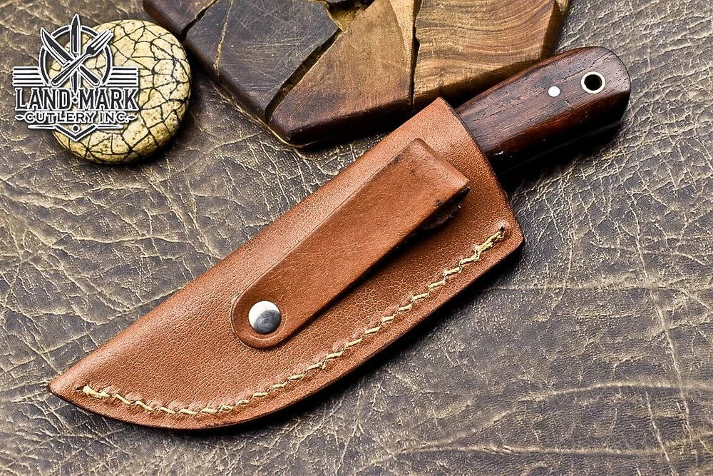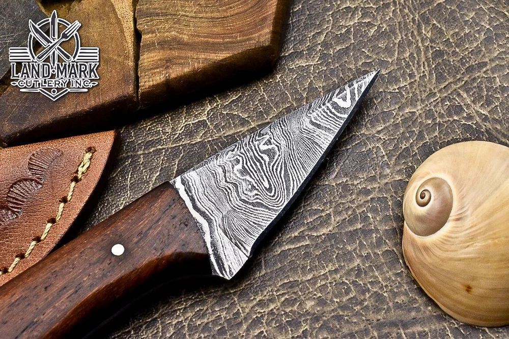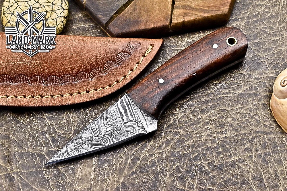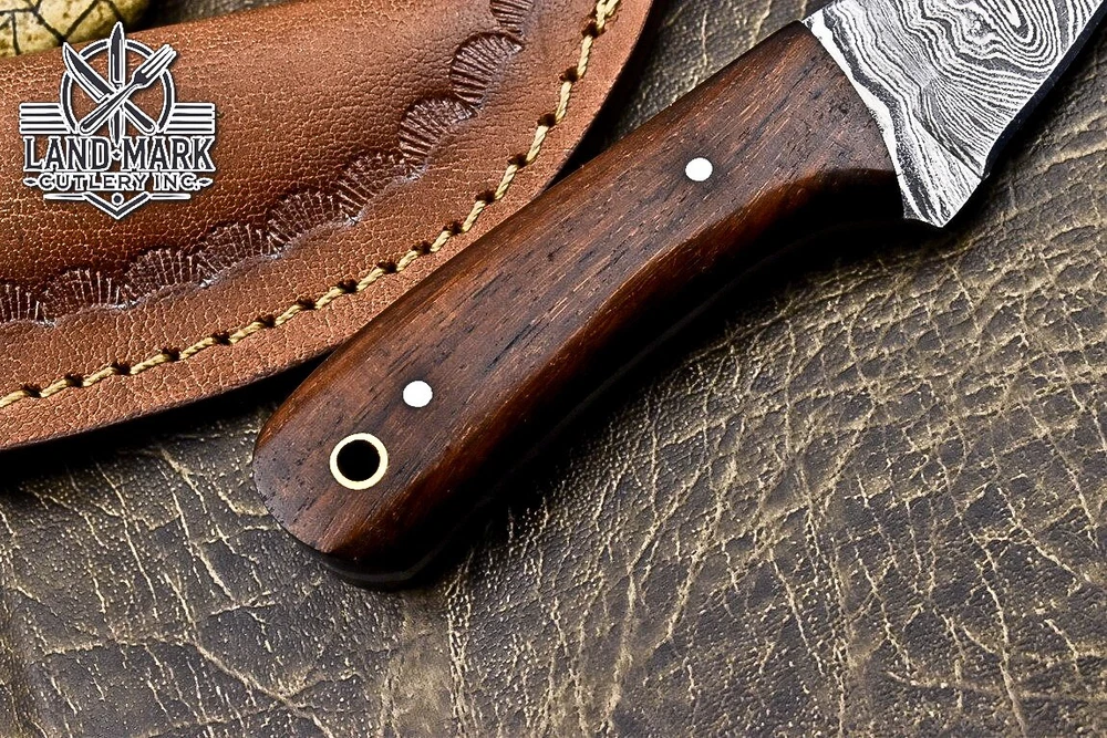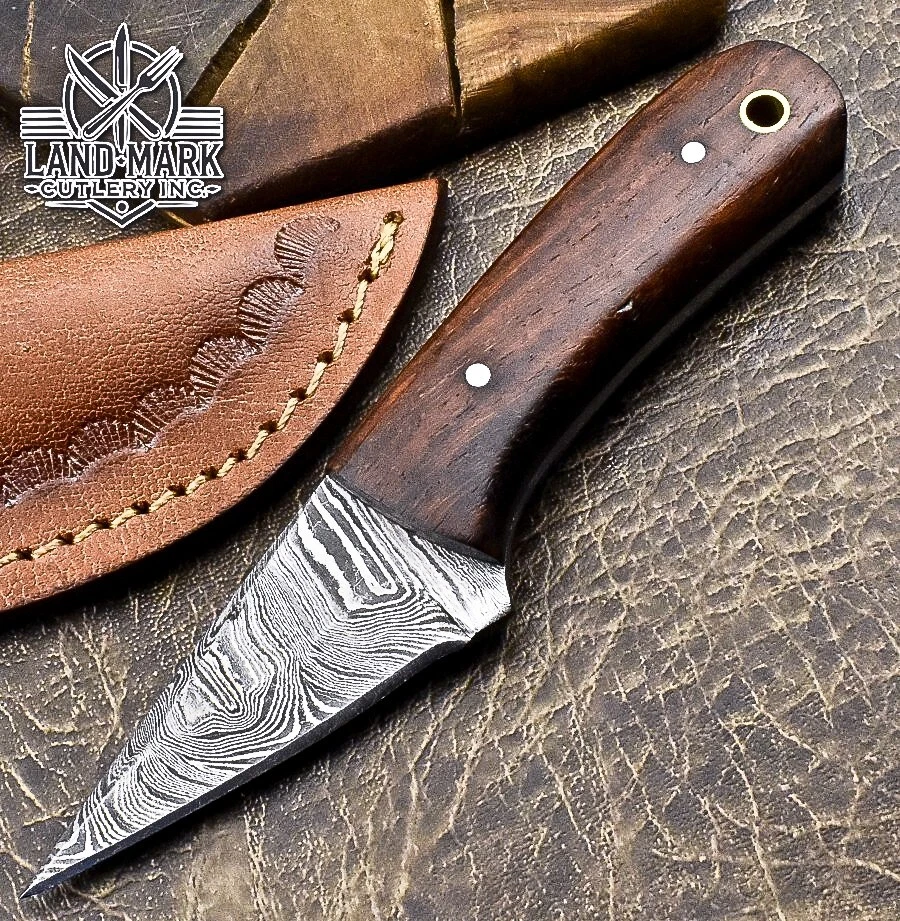 Custom Hand Made DAMASCUS STEEL HUNTING KNIFE WITH ROSE WOOD HANDLE We offer a shipping discount for More then one purchased . And discount will be apply on combine invoice, Discount will not apply on separate payment. ITEM DETAILS OVER ALL LENGTH 3.0 inches long (Approx) HANDLE LENGTH 1.5 inches long (Approx) BLADE LENGTH 1.5 inches long (Approx) BLADE HARDNESS 58-60 HRC Which Holds The Sharp Edge For Long Time. HANDLE ROSE WOOD COVER LEATHER SHEATH This Awesome custom made KNIFE has a nice hand forged with the combination of 4340 & 1080 steel. HOW OUR DAMASCUS IS MADE: All our Damascus is real and not just an acid etch. Damascus is a mixture of 1080HC and 4340 nickel carbon. You heat them up together and then fold the bar over and over to get the desired layers, ours are 396 layers. Then you burn the blade in acid, and it turns the nickel satin color and the high carbon turns blackish gray. This is how the layers are exposed to show the layers of the new steel created coined "Damascus". All Damascus is acid etched to show the layers. If you high polish the metal it will be shinny satin like all steels. Only after you burn the sides of the blade with acid do you see the layers of the two steels. Makes sense? After we make our knives we high polish the handles and put an edge on the blade. The high polishing buffs off the acid burned layer of the handle, and the blade edge is sharpened and the acid burned edge becomes satin. You can re-burn the tang of the blade near the handles and the edge of the blade and it will show the layers once more. All our knives are hand made, durable and unique ***** YOU WILL RECEIVED THE SAME KNIFE Qality Standards Our Damascus blades are made from high quality non-stainless steels which rival or exceed any Damascus blade made from the 10 series with 4340. Our Damascus combination has taken years to perfect and has been tested under a variety of application which will offer professional performance in categories of toughness, strength (lateral stress) and edge honing and holding ability. In a 5 spot Rockwell test our blades will average near or close to 58 which offers a perfect balances between its toughness and strength.Our blades due to carbon content need to be regularly treated with wax and/or 3 in 1 oil to maintain its superior quality. Questions if you have any question feel free to send us message we aim to answer all questions within 24 hours Feedback If you are not satisfied with our service please contact us before leaving any negative or natural feedback. We will resolve all issues as quickly as possible. Disclaimer We are not responsible for any injuries associated with the use of our tools. Our products are intended for legal use only by responsible buyers. Therefore, we will not sell our products to anyone under the age of 18. Before bidding please check your country laws as some countries Custom don't allow this. If your purchase is held by Custom Authorities in your country/State we will not be responsible for that and no refund will be issued Shipping We offer a 20% shipping discount for More then one purchased . And discount will be apply on combine invoice, Discount will not apply on separate payment We ship within 24 hours after receiving complete payment but this can be delayed due to week ends or Governments and Religious Festivals . . This is beyond our control and we apologize for this inconvenience. Precautions Our Tools are very sharp so open and use them very carefully We are not responsible for any injuries associated with the use of our tools Tips to Care knife 1. NEVER STORE YOUR KNIFE FOR LONG TIME IN LEATHER SHEATH. 2. LEATHER CAN ABSORB WATER, WHICH WILL RUST THE KNIFE. 3. ALWAYS CLEAN THE BLADE AFTER USING WITH OIL OR WAX