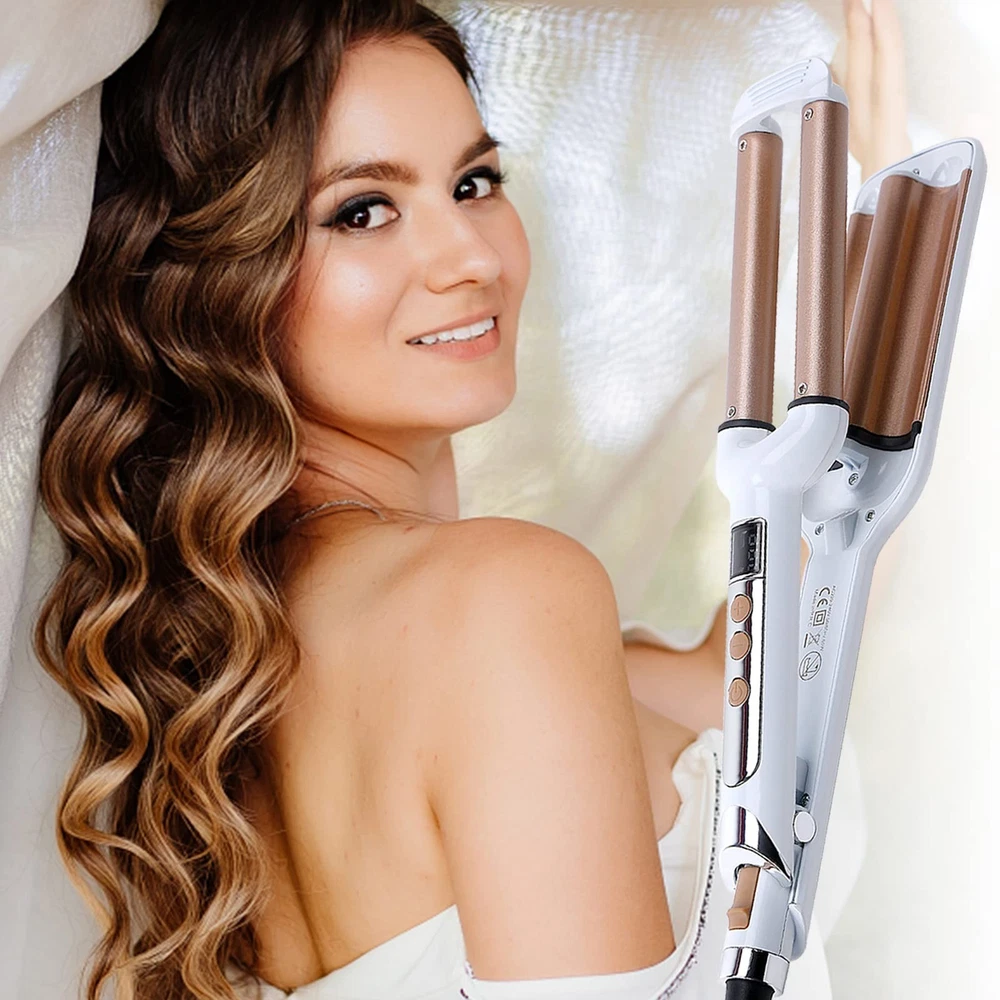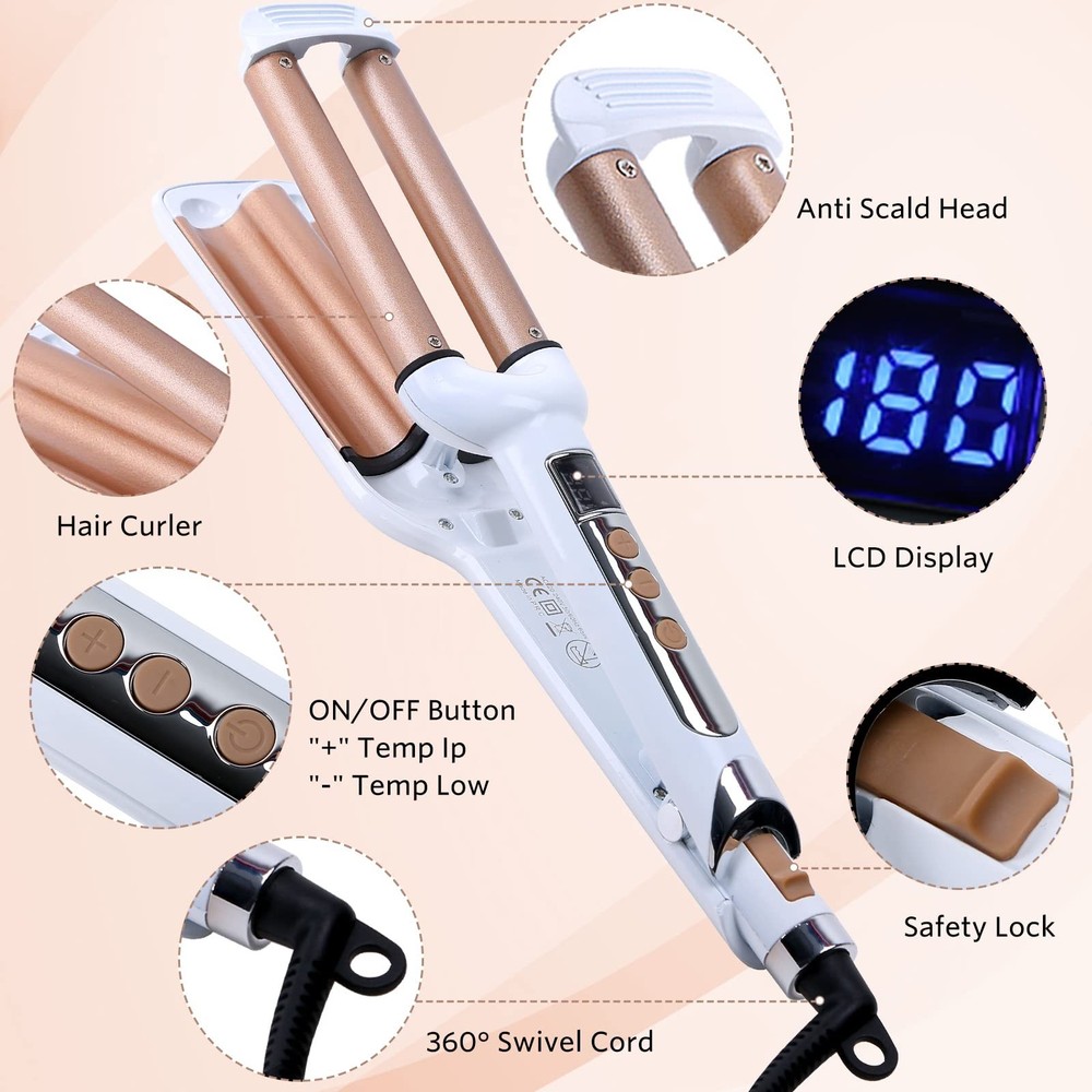 3 Barrel Hair Crimper Iron Professional Curling Wand 0.6 Inch Ceramic Fast Heating Crimping Iron for Deep Waves Valentines Gifts Product Details Product Benefits: Curling Shape: Barrel Brand: SOMOYA Hair Type: Curly Material: Ceramic Product Dimensions : 4 x 4 x 4 inches; 9.17 ounces Date First Available : May 21, 2024 Manufacturer : SOMOYA Country of Origin : China Best Sellers Rank: #381,061 in Beauty & Personal Care (See Top 100 in Beauty & Personal Care) #706 in Hair Curling Wands #706 in Hair Curling Wands Customer Reviews: 4.1 4.1 out of 5 stars 35 ratings FAST HEATING:The temperature from 100C(212F) up to 230C(446F),it gets hot very quickly, and takes about 60 seconds for the temperature to rise to 230C. Perfect for shaping/curling professional hair wave, negative ion for hair care. Let you become a professional hairstylist at anytime and anywhere. ERGONOMIC DESIGN & EASY TO USE: Designed with anti skid matte handle and anti scald top, heat insulation black front part, use more safer. With stand for placing, avoid hair curler contacting with the desktop directly, it is harmless to your hair when heating EASY TO USE & CURL: 360 rotatable power cord stretches up to 6.56ft/2.0 m - 40% longer than similar hair crimper iron; Built-in stainless steel support lets you easily lay the 3 barrel crimper iron to cool down FOR ALL HAIR TYPES: 12 inch/31cm in length ,1.9 inch/4.9cm in width ,The hair curler is loose wave that fits for Dating, Party, Wedding. Always show your different and unique hair style according to different occasions with this ceramic curling iron,makes you get a lot of compliments from others.
