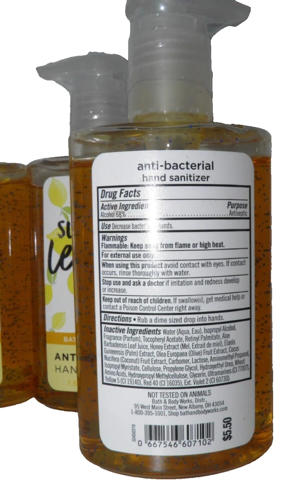 SUNSHINE & LEMONS hand gel from Bath & Body Works provides effective sanitization with a fresh scent. Enriched with essential oils, it leaves hands feeling clean and refreshed. • Pump dispenser for easy use • Contains essential oils • 7.6 FL OZ/225ml size • Anti-bacterial formula Mailing Address - We will ONLY ship to the address on file with eBay. Before making a purchase, please ensure that your address is correct. We may otherwise cancel the sale. Handling Time - Our handling time is set to THREE BUSINESS DAYS. We ship packages Monday - Friday, except on holidays. This listing is NOT sponsored by, affiliated with, or representative of the mentioned brand(s), trade name(s), or trademark(s) and does not claim any ownership of such. All trademarks or brands mentioned in this listing are registered trademarks of their original owners who reserve all their rights and ownership. The use or mention of any trade name, product name, or trademark is necessary for identification and is for reference purposes only.