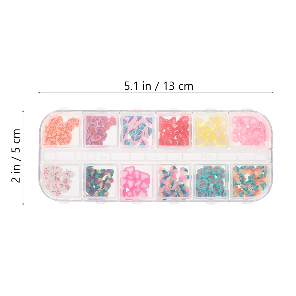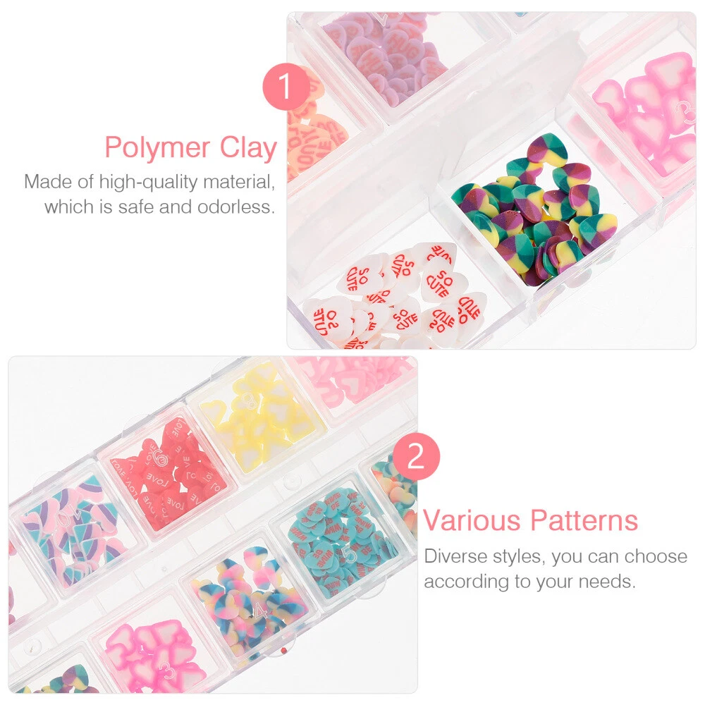 Related Hot Sale Universal Paper Towel Dispenser Key Replacement Toilet Keys Hand Soap Tissue US $10.40 Wallets for Men Jeans Skull Hip Hop Pants Chain Keychain Men's The US $14.18 Natural Handwoven Rattan Bird Nest for Pets US $9.25 2 Sets Patio Umbrella Hole Caps Thicker Table Shade with Hat US $10.68 Tape Measure Body Keychain Purses Mini Backpack US $8.75 Detachable Sunglasses Holder Display Stand for Home/Office US $9.85 | Baby | | Books & Magazines | | Business & Industrial | | Cameras & Photo | | Clothing, Shoes & Accessories | | Collectibles | | Computers/Tablets & Networking | | Crafts | | Home & Garden | | Jewelry & Watches | | Cell Phones & Accessories | | Consumer Electronics | | Sporting Goods | | Toys & Hobbies | | Video Games & Consoles | | Health & Beauty | Product Description Collecting listings has surprises Description You can give it as a gift for kids, friends, lovers, girlfriends or family, show them your love and concern, give them a littler surprise, provide them more fun. . Great Valentine's day gift. Suitable for all girls and women who want to create beautiful and eye-catching nails on Valentine Features -Color: Assorted Colors -Material: Polymer clay -Size: 13.00X5.00X1.00cm/5.11X1.97X0.39 in. - Enough quantity for you to use, or share with your friends, easily meet your different needs. - Comes in different patterns designs, provide you with more choice for DIY nail art on Valentine. - You can get your own charming nail art at home. Perfect for home DIY and nail salon shop. - Charming and eye-catching nail art supplies, highlight your nail, make you the center of public attention. - These Valentine nail clay charms look lovely and romantic, which will go well with your different costumes. stickers Package includes 3 x boxes of nail decorations Contact US 1.If you have some inquires or problems, Please feel free to contact us. 2.We will reply your email within 1 business day (except weekend). 3.When delivery is delayed or items are damaged during delivery, please email us first before you leave feedback. Thank you. People Who Viewed This Item Also Viewed 9 V Ibanez Bass Pickups Battery Box Guitar Long Service Life Case US $8.58 Manual Hair Remover Facial Tongs Removal Device Face Epilator US $8.38 Model Engine Kit Strandbeest Wind-powered Toy Hand-powered Cool US $19.25 8 Pcs Anti-lost Silicone Rings Key Lanyard Holder Pen for Lanyards with Miss US $7.59 2pcs Aquarium Lamp Bracket Aquarium Lamp Holder Aquarium Light Riser US $10.16 Blinds Pull Beads Beaded Chain Cord Roller Ball Chains Shade Parts US $10.43 3 Pcs Helmet Liner Insert Safety Bump Cap Baseball Caps US $22.41 6 Pairs Ear Dangler Creative Earrings Jewelry Fruit Bubble Tea Drop Miss US $9.11 Stainless Steel Electric Pressure Cooker Exhaust Cookers Accessories US $13.79 Detachable Sunglasses Holder Display Stand for Home/Office US $9.85 150 Sets Metal Butterfly Hat Brooch Pin Backings Clutch Tie Tacks US $16.15 Multifunction Steaming Cooling Rack Steamer Round Stand Canner Pot for Cooking US $14.39 Ring Sizer Adjuster for Loose Rings Heat Shrink Tube Shrinkable US $9.94 10 Pcs Easy Use Cleaning Tools Stainless Steel Tube Washing Brushes US $8.29 9 Pcs Basketball Pump and Needle Air for Inflatable Beach Balls US $9.21 Tiny Screws for Glasses Eyeglasses Replacement Parts Screwdriver Repair US $8.35 2 Pcs LED Adjustable Light for Laptop USB Computer Keyboard Lamp Gift US $14.75 Football Net Polypropylene Soccer Portable Practice Equipment Sports US $15.57 Portable Spring Scale Digital Balance Vegetable Small Hanging Handheld Luggage US $9.28 2 Pcs Window Blind Stick Venetian Rod Hook for Blinds Wands US $7.31 100 Pcs Furniture Nail Mum Thumbtacks Vintage Brass Upholstery Mother Round US $8.57 Garbage Disposal Sink Kitchen Strainer Basket US $7.87 Tabletop Easel Tea Cakes Display Rack Chinese Plate Holder Stand US $10.43 Tape Measure Body Keychain Purses Mini Backpack US $8.75 On Feb 4, 2025 at 04:28:23 PST, seller added the following information:
