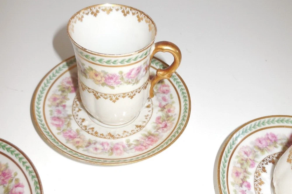 Main Color:Multi-ColorOrigin:LimogesColor:MulticolorPattern:IvyYear Manufactured:1900Original/Licensed Reproduction:OriginalTime Period Manufactured:1900-1919Country/Region of Manufacture:FrancePrimary Material:Ceramic & PorcelainObject Type:Demitasse CUPS & SAUCERSBrand:HavilandAge:1900Vintage:YesOriginal/Reproduction:Antique OriginalType:Demitasse CUPS & SAUCERSNumber of Items in Set:Six-PieceSet Includes:Demitasse CUPS & SAUCERSCountry/Region of Origin:FranceSeller Notes:“A HAIR LINE IN A CUP AND A SAUCER. SOME CHIPS ON A BOTTOM OF A SAUCER AND A CUP. SOME GOLD LOSS”Material:PorcelainMaker:LIMOGES