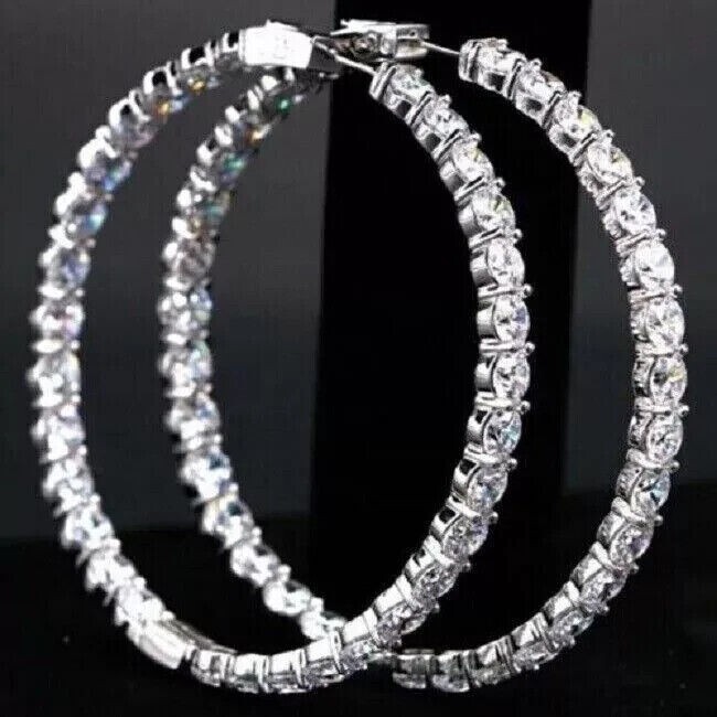 3 Carat Round Cut Simulated Diamond Hoop In Out Earrings 14k White Gold Plated