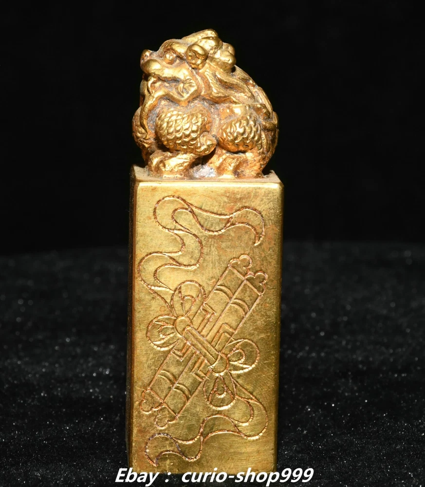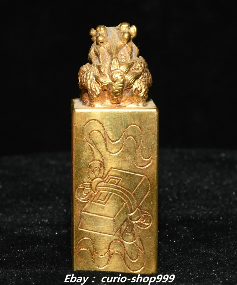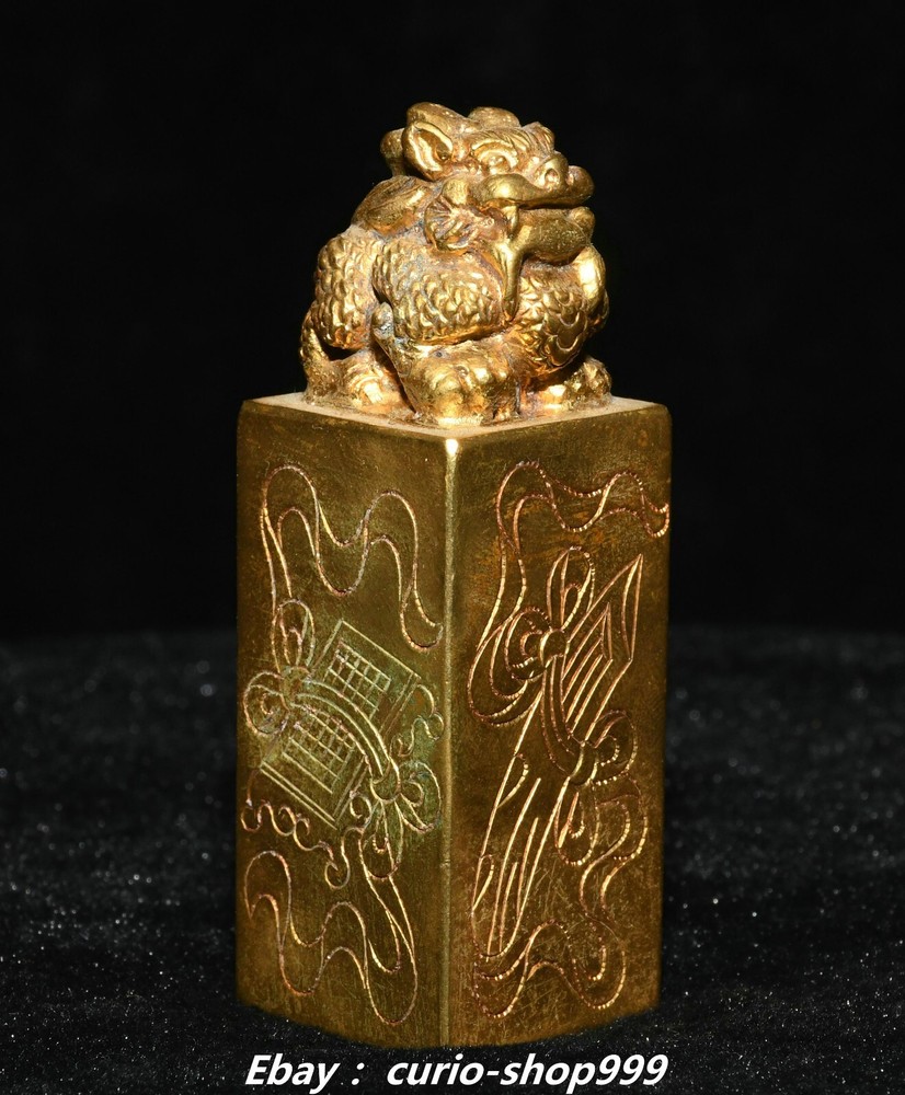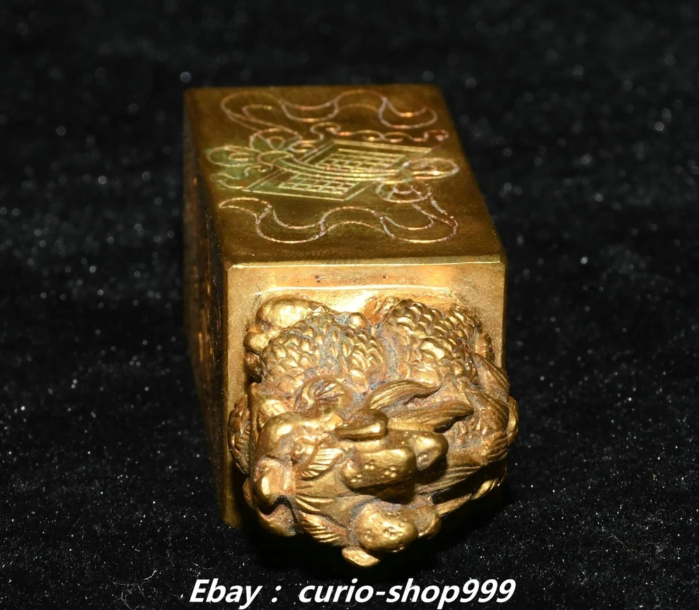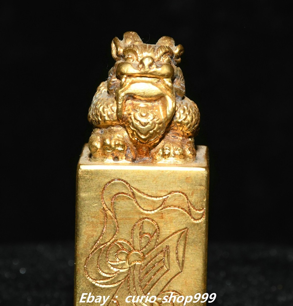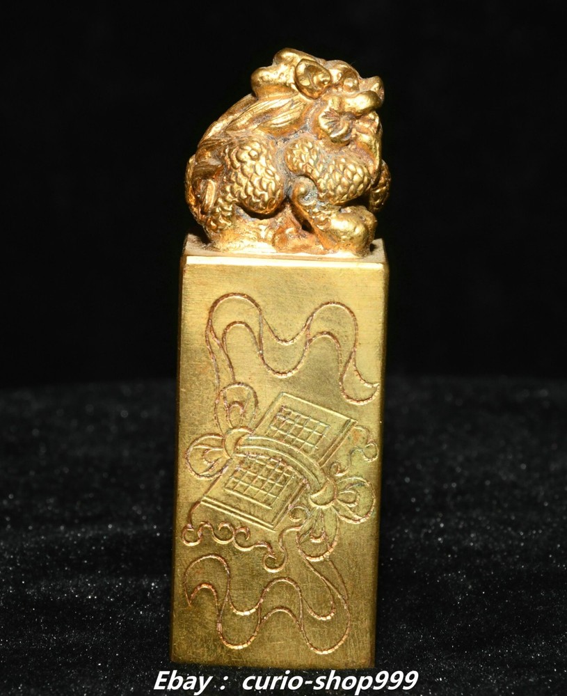 **** Welcome to our antique & Collectable Shop : Porcelain**** Description: Here is 3"China Dynasty Copper Gold Dragon Loong Beast Animal Imperial Seal Stamp Signet . It is in good condition, and was created by skilled craftsmen in traditional style with fine handcrafts.This is a great piece of valuable collection, a valuable personal alter or a very good present. the handwork is very fine with incredible detailling. Don't miss out this chance to get it.Wish you good luck! . Material : Copper Gold Size : Heigh t 2.7 Long 1.0 B readth 1.0 (inch) Condition Perfect Condition. Perfect, with no scratches, flaws or repairs. Weight: 0.8 KG----included the weight of packing materials Shipping cost to all over the world countries in Free Honored Customers: We are selling the collectibles products and crafts in Beijing ,China since 1993 and collected them all over the world all the time . In our shop the bronze sculpture, animal, vase, urn, flowerpot,Incense Burner.Table chair sets. Militaria goods. buddha statues, Bodhisattva Statues, Buddhist Ritual Items etc is our speciality .Many of the items we sell come from our own personal collection and have been in our family for a very long time .My great-grandfather was the first in this family to start collecting art & antiques when he still lived in San Xi and Tibet around 1922 ,some of the paintings he once collected can now be seen in museums around the globe.We won't make money from t he shipping cost, if you dislike the item when you receive it,we can refund all of your money to you within thirty days. Please confidence for bidding . We recommend the combine shipping and offer you an big price discount if you order more items together ! 2024.10.3 四 号