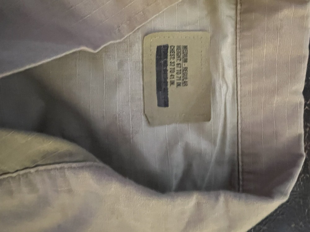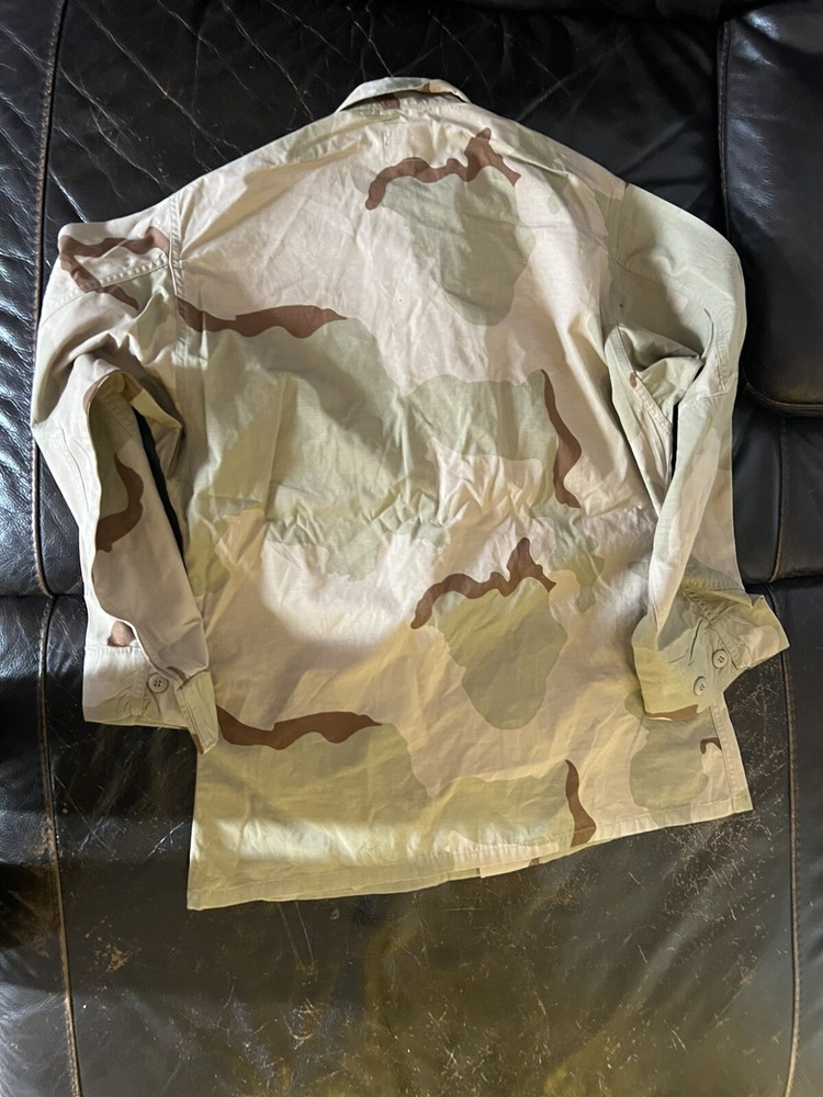 This 3-color desert camouflage BDU shirt is a genuine issue item from the United States Air Force. It features the American Apparel brand and is an original piece, not a reproduction. The shirt is made of durable Nyco/Twill material. The shirt is a USAF issue shirt comes with USAF and USCENTAF patches can remove them upon request