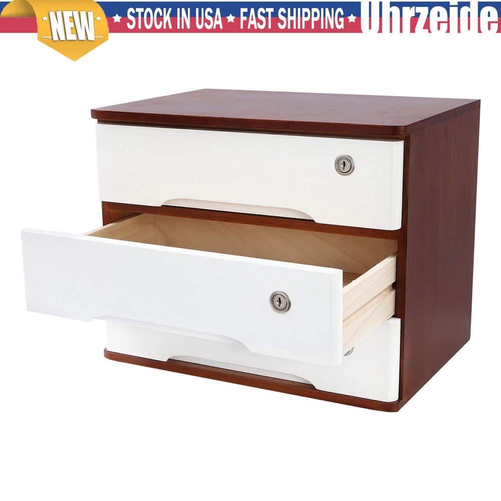 Specification Color: Walnut + White Shape: Rectangle Style: Modern Material: Tung Wood Process: Spray Paint Assembly Required: No Number of Tiers: 3 Number of Locks: 3 Number of Keys: 6 Max. Load Capacity: About 30kg/ 66.14 lbs Gross Weight: 5kg/ 11.02 lbs Package Size: 45*33*36 cm/ 17.72*12.99*14.17 in Product Size: 40*28*31 cm/ 15.75*11.02*12.2 in Package Included 1* 3-Tier Storage Cabinet 6* Keys 4* Anti-slip Pads Notes Please allow the slight color difference caused by the shooting light and the 1-3 cm error due to manual measurement, and make sure you do not mind before ordering. 3 Drawer Desktop File Cabinet Storage Filing Cabinet Lockable Office File Sorter Description Do you feel annoyed by too many items on your desktop that are cluttered and unorganized? Our 3-tier storage cabinet can help you solve this problem. This product is made of high-quality material, which ensures a long service life. The 3 drawers are convenient for you to organize different daily items, and the locking design effective ly protects your privacy. It can effectively help you reduce the pressure on your countertop, which is an ideal choice for you. Key Features Good Material: This product is made of high-quality tung wood with a spray painting process, which is hard, strong, anti-corrosion , not easy to deform, and has a long service life. Categorized Storage: The product has 3 drawers, so you can categorize and store your items in different drawers to give your desktop a neat look. In addition, the top can also be used to hold items, allowing you to maximize the use of your space. Protect Your Privacy: This product features the locking design that locks the drawer and can only be opened with the included key to protect your property. Strong Load-bearing Capacity: High-quality material and stable construction give the product a weight capacity of about 66.14 lbs , so you can store items on it with confidence. Save Space: This product is small in size ( 15.75*11.02*12.2 in) , fully utilizing vertical space, thereby reducing the burden on the countertop. Ready to Use: This product does not require assembly, and you can start using it once you receive it, saving the tedious installation process and making it more convenient. Effortless Cleaning: Thanks to the smooth surface and simple construction, you can easily wipe off the dirt on it with a soft cloth. Thoughtful Gift: This is an ideal gift for colleagues, friends, and family to help them organize their belongings and keep their desks tidy. Good Customer Service: We stand behind all our guests and look forward to assisting you with your purchase. It is our pleasure to answer your confusion and questions. The end of the story between us is not "we sell and you buy". Details Comfortable Handles: Each drawer has an ergonomic handle that is not only comfortable but also easy for you to pull the drawer. Smooth Edge: The rounded and smooth edges not only add to the aesthetics of the product but also improve the safety of use. Anti-slip Pad: It can keep the product stable and less likely to slip off while you use it. Application This product can be used in an office, study, bedroom, dresser, kitchen, etc. It is suitable for organizing documents, files, pens, notebooks, handy stickers, remote controls, staplers, cosmetics, greeting cards, tickets, business cards, stationery, jewelry, hair accessories, and so on. Specification Color: Walnut + White Shape: Rectangle Style: Modern Material: Tung Wood Process: Spray Paint Assembly Required: No Number of Tiers: 3 Number of Locks: 3 Number of Keys: 6 Max. Load Capacity: About 30kg/ 66.14 lbs Gross Weight: 5kg/ 11.02 lbs Package Size: 45*33*36 cm/ 17.72*12.99*14.17 in Product Size: 40*28*31 cm/ 15.75*11.02*12.2 in Package Included 1* 3-Tier Storage Cabinet 6* Keys 4* Anti-slip Pads Notes Please allow the slight color difference caused by the shooting light and the 1-3 cm error due to manual measurement, and make sure you do not mind before ordering. Payment Delivery details Terms of sales About us Contact us Payment We accept ebay payment 。 Fees such as import duties, taxes are not included in the item price or shipping costs. These charges are the buyer's responsibility. Delivery details Shipping: 2-9 working days to: USA Terms of sales We maintain high standards of excellence and strive for hundred percent customer satisfaction. Feedback is very important to us. We hope that you contact us immediately before you give neutral or negative feedback, so that we can address your concerns. It is impossible to address issues if we do not know about them! About us Your satis faction is our ultimate goal. We work hard to earn your trust and future business. Our certified technicians have tested each item before shipping. The unit comes with 1 year limited warranty on all manufacturing defects. a) If you receive a defective item, you may return it or ask for a discount. Please contact us within 14 days after you receive the package. b) What you returned must be intact and in its original packaging as re? u. Customer is responsible for shipping costs of the returned item. c) We will cover the cost of shipping back t with the shipping rate indicated in the registration page. We will send you a new unit or refund the full payment you paid. Thank you. Contact us Business Hour Business Hour: Monday To Friday: 8:30 AM to 5:00 PM (Beijing China time) Due to time zones, our reply to your questions may not be immediately. But within above working time, we will reply your email within 24 hours. If it's non-workdays, please kindly be patient and wait till Monday. Please contact us with ebay message. Please feel free to contact us if you have any questions. Monday To Friday: 8:30 AM to 5:00 PM (Beijing China time) Due to time zones, our reply to your questions may not be immediately. But within above working time, we will reply your email within 24 hours. If it's non-workdays, please kindly be patient and wait till Monday. Please contac