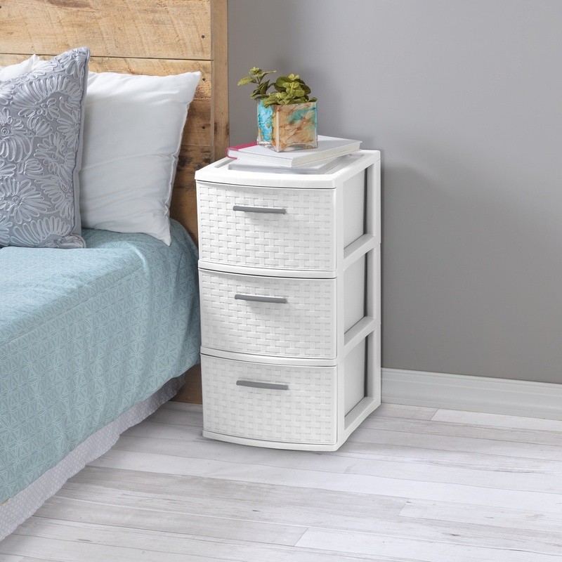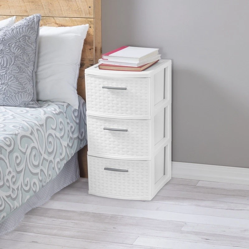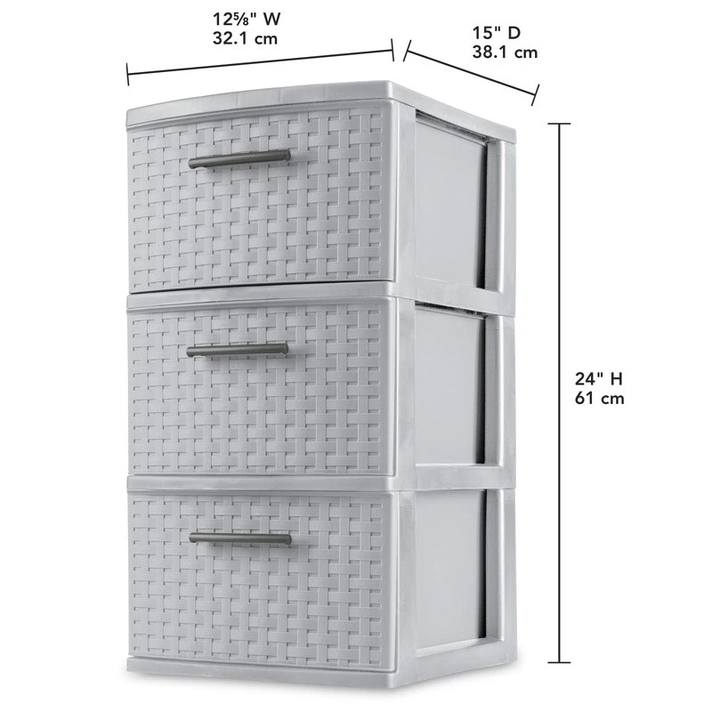 Wet Dog Food Chopped Ground Dinner Beef Canned Adult Nutrition 4 Pack 22oz Cans 15.08 USD Free shipping Professional Handheld Seed Spreader Bag Seeder 25lbs Capacity W/ Waterproof Bag 52.17 USD Free shipping 4-Person Clip & Camping Dome Tent Outdoor Portable Hiking Lightweight HOT 49.0 USD Free shipping Durable 5.70-8 8-Ply Trailer Tire Non-Radial Highway Trailer Replacement Tire US 48.43 USD Free shipping Large Jerky Gun W/ Stainless Steel Trigger 3 Attachments & 5 Spice Packets New 18.75 USD Free shipping Acrylic Lying Deer Christmas Tabletop Decor Holiday Centerpiece Elegant Design 24.78 USD Free shipping Sonic Bounce Ball High Bounce Outdoor Game Toy Kids Teens Party Favors New 11.74 USD Free shipping Ceramic Santa Boots Holiday Decoration Whimsical Charm Tabletop Display New 20.82 USD Free shipping Trailer Tail Light Guard Box LED Brake Turn Light Waterproof Heavy Duty Steel US 49.49 USD Free shipping Gingerbread Cake Cookie Mix Kosher Baking Mix Quick Easy Family Treats New 19.6 USD Free shipping 9-Shelf Adjustable Media Storage Rack DVD CD Blu-ray Game Cases Organizer New 49.06 USD Free shipping Quick Rolled Oats 10lb Pail 90 Servings Shelf Stable Emergency Survival Food New 25.73 USD Free shipping Improve your storage options with the 3-Drawer Weave Tower. Designed with three opaque drawers, it helps control clutter while providing access to frequently used items. This drawer tower also features easy pull handles and a drawer stop to prevent drawers from being accidentally removed. The stylish weave pattern of the drawer tower provides a furniture-like look in easy-to-clean, durable plastic. Try placing in your den, family room, dorm room, office, bedroom and more. You can even use it as a makeshift nightstand. This 3 Drawer Weave Tower comes in white, allowing it to blend in with different types of decor. 3 Drawer Weave Tower, White: Overall assembled size: 15" x 12 5/8" x 24" Stylish weave pattern provides a furniture-like look in easy to clean, durable plastic Versatile decorative storage solution is ideal for use throughout the home Opaque drawers keep contents concealed and clutter controlled Keep frequently used items contained and organized where they are most often used Sterlite plastic 3 drawer tower has easy pull handles that allow drawers to fully open and close easily Drawer stops prevent drawers from being accidentally removed Weight: 16 lbs Comes in case of 2 or single You may also like Kitchen Trash Can Touch Top 13 Gallon Garbage Bin Space Saving Odor Control New 23.66 USD Free shipping Elegant Vintage Floral Ceramic Tea Cup & Saucer Set 6 Pieces Perfect Gift New 40.27 USD Free shipping Red Tinsel Christmas Garland Polka Dot Indoor Decor Flame Retardant 50ft New 23.73 USD Free shipping 7pc Comforter Set Soft Microfiber Bedding Includes Sheets Pillowcases Shams New 85.78 USD Free shipping Floral Quilt Set Full Queen Luxury Bedding W/ Decorative Pillows & Shams New 110.48 USD Free shipping Murder Mystery Party Game Pasta Passion Pistols Family Fun 8 Players 16 New 19.97 USD Free shipping Automatic Gravity Pet Feeder Cats Dogs Easy Refill Transparent Container New 24.84 USD Free shipping Lightweight Unscented Cat Litter 21 Day Odor Control Clumping 99.9 Dust Free New 31.21 USD Free shipping Faux Rabbit Fur Comforter Set Double-Sided Tie-Dye Bubble Design Plush Bedding 91.5 USD Free shipping Aluminum Half Sheet W/ Lid Non-Stick Bakeware Even Cooking & Transport New 28.62 USD Free shipping PWC Bungee Dock Lines Watercraft Secure Marine Grade Hook Eliminate Tugging New 23.21 USD Free shipping XL Queen Quilt Set Reversible Hypoallergenic Lightweight 3 Piece Bedding New 43.27 USD Free shipping