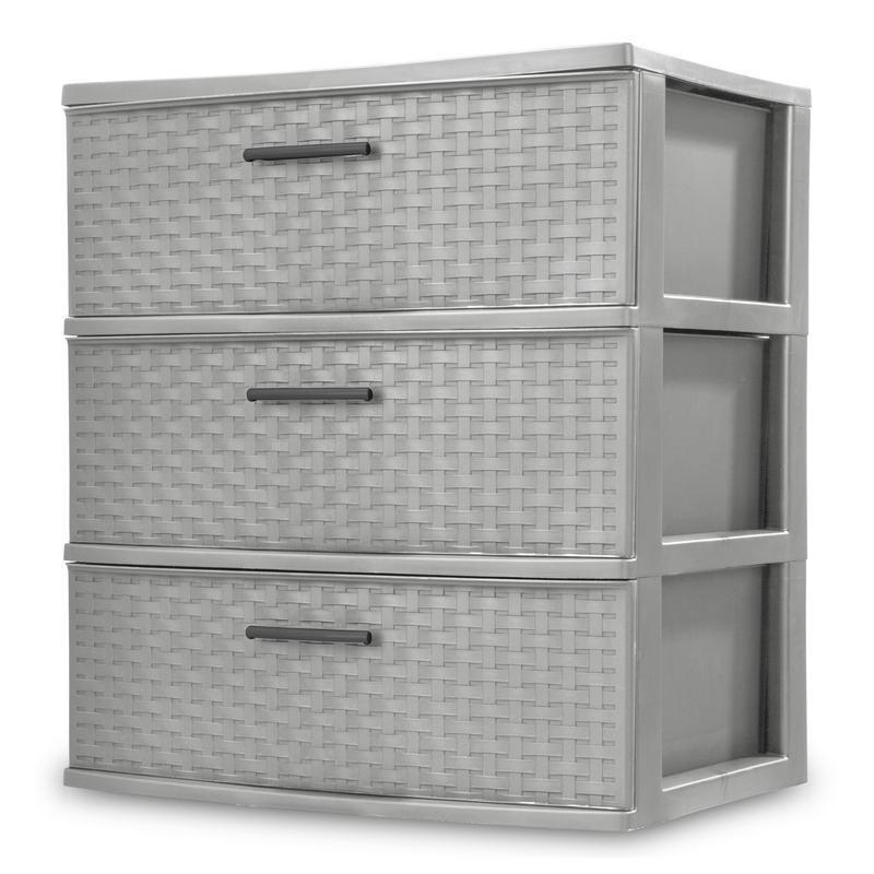 3 Drawer Storage Tower Opaque Weave Design Organizing Solution Durable Plastic