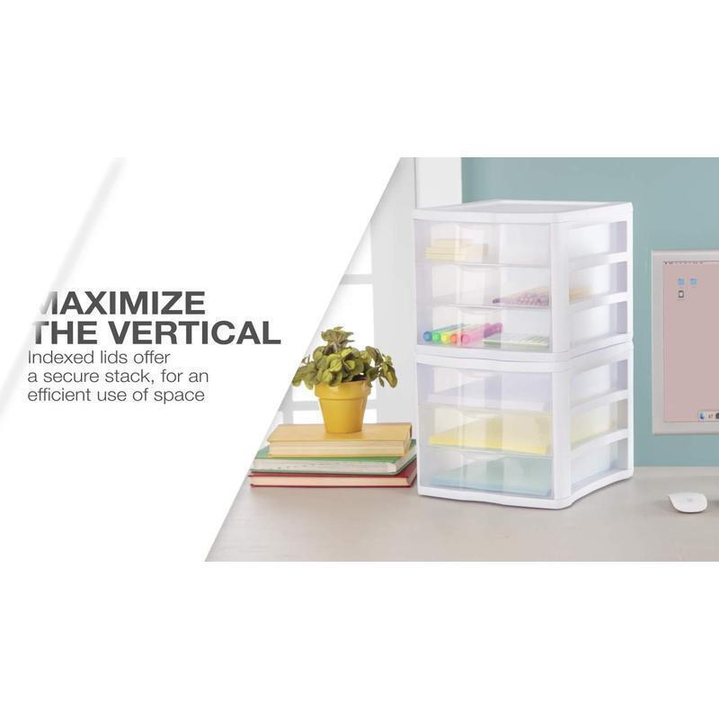 You may also like 6 in Non-Stick Fluted Tube Pan Baking Mold Easy Release Durable Kitchen Tool New 10.83 USD 11.4 USD Free shipping 5% off Heavy Duty Carport Canopy Extra Large Portable Car Tent Garage W/Roll-Up Windows 312.71 USD 329.17 USD Free shipping 5% off Commercial Lightweight Backpack Baggged Vacuum Cleaner for Carpet & Hard Floors 400.84 USD 421.94 USD Free shipping 5% off Professional Compact 120V Bench Grinder Sharpenern Garage All Chainsaw Chains 268.03 USD 282.14 USD Free shipping 5% off Folding Luggage Cart Transport Moving Cart Hand Truck, Black, 75lbs Capacity 31.41 USD 33.06 USD Free shipping 5% off Bread Box Steel Fingerprint Proof 21 X 11 X 8 In Handy Large Capacity Durable 73.86 USD 77.75 USD Free shipping 5% off Grind Rail 55 In Long 3 Step Adjustable Height Extra Stability Practice Skate 69.49 USD 73.15 USD Free shipping 5% off Strong Suction Stick Vacuum Cleaner Lightweight Corded Hardfloor Adjustable Tube 49.28 USD 51.87 USD Free shipping 5% off 6 Piece Plastic 192 In Super Wide Baby Gate Play Yard 2 In 1 Ages 6 24 Months 75.8 USD 79.79 USD Free shipping 5% off Ultra Light Flexible Quarter Inch 100 Ft Air Hose Perfect Roofers Contractors 46.6 USD 49.05 USD Free shipping 5% off 12V UltraSafe Portable Lithium Jump Starter Car Battery Booster Pack Powerbank 411.19 USD 432.83 USD Free shipping 5% off 3-Burner Gas Stove for Big Outdoor Cooking 30000 BTU 608 Sq in Cooking Space Red 426.42 USD 448.86 USD Free shipping 5% off Control everyday clutter and keep desks, countertops, and shelves clear and organized with Sterilite Countertop Drawers! These multi-purpose storage solutions can be used in any room of the home, for crafts, office supplies, jewelry, first aid supplies, beauty items, and more. The 3 Drawer Unit features three clear drawers that neatly contain items but still allow contents to be easily identified. The drawers conveniently hold 8 1/2" x 11" paper. Ideal for keeping smaller items sorted and stored for easy access where they are used most often. The classic styling complements any decor. Multiple units can stack on top of each other to create customized storage solution. Outside Dimensions: 13 1/2" x 11" x 9 5/8" Interior Dimensions at bottom of drawer: 12" x 8 7/8" x 2 1/2" Multi-purpose and versatile storage option for any room of the home Clear drawers allow viewing of contents and accommodate a standard ream of 8 1/2" x 11" paper Units are stackable to create a multi-unit system Drawer stops prevent drawers from being removed accidentally Non-Stick Round Cake Pan 9 In Durable Steel Ergonomic Handles Even Heating New 11.15 USD 11.74 USD Free shipping 5% off Stainless Steel Sink Strainer Basket Durable Easy Install Anti-Clogging Solution 19.25 USD 20.26 USD Free shipping 5% off 37-Piece Screwdriver Bit Set Magnetic Holder Storage Case DIY & Professional Use 12.93 USD 13.61 USD Free shipping 5% off Locking Plier Set Long Nose Curved Jaw Adjustable Quick Release Durable Tool New 11.85 USD 12.47 USD Free shipping 5% off Natural Hardwood Lump Charcoal 15lbs High Heat Long Burn Low Ash Grilling New 20.94 USD 22.04 USD Free shipping 5% off Ultralight Water Filter Removes Bacteria Parasites Microplastics Travel Ready US 14.68 USD 25.72 USD Free shipping 43% off Nitrile Disposable Gloves Powder Free 100 Ct Puncture Resistant Latex Free New 20.94 USD 22.04 USD Free shipping 5% off 13 Gallon Plastic Swing Top Trash Can Ideal Kitchen Bathroom Garage Office New 18.09 USD 19.04 USD Free shipping 5% off Heavy Duty Aluminum Foil 18 Inch BBQ Grill Cooking Prep Wrap 37.5 Sq Ft Favour 11.16 USD 11.75 USD Free shipping 5% off Plastic Desktop Caddy Organizer W/Drawer & Compartments Office Supplies Home New 8.23 USD 8.66 USD Free shipping 5% off Wall Mount Toilet Paper Holder W/ Shelf Steel Bronze Durable Bathroom Accessory 16.44 USD 17.3 USD Free shipping 5% off Stackable Toilet Paper Storage Bin W/ Lid Modular Organizer BPA-Free Plastic New 25.17 USD 26.49 USD Free shipping 5% off